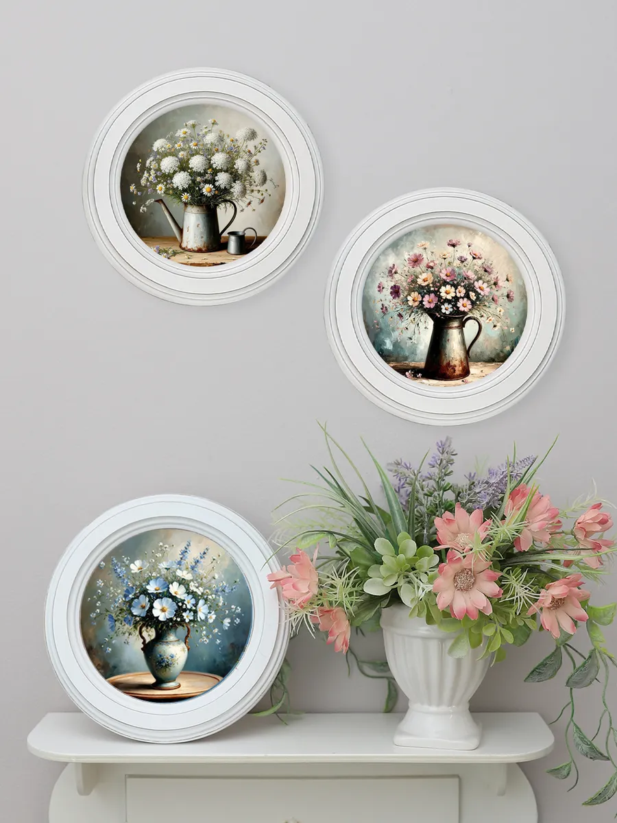 3 картины в круглой раме,