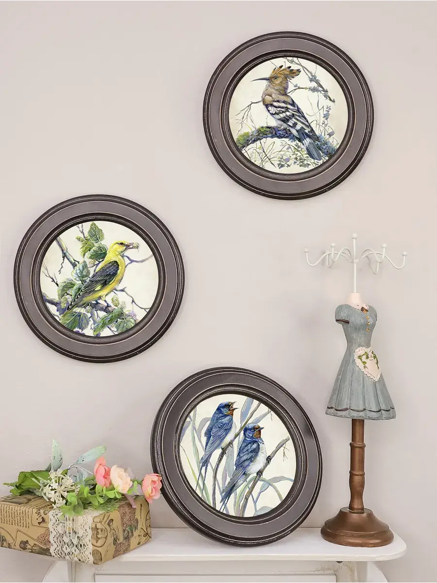 Настенный или настольный декор в нежных пастельный тонах с изящными птичками или цветочками в деревянной раме. Картины напечатаны на натуральном холсте, покрыты матовым лаком в круглой раме станет прекрасным украшением интерьера кухни, гостиной, детской. Картину можно повесить на стену, а так же использовать как настольный декор. Множество вариантов дает возможность создать собственную коллекцию. Коллекцию можно дополнить зеркалом, оформить свои творческие работы или фотографии в раму. Рама изготовлена из цельного листа МДФ 16 мм, не имеет зазоров и стыков. Окрашена экологичной акриловой эмалью в белый, коричневый, мятный цвет. Диаметр картины 17,5 см, диаметр изображения 12 см. Крепление для стены и для установки на стол в комплекте.