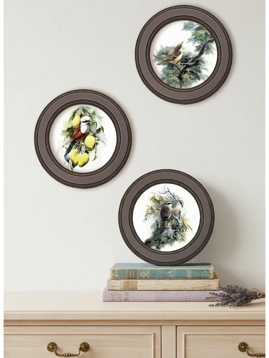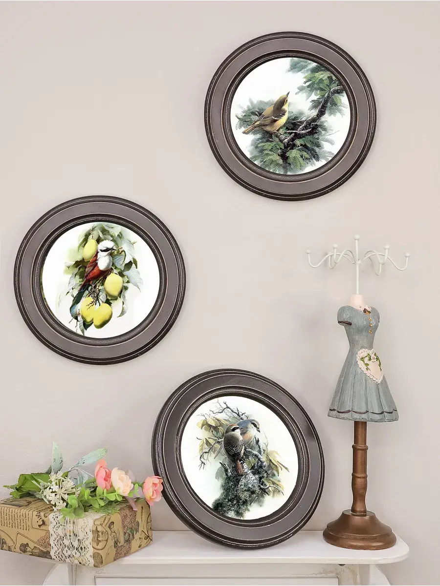3 картины в круглой раме,