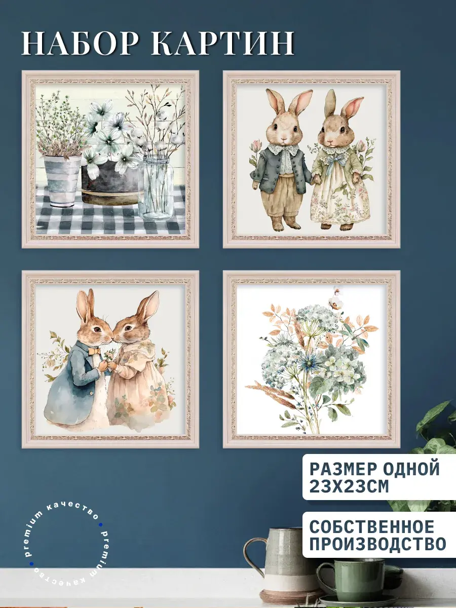Подарите вашему дому изысканность и стиль с набором из четырех картин на натуральном холсте. Эти картины, выполненные в высоком разрешении, придают помещению особую атмосферу благодаря своей текстуре и глубине. Каждая картина имеет размер 23х23 см и обрамлена багетом с золотистым орнаментом, который гармонично сочетается с любым стилем, совмременным или классическим . В комплекте предусмотрены все необходимые крепежи, что позволяет легко и быстро украсить стены вашего дома. Эти картины на стену для интерьера не просто декор, а способ выразить свою индивидуальность и создать уютную атмосферу. Они идеально подойдут для декора любой комнаты, будь то гостиная, кухня или даже прихожая. Набор картин станет отличным подарком. Упакованные в надежную коробку, Картины гарантированно сохранятся при транспортировке. Добавьте в свой дом нотки винтажного стиля и изысканности с этими картинами на холсте. Подарите себе и своим близким возможность наслаждаться красотой и искусством каждый день. Эти картины на стену для интерьера не просто украшение, а способ сделать ваш дом более уютным и стильным. Превратите обычные стены в произведение искусства с помощью этого набора картин, который станет ярким акцентом в вашем интерьере. Украсьте свой дом и создайте уникальную атмосферу, которая будет радовать вас и ваших гостей.