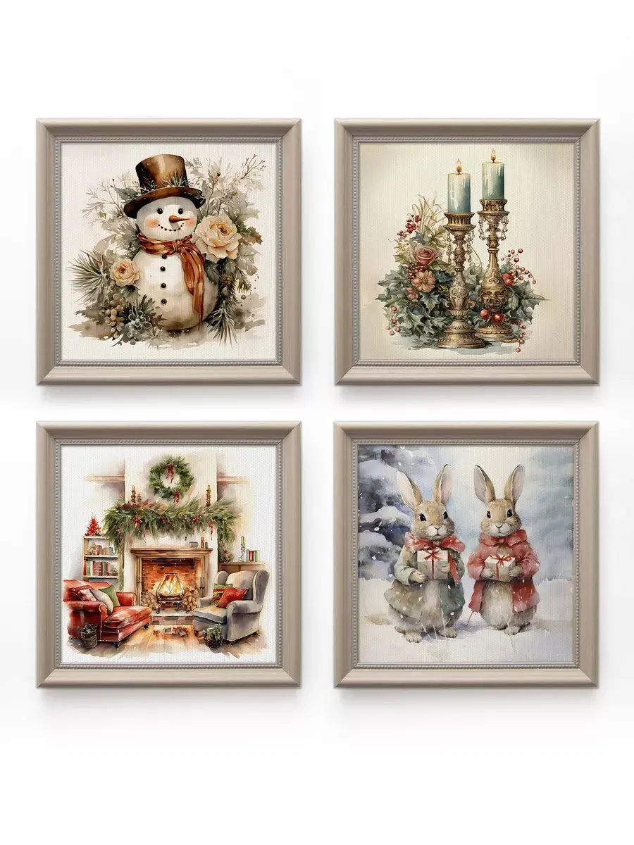 Набор из четырех картин, выполненных на натуральном холсте, станет стильным дополнением интерьера дома к празднику. Новогоднее украшение для дома или в подарок. Каждая картина размером 23х23 см, благодаря высококачественной печати и матовому покрытию, придаст стенам особый шарм. Эти произведения искусства подходят для оформления различных помещений, таких как гостиная, спальня, детская, кухня или прихожая. Рама из полиуретана спокойного бежевого цвета гармонично впишется в любой стиль, будь то современный минимализм или уютный прованс. В комплекте идут шурупы с дюбелями и зубчатый крепеж, что делает установку простой и быстрой. Создайте уютную атмосферу и добавьте нотки эстетики в дом с помощью этого великолепного набора, который порадует вас и ваших близких. Комплект упакован в защитный пакет и коробку, что обеспечивает их безопасность при транспортировке и хранении. Эти художественные работы станут отличным решением для вашего интерьера.