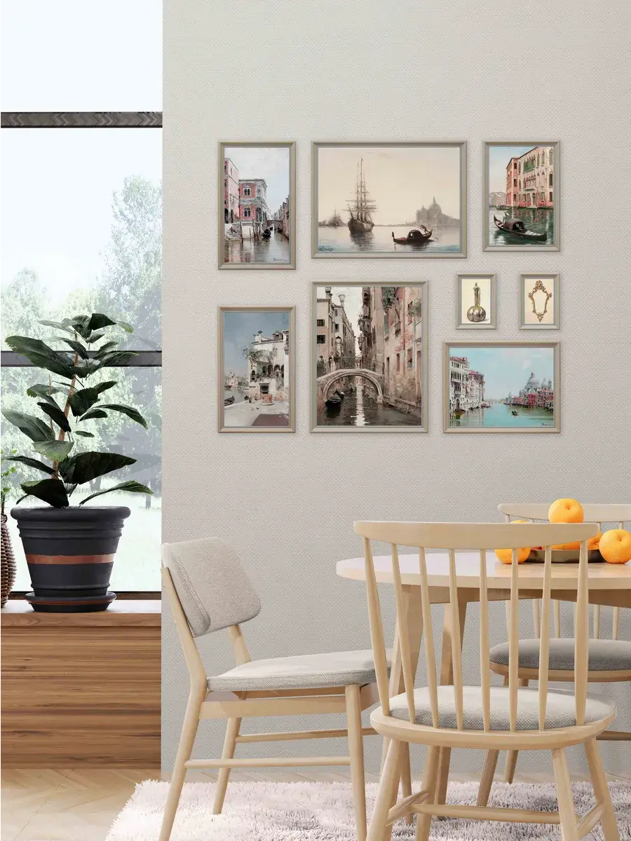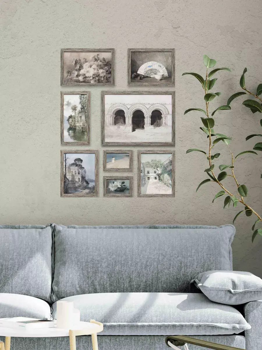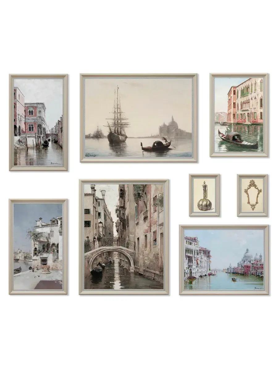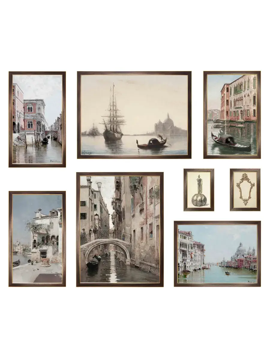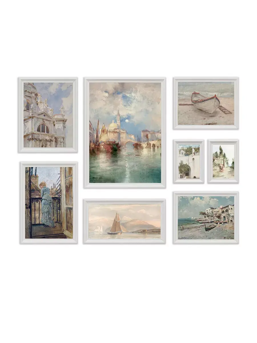 Набор из восьми картин на натуральном холсте. Размер каждой картины указан на схеме. Настенный набор в раме, это современный способ украсить стены вашего дома и расслабить Вас после работы, создавая атмосферу релакса, уюта и тепла. Картины в наборе сочетаются по сюжету, цветовой гамме и размеру. Багет в наборе одинаковый у всех картин - лаконичный белый, он придает картинам законченность, не отвлекая на себя внимание от сюжета. Картина напечатана в высоком разрешении на натуральном холсте, в музейном качестве. Для защиты холст покрыт матовым лаком. В комплекте у каждой картины шуруп с дюбелем и зубчатый крепеж на раме. Рама из полиуретана белоснежного цвета. Украшение для дома и дачи, подарок в дом друзьям и коллегам. Картины упакованы в пакет и коробку.