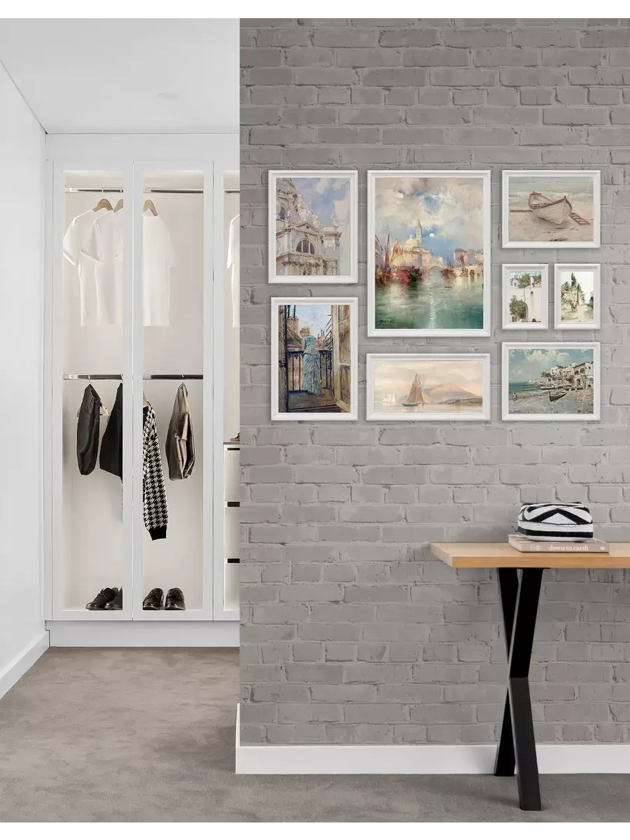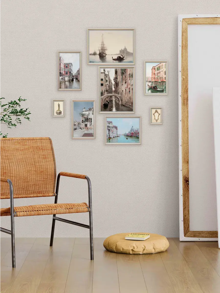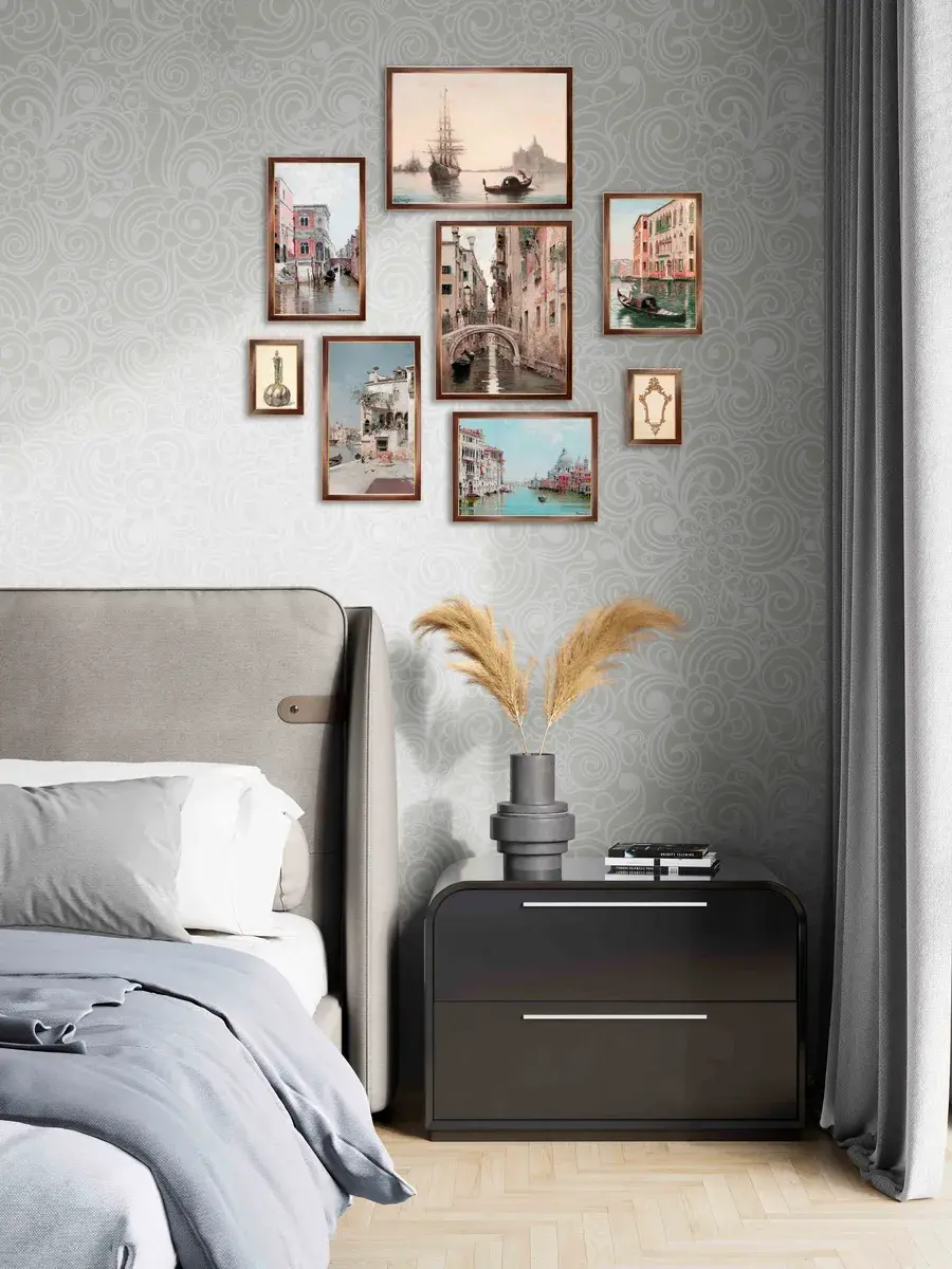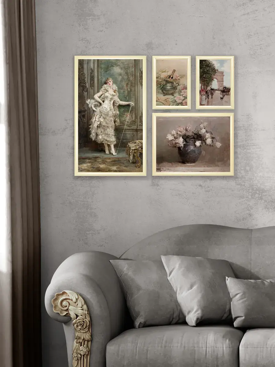Размер комплекта 68х89 см для создания коллекции на стене вашего дома. Кроме того, картины легко крепятся на стену с помощью специального крепежа, который идет в комплекте.