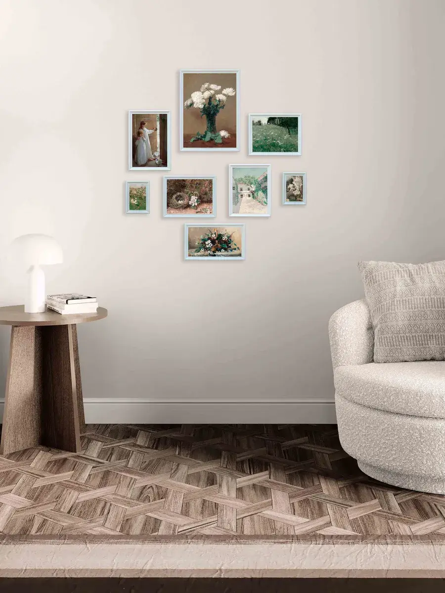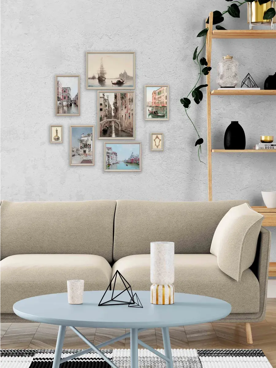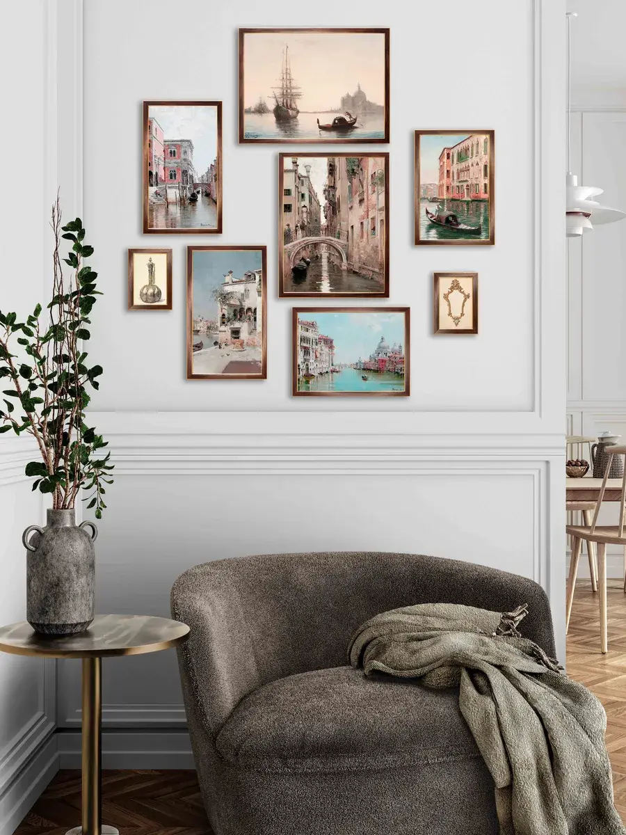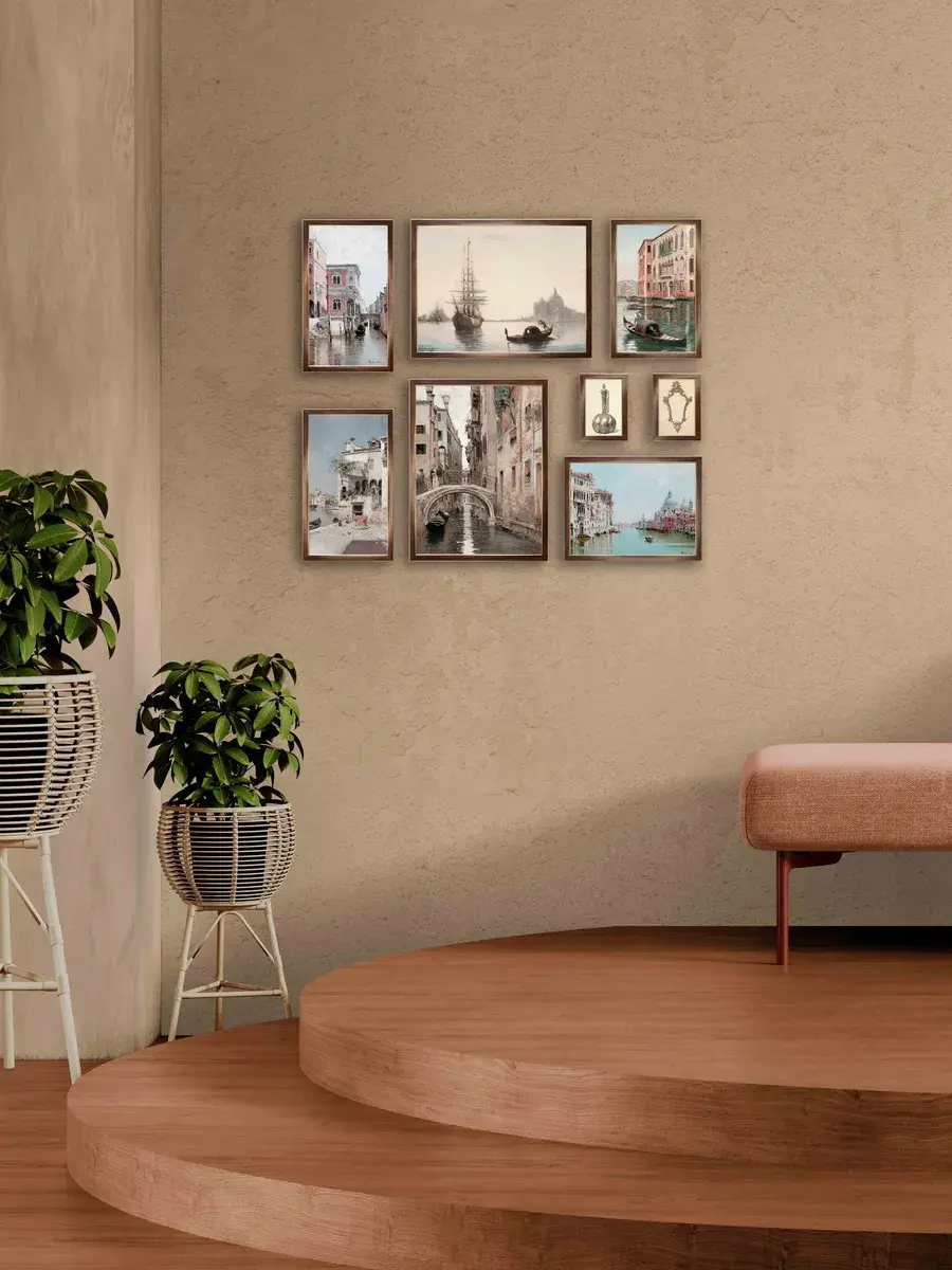 Размер комплекта 68х89 см для создания коллекции на стене вашего дома. Кроме того, картины легко крепятся на стену с помощью специального крепежа, который идет в комплекте.