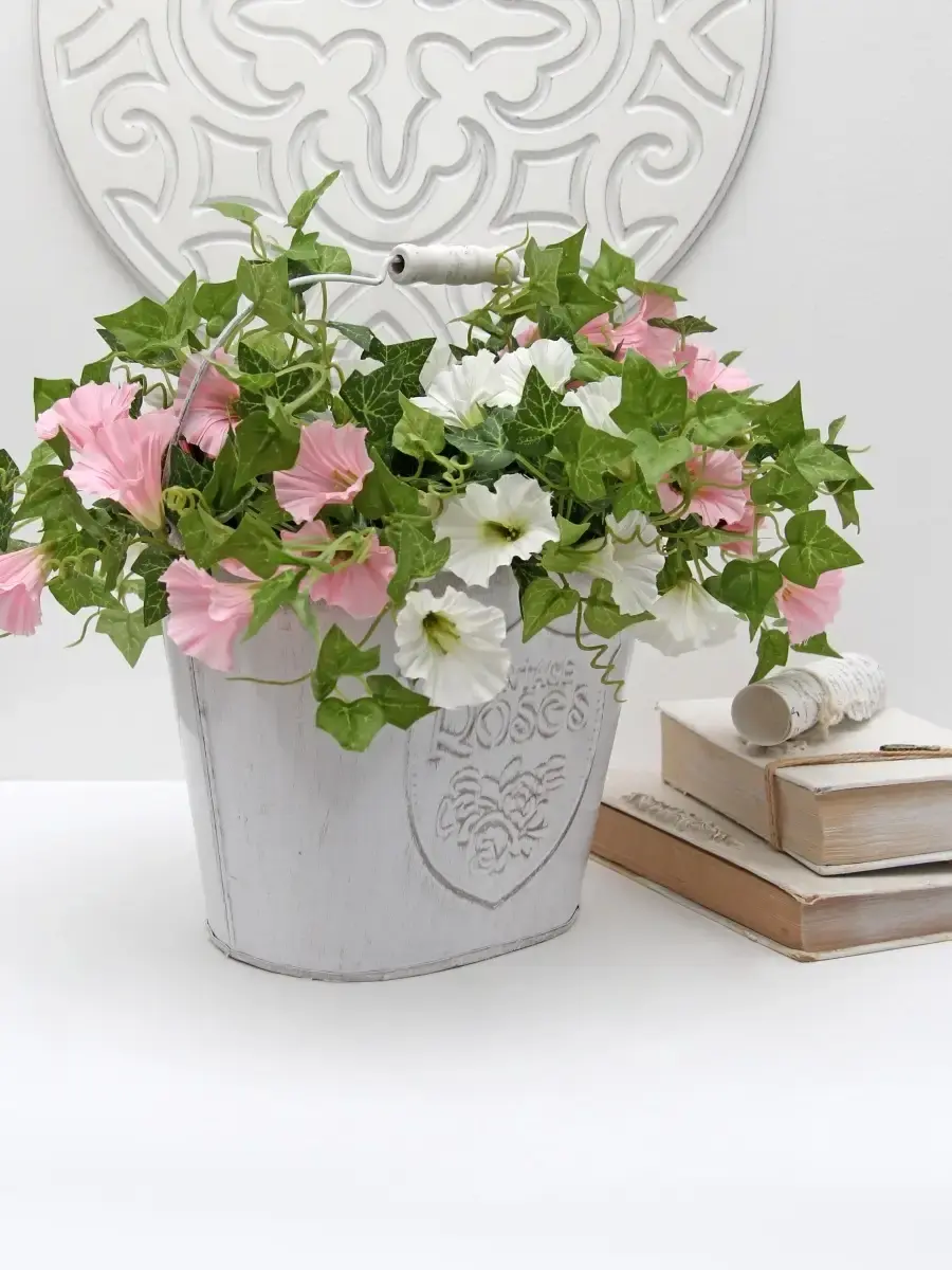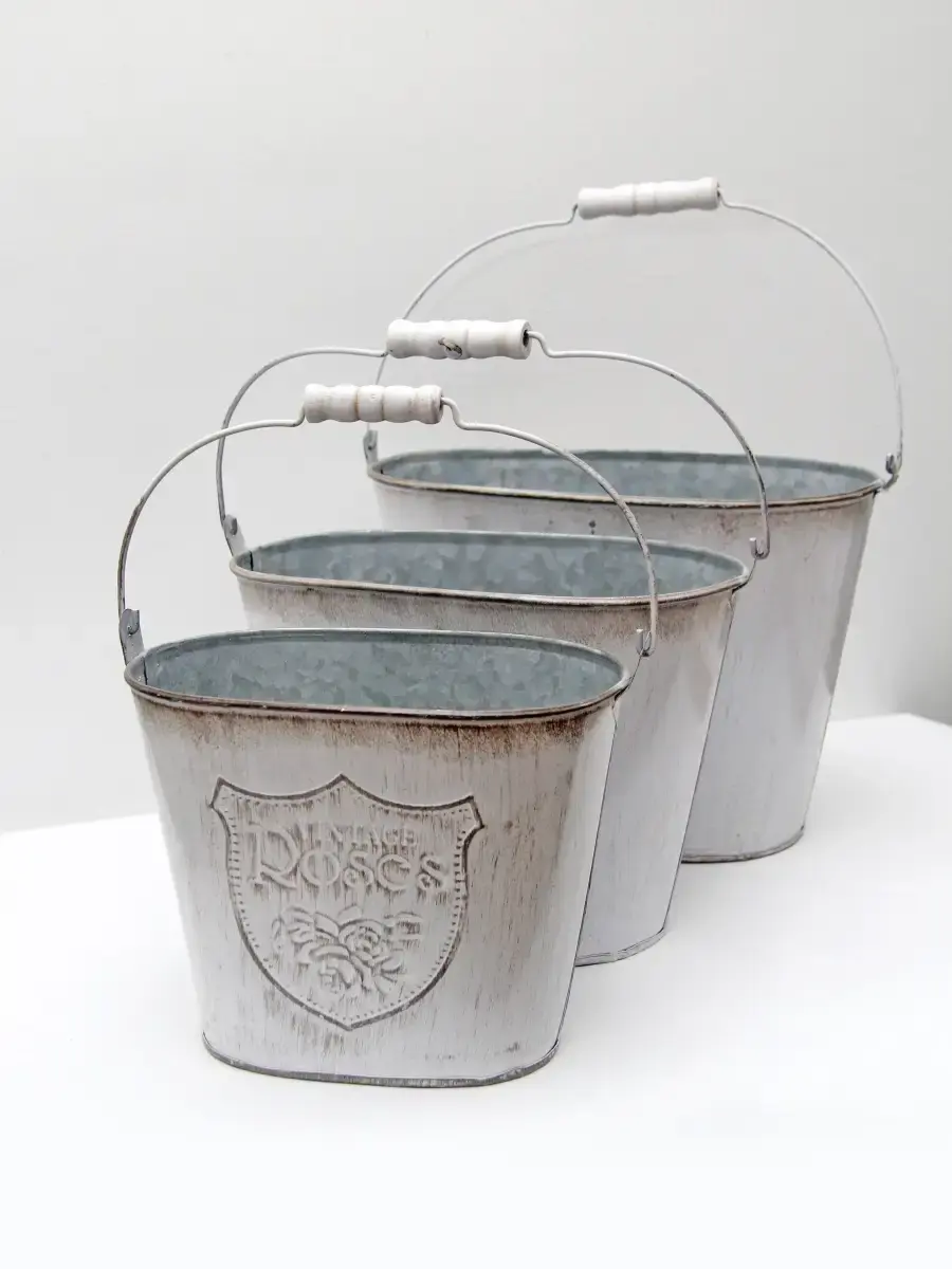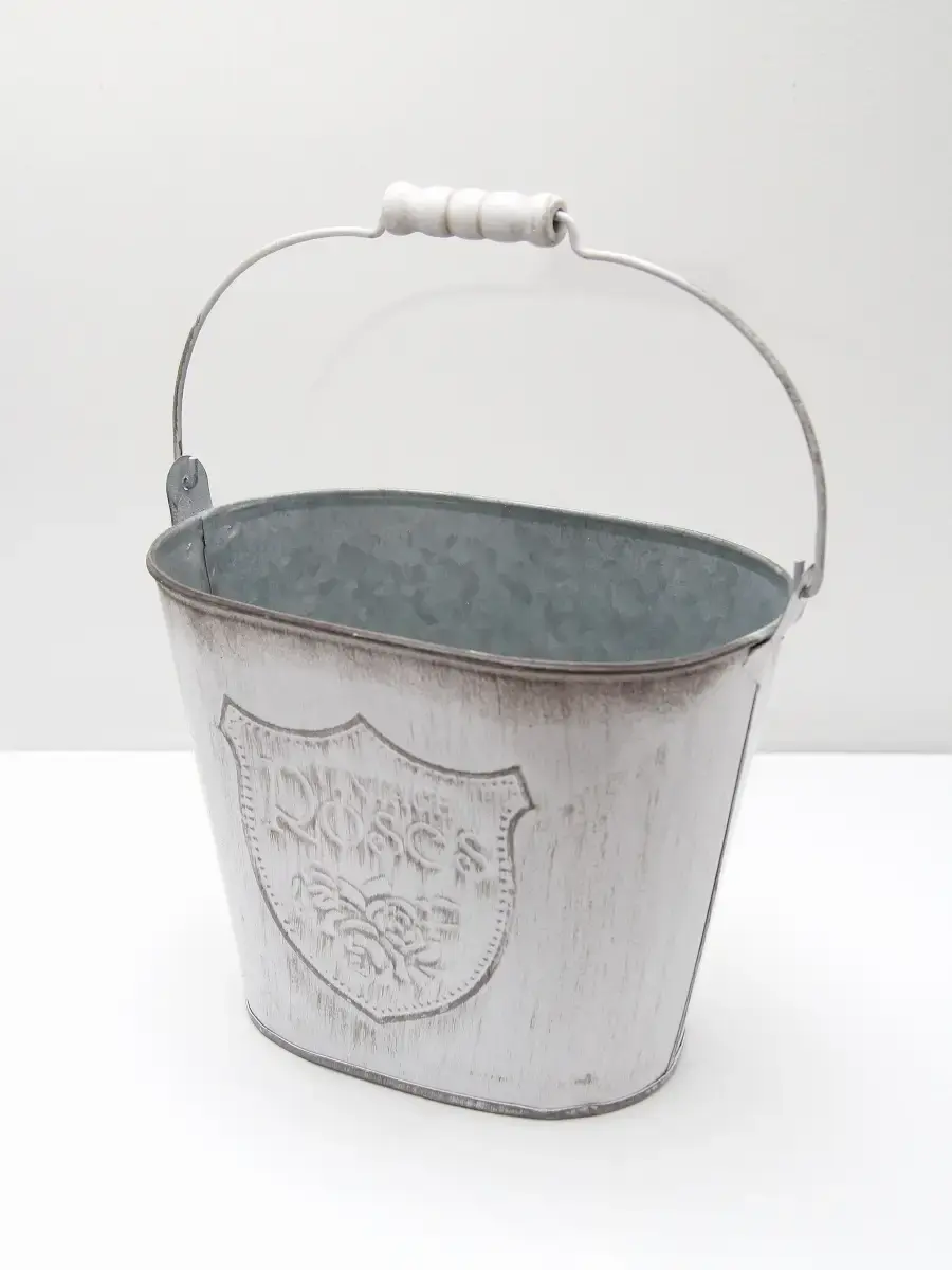 Металлическое ведерко-кашпо для растений. Станет прекрасным украшением интерьера в стиле прованс. ВНИМАНИЕ - цветы в комплект не входят, использованы для примера на фото.Размер кашпо 15х20х13 см, высота с ручкой 27 см.