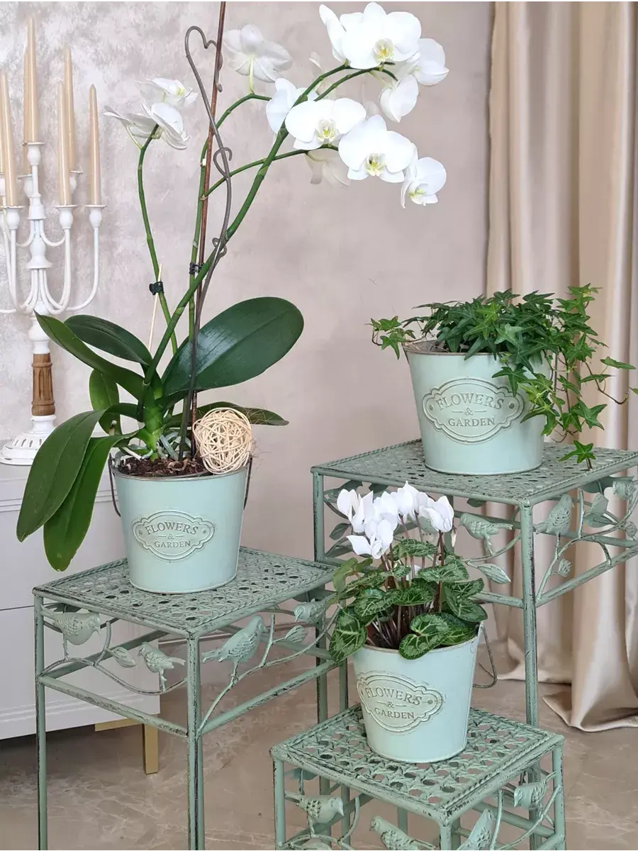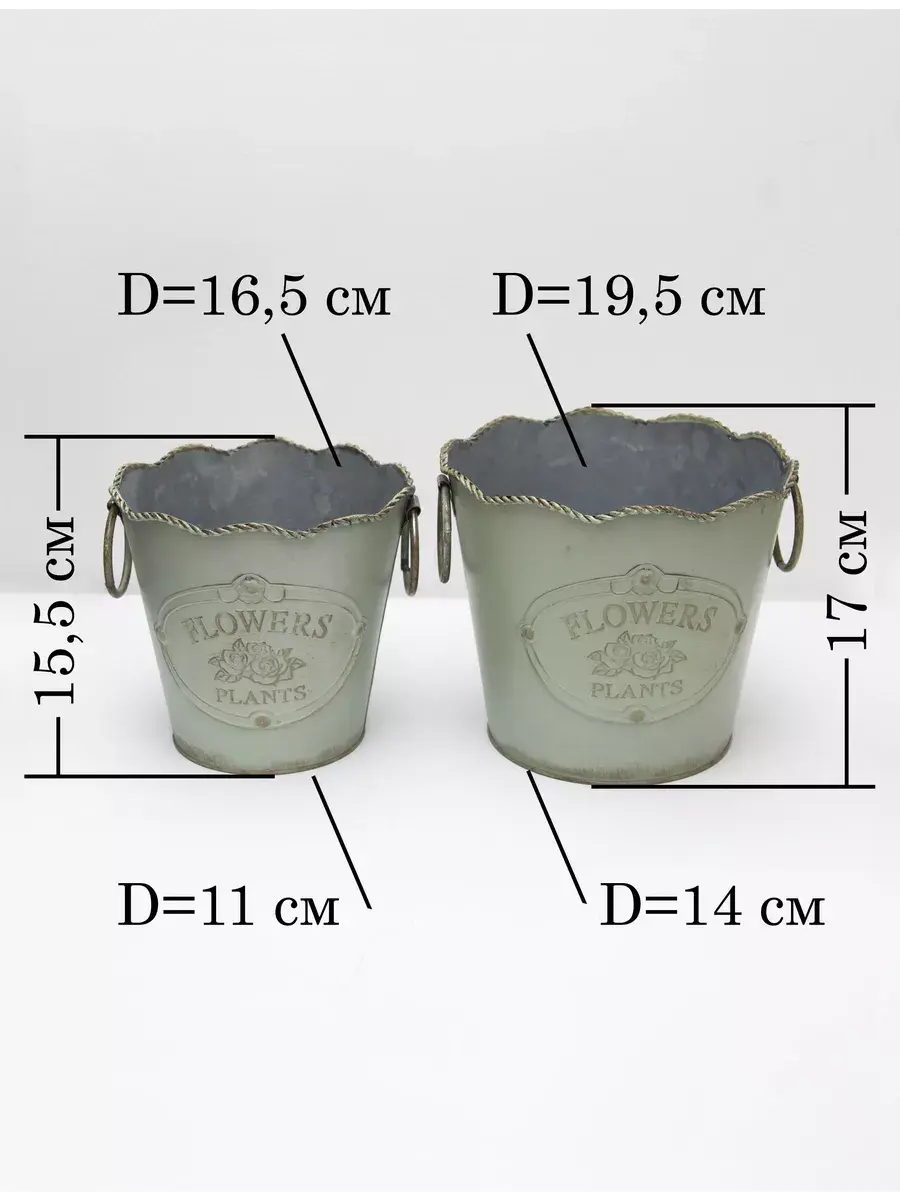ВНИМАНИЕ - цветы в комплект не входят, использованы для примера на фото. Винтажное металлическое кашпо для растений размером 16,5*15,5см. Это уникальное ведерко-кашпо станет прекрасным украшением интерьера в стиле прованс. Оно идеально подходит для размещения живых или искусственных цветов, добавляя шарм и элегантности в ваш дом. Круглая форма и гладкая матовая поверхность придают ему особый шеббишик вид. Кашпо оснащено ручками, что делает его удобным в использовании. Данное кашпо предлагается в зеленом дымчатом цвете. Обратите внимание, что комплект не включает цветы, они использованы только для примера на фото. Кашпо изготовлено из качественного металла и имеет легкий вес без упаковки - всего 0.2 кг. Настольное кашпо, подходящее для дома и создания уютной атмосферы. Это маленький размер в серии кашпо, и его композиция с другими размерами будет выглядеть великолепно. Привнесите в свой дом нотки винтажа и великолепие Прованса с помощью этого восхитительного кашпо.