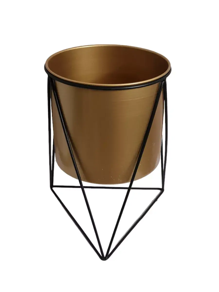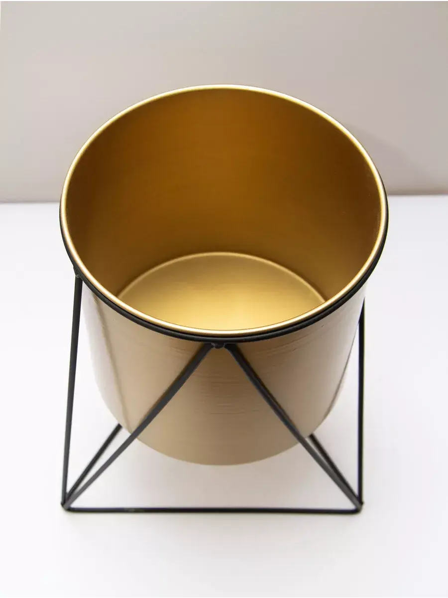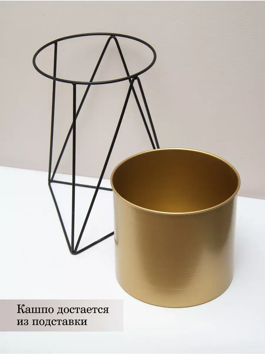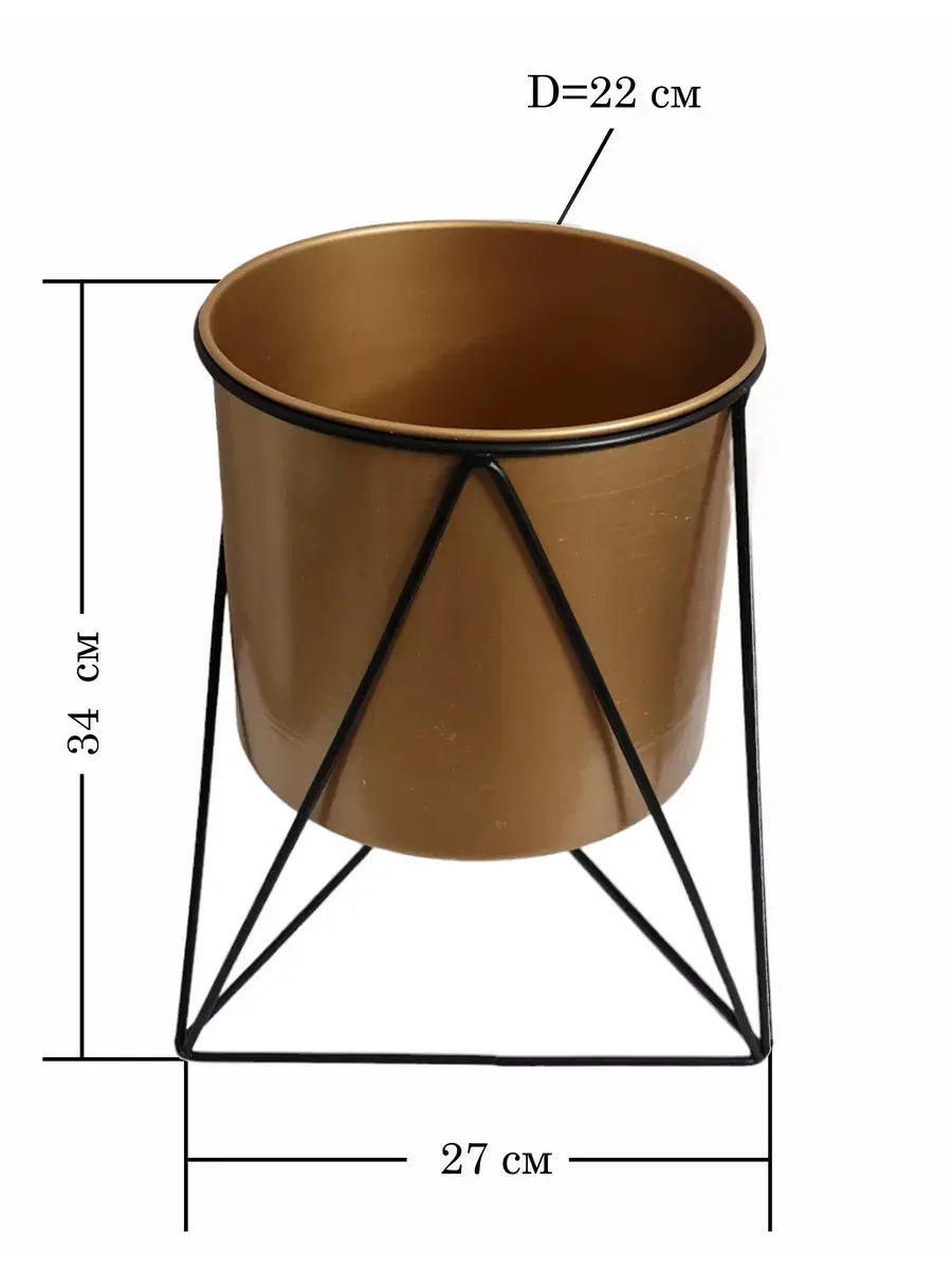 Кашпо на металлической геометрической подставке от бренда Elenadecor - идеальное решение для оформления интерьера в современном стиле. Это красивое декоративное изделие обязательно подчеркнет ваш уникальный дизайн и добавит шарма в ваш дом. Кашпо с подставкой имеет диаметр 22 см и высоту 34 см, идеально подходит для различных растений и цветов. Металлическая подставка надежно держит кашпо, легко впишется в любое оформление. Этот продукт отличается высоким качеством материалов и стильным цветовым решением черный с матовым золотом. Подарите своему интерьеру оригинальный акцент с помощью этого кашпо на металлической подставке от Elenadecor.