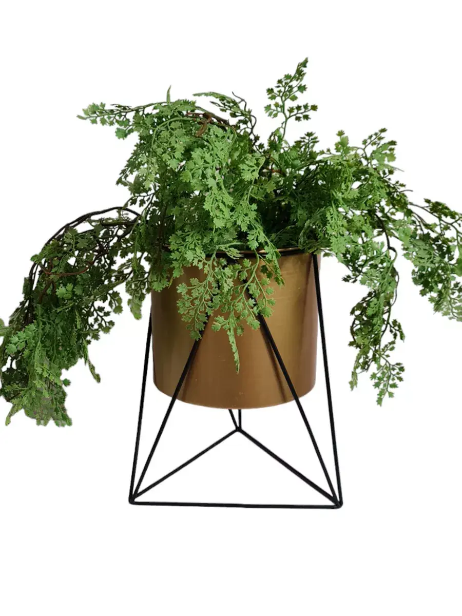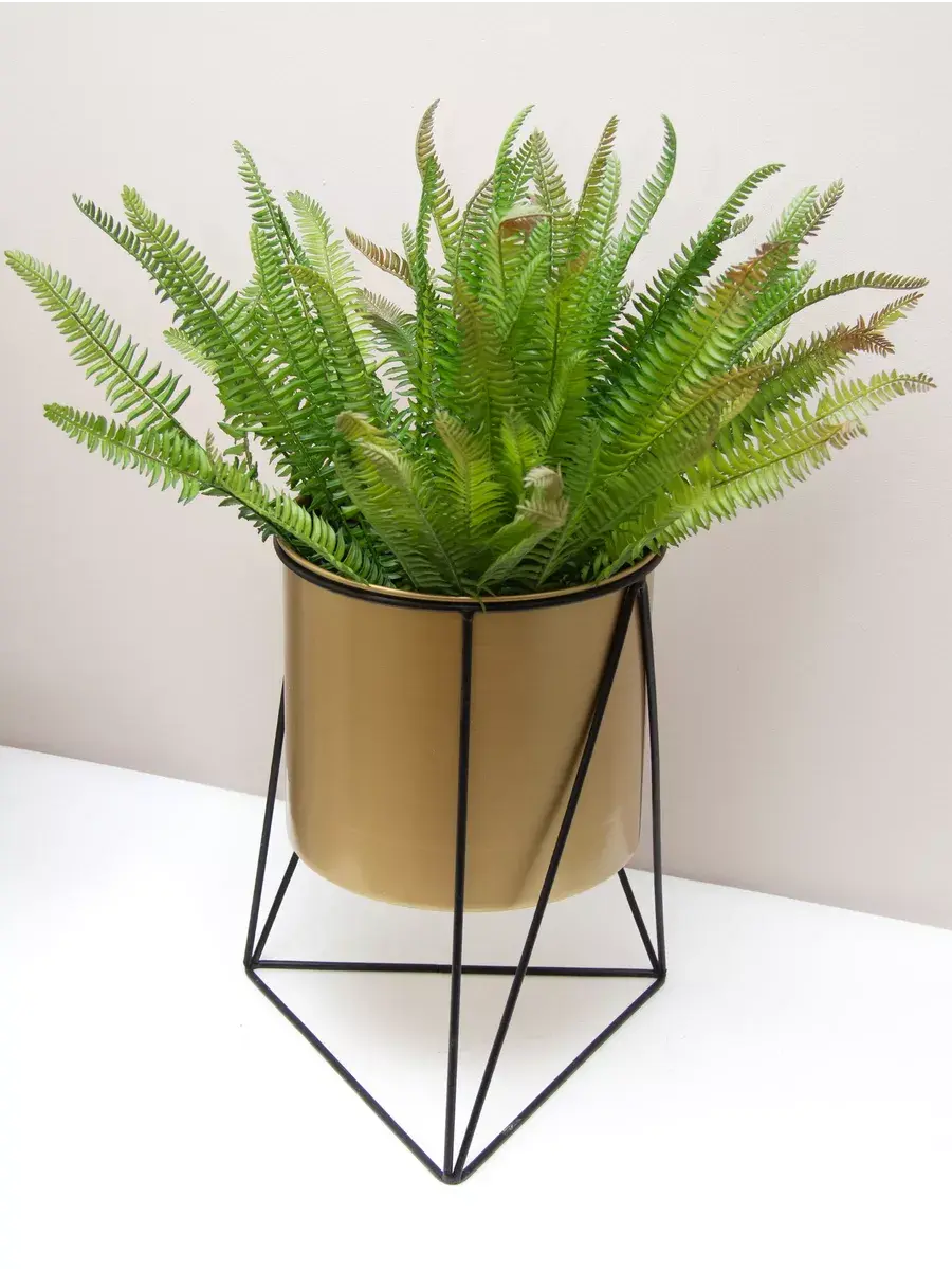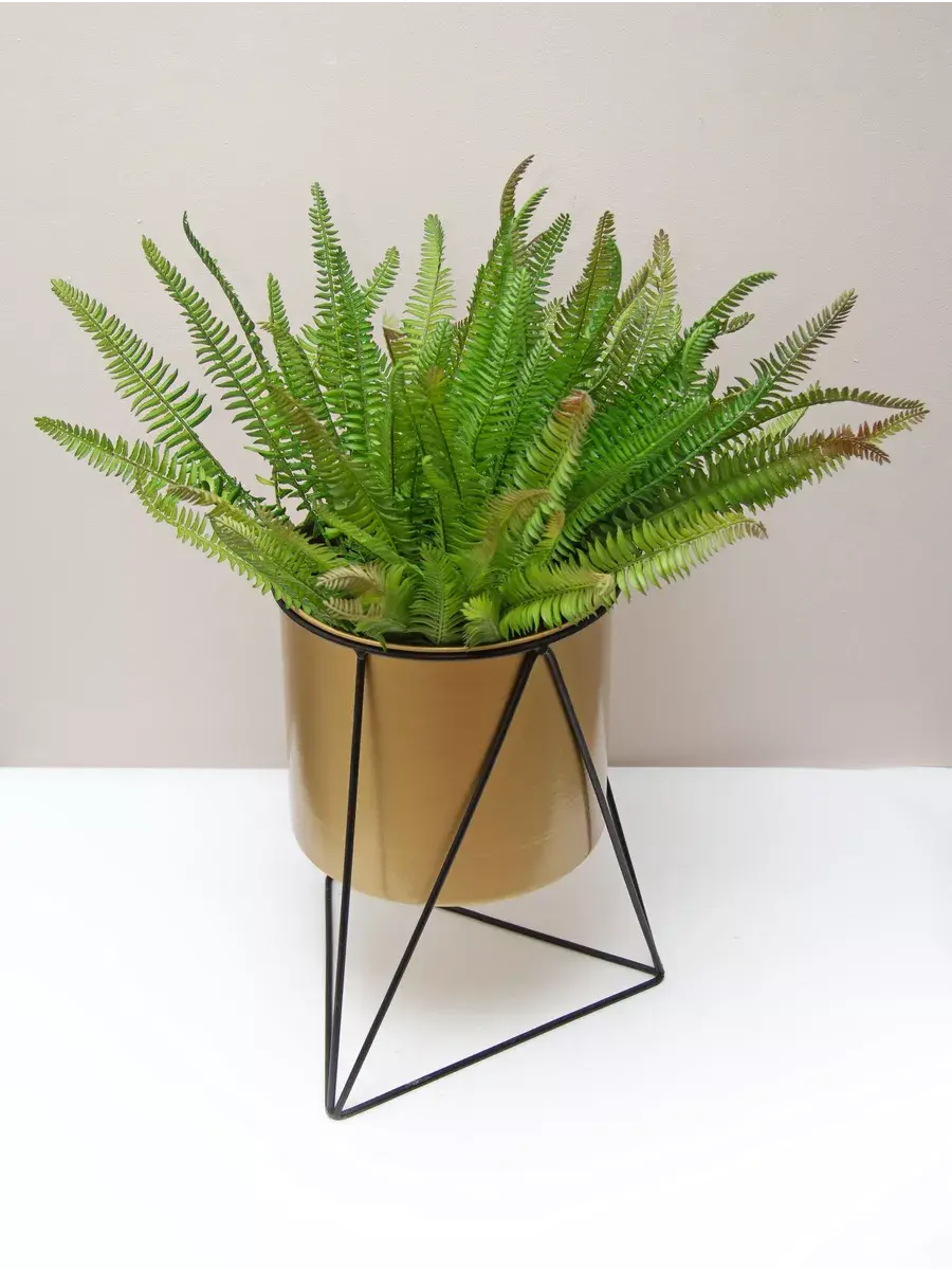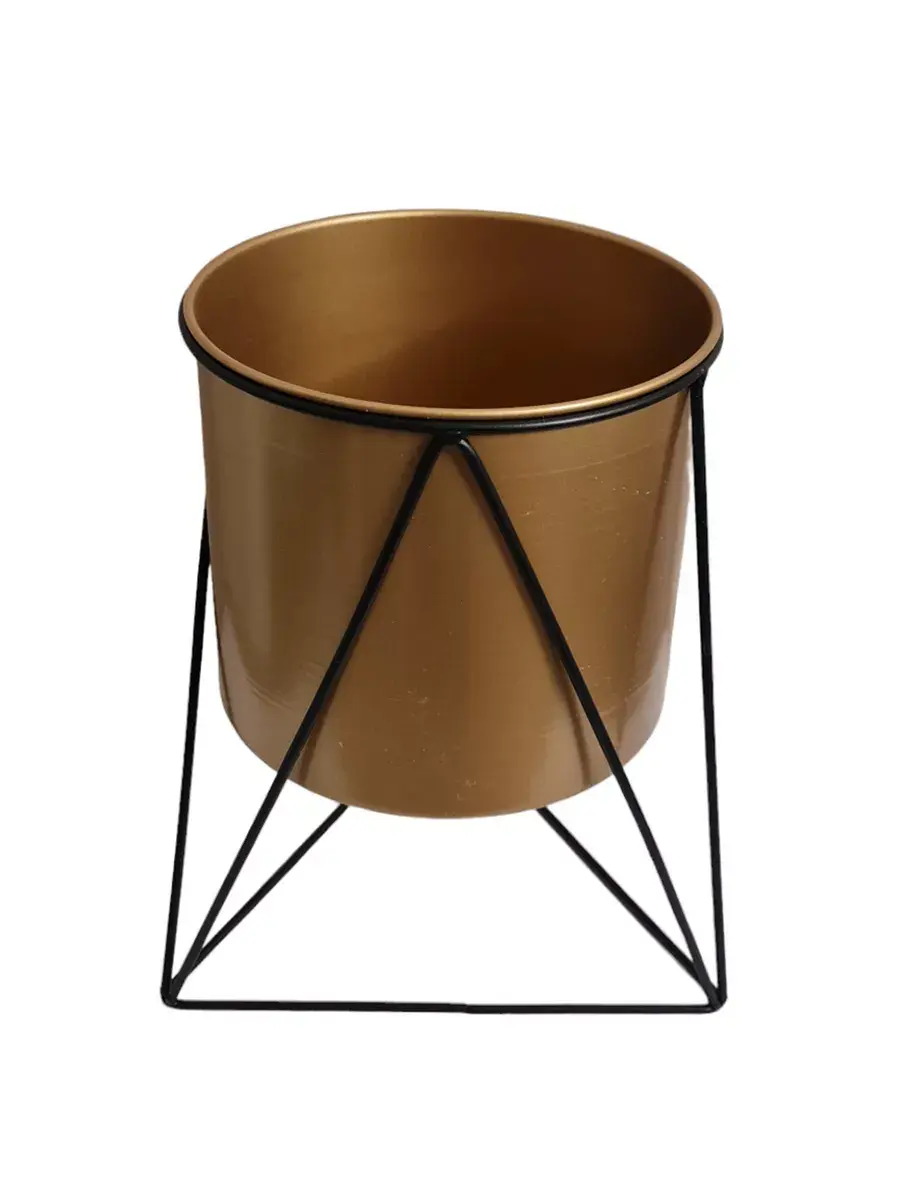 Кашпо на металлической геометрической подставке от бренда Elenadecor - идеальное решение для оформления интерьера в современном стиле. Это красивое декоративное изделие обязательно подчеркнет ваш уникальный дизайн и добавит шарма в ваш дом. Кашпо с подставкой имеет диаметр 22 см и высоту 34 см, идеально подходит для различных растений и цветов. Металлическая подставка надежно держит кашпо, легко впишется в любое оформление. Этот продукт отличается высоким качеством материалов и стильным цветовым решением черный с матовым золотом. Подарите своему интерьеру оригинальный акцент с помощью этого кашпо на металлической подставке от Elenadecor.