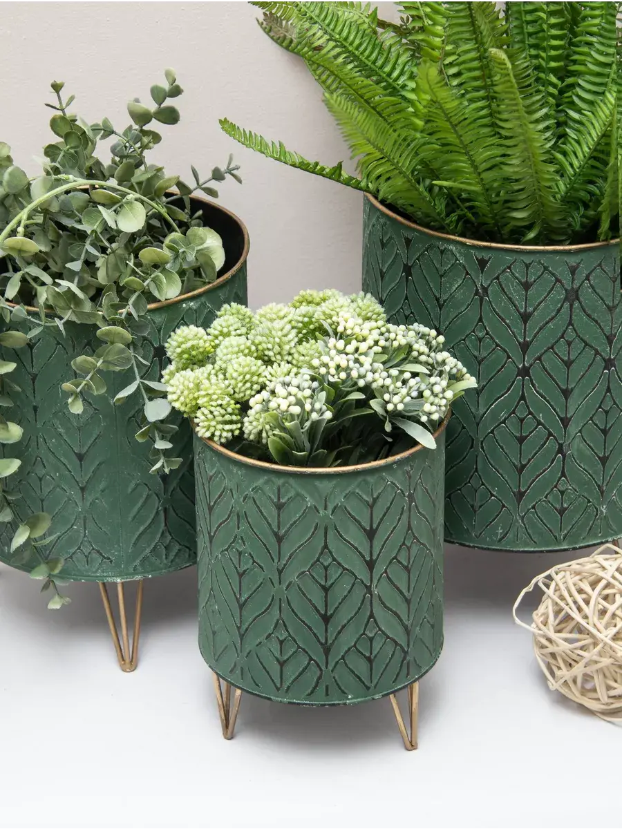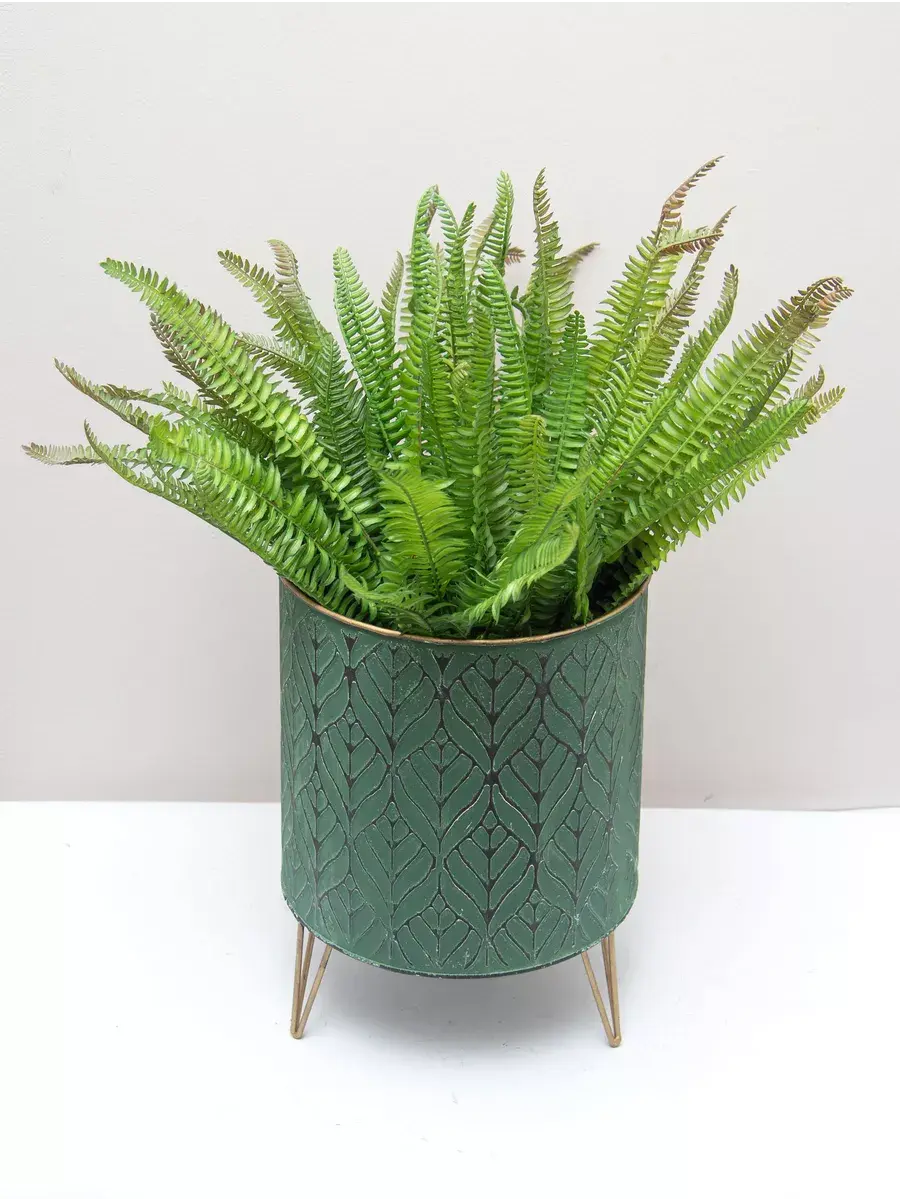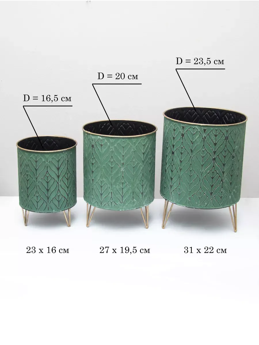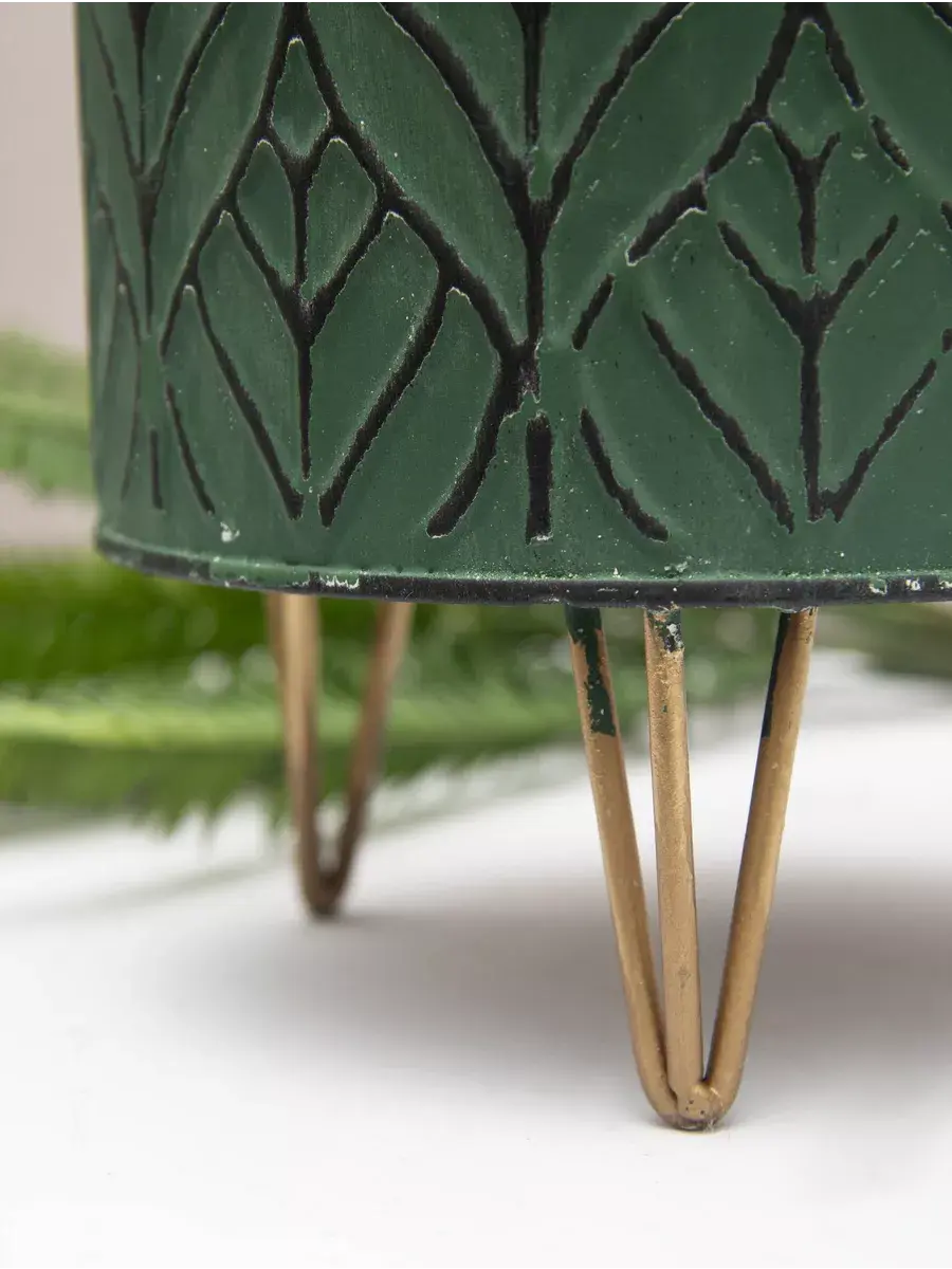 Металлическое напольное кашпо на золотых ножках. Винтажная подставка для цветов станет прекрасным украшением интерьера в современном стиле. Кашпо можно использовать как с живыми, так и искусственными растениями. Размер кашпо 23*16 см. В коллекции представлены кашпо 3х размеров. Можно создать композицию, сочитая кашпо разных размеров.