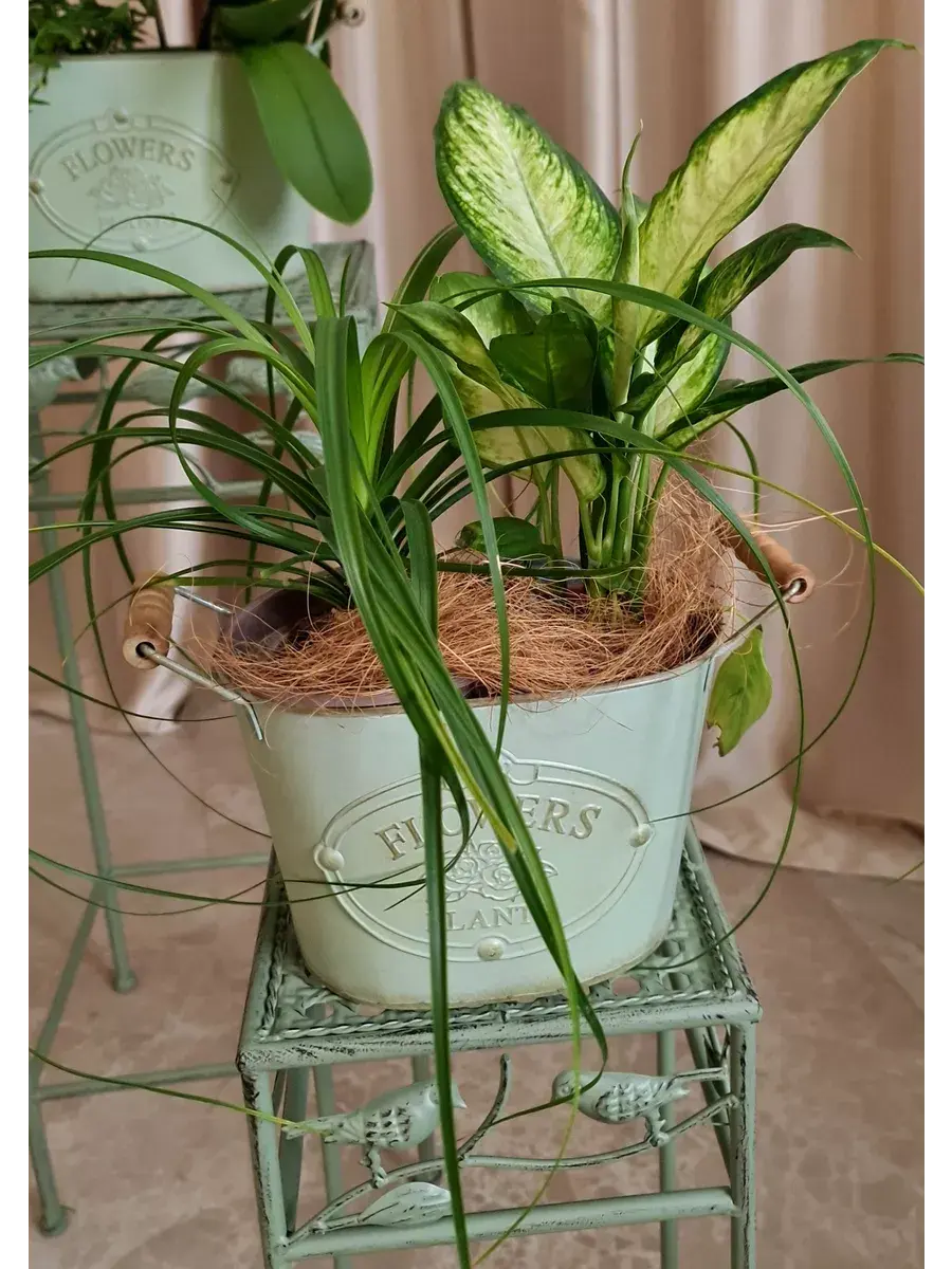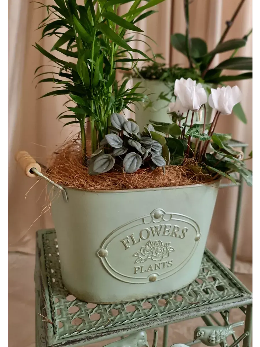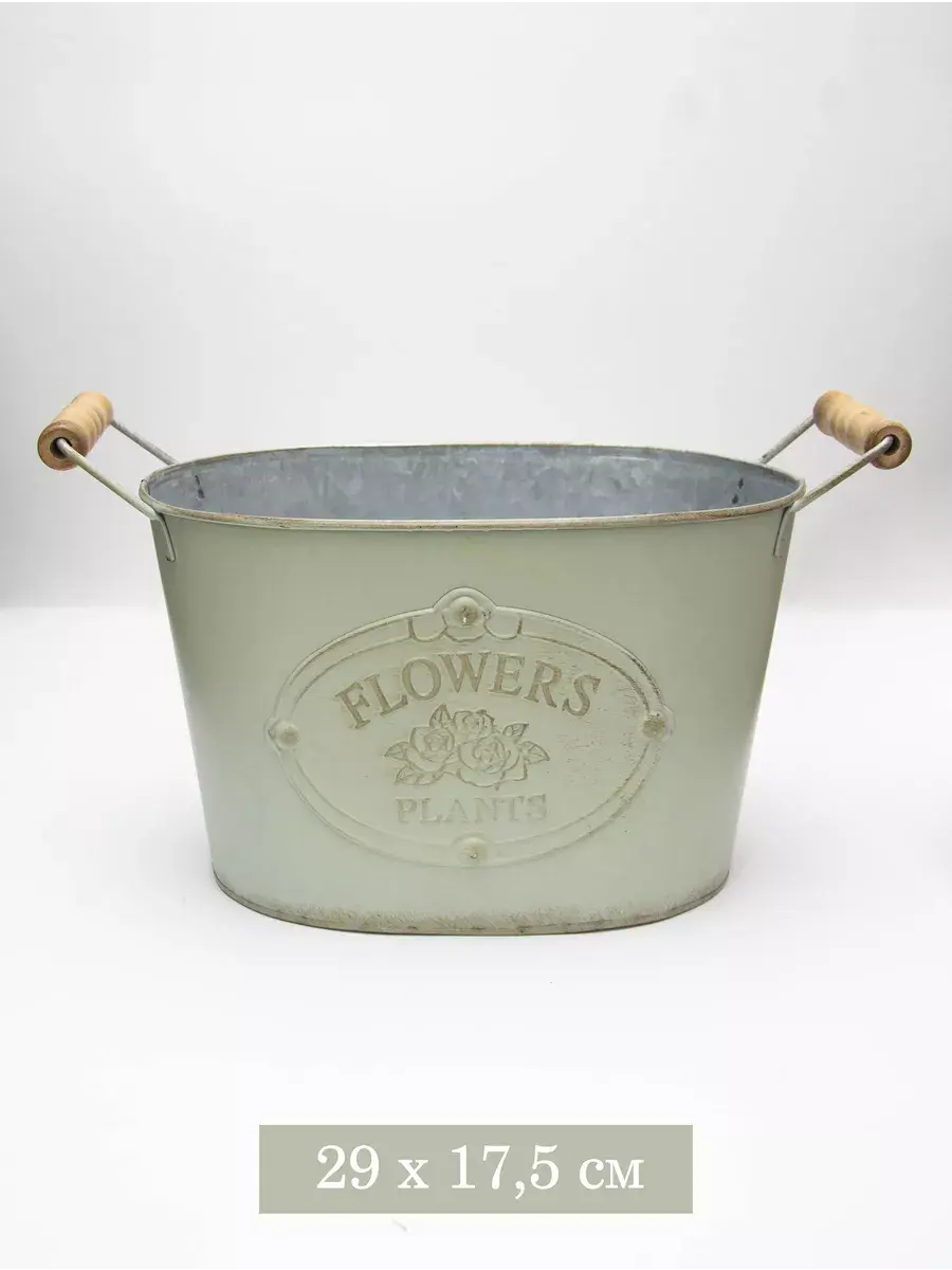 Винтажное металлическое овальное ведерко-кашпо для растений. Станет прекрасным украшением интерьера в стиле прованс. Кашпо можно использовать как с живыми, так и искусственными растениями. Размер кашпо 29*17,5 см. В коллекции представлены кашпо 3х размеров. Можно создать композицию, сочитая кашпо разных размеров.