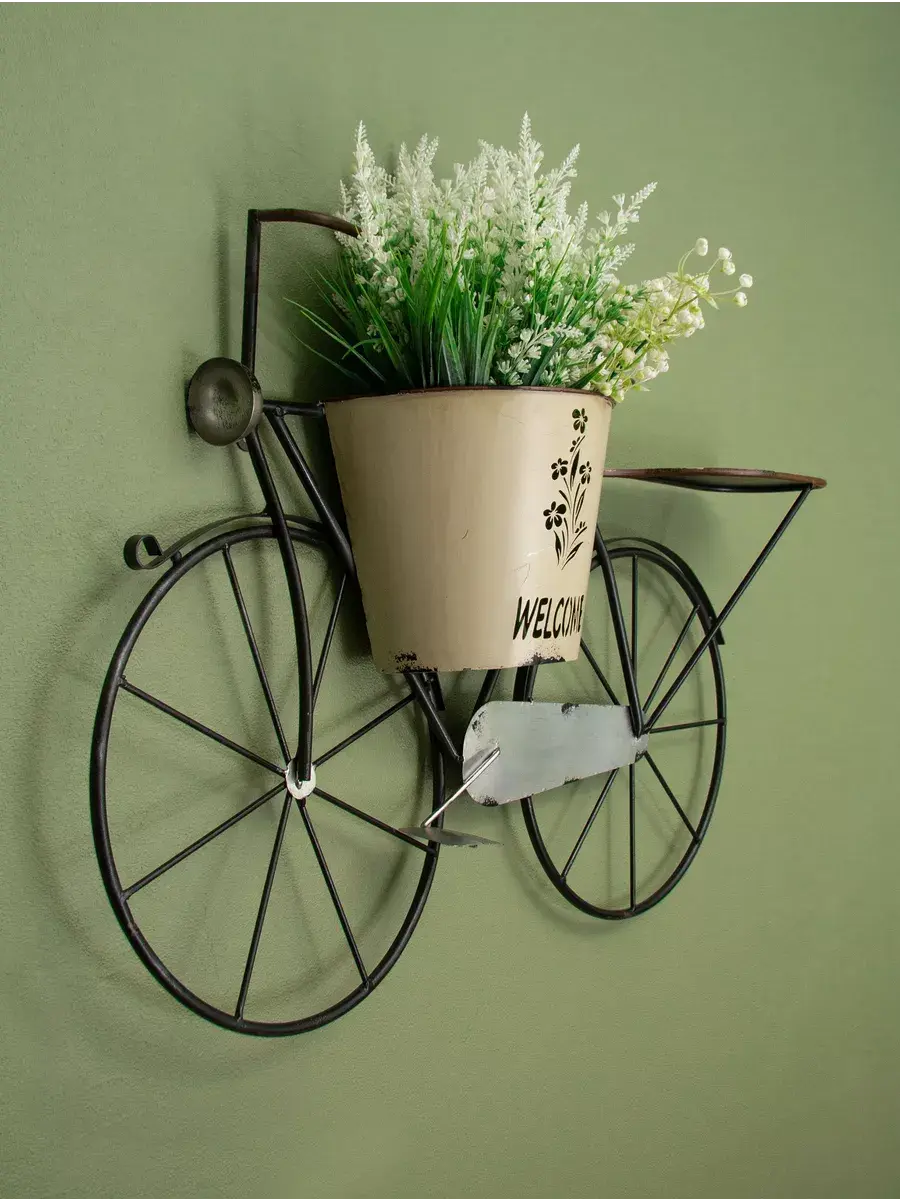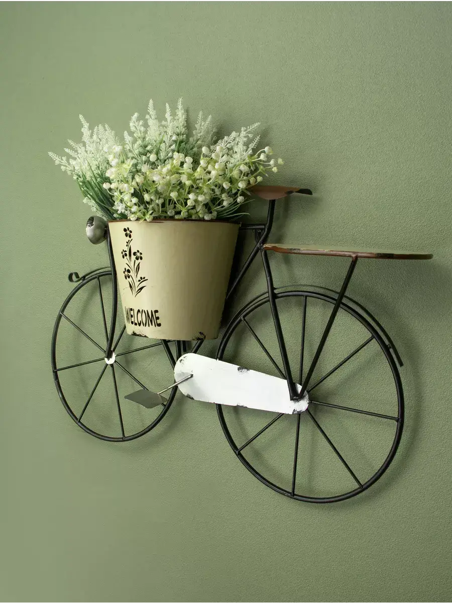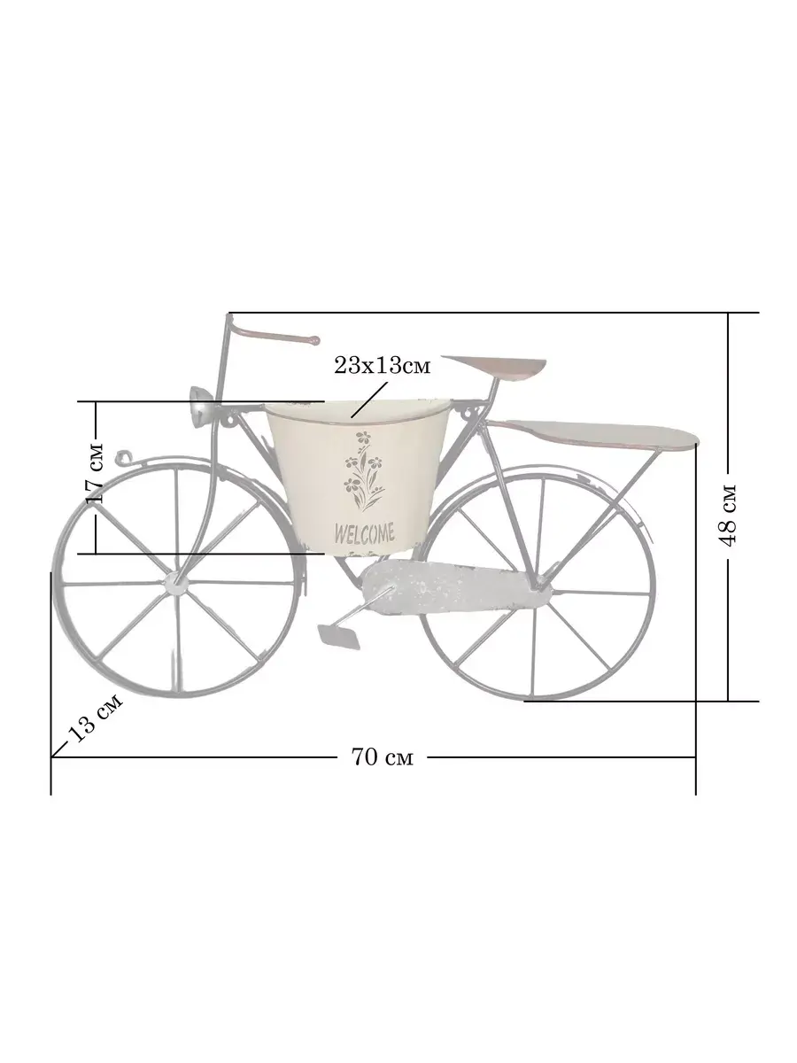 Настенное кашпо-велосипед из коллекции "Дивный сад". Стильный настенный декор дома. Прекрасно подойдет для украшения стены в детской или прихожей, на кухне или в саду. В кашпо можно поставить букет цветов. Панно будет хорошо смотреться как самостоятельный декор, так и в сочетании с другими элементами декора из коллекции "Дивный сад". Размер велосипеда целиком 70*48 см.