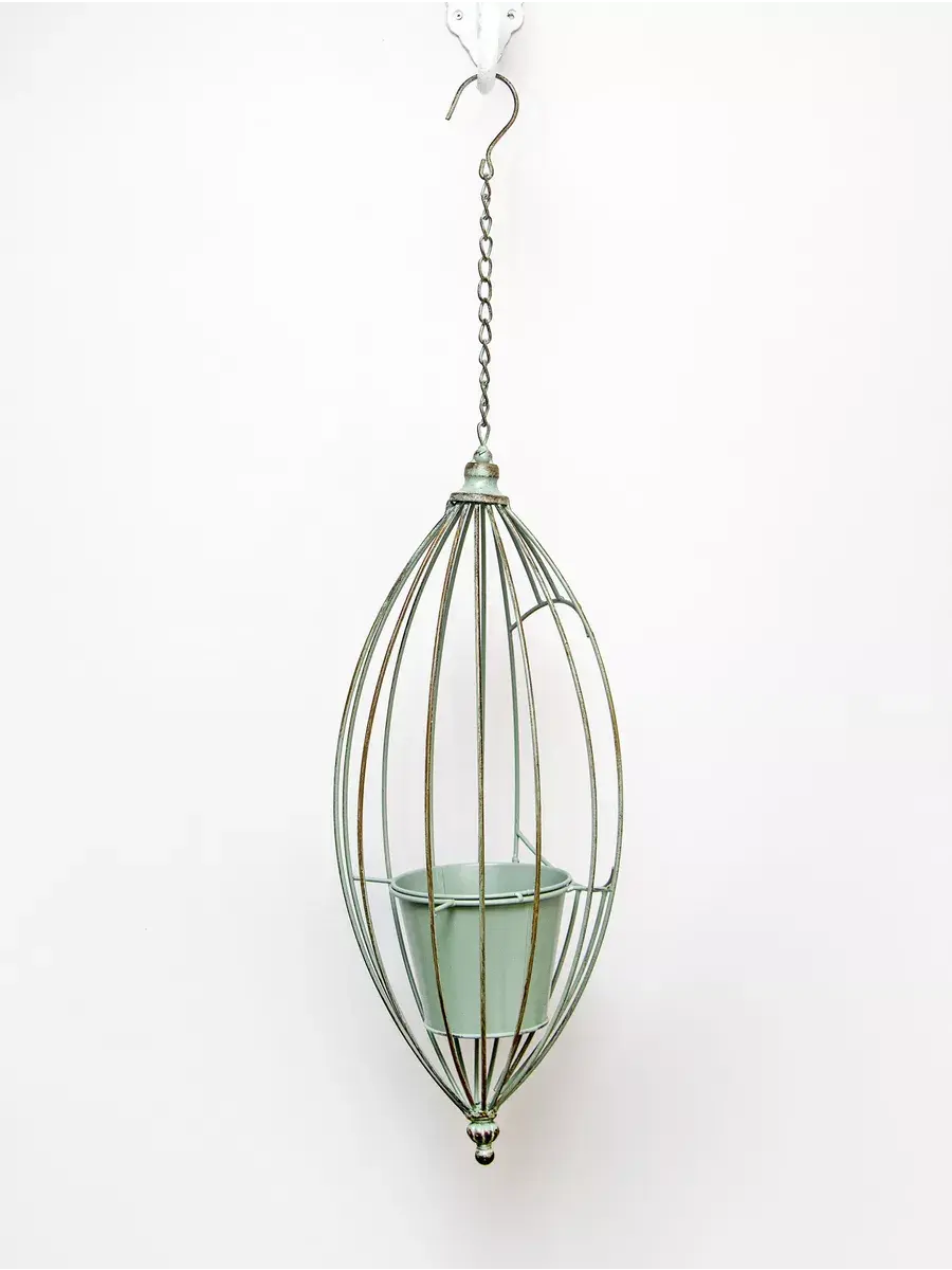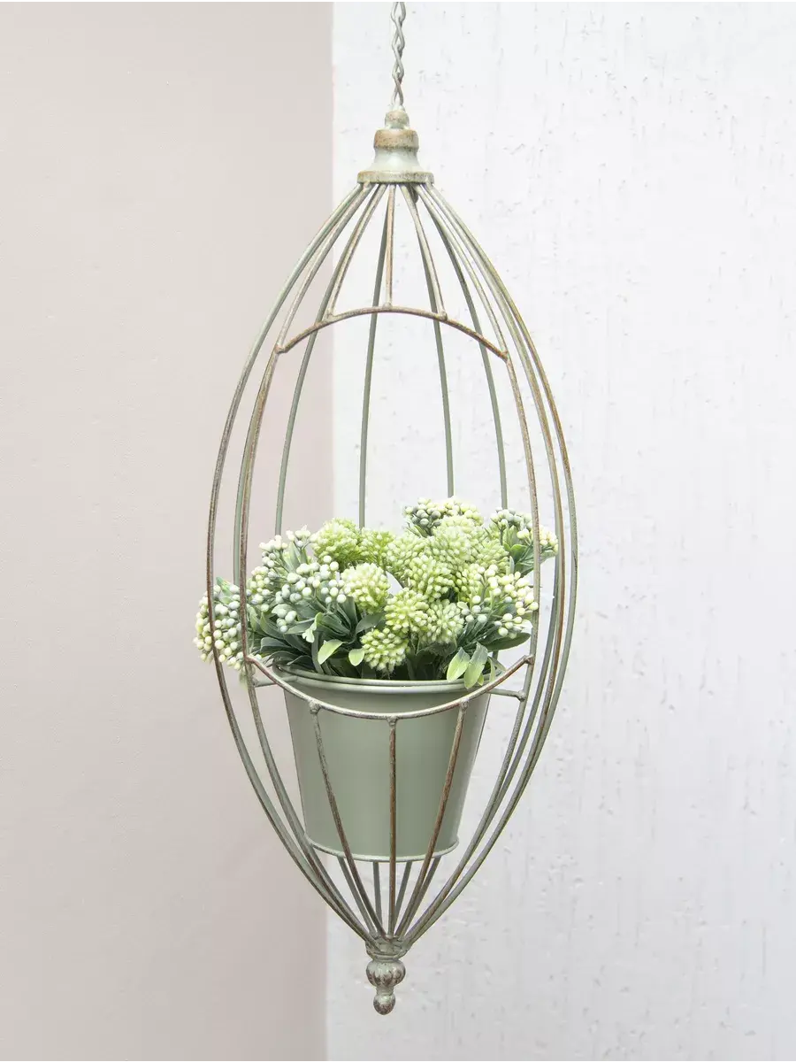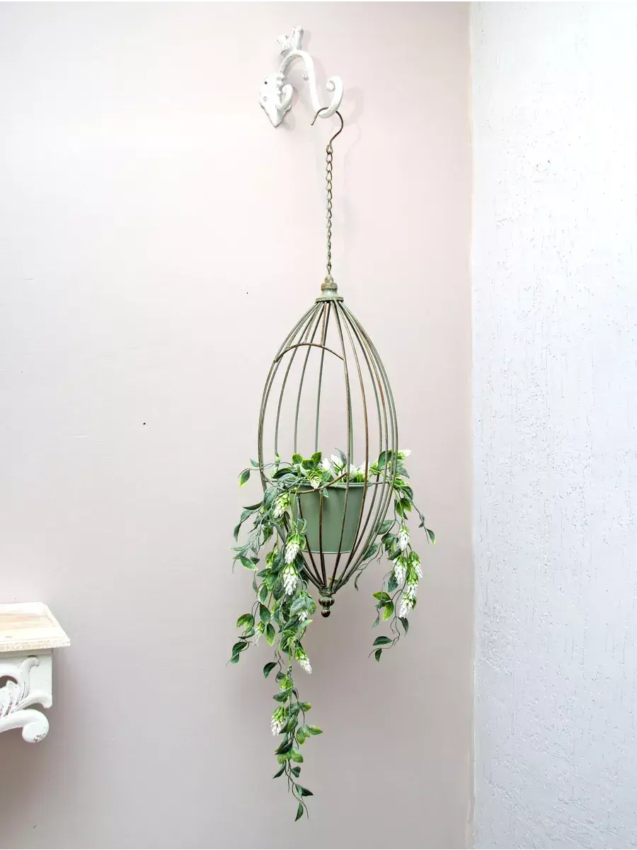 Кашпо подвесное для комнатных растений или искусственных цветов из коллекции "Дивный сад". Кашпо с декоративной клеткой станет прекрасным дополнение к интерьеру, в нем комфортно размесятятся ампельные растения или папоротники.
