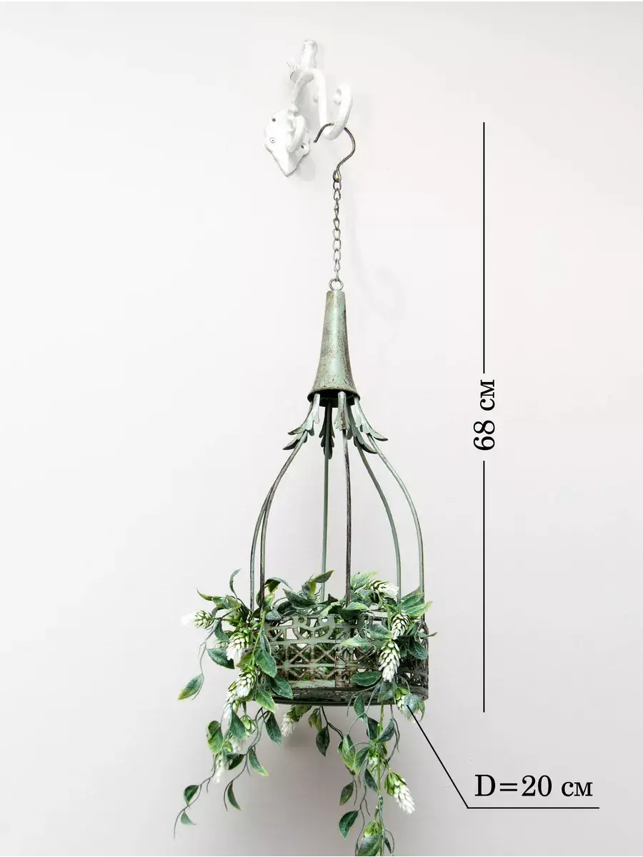 Кашпо подвесное для комнатных растений или искусственных цветов из коллекции "Дивный сад". Кашпо с декоративной клеткой станет прекрасным дополнение к интерьеру, в нем комфортно размесятятся ампельные растения или папоротники.