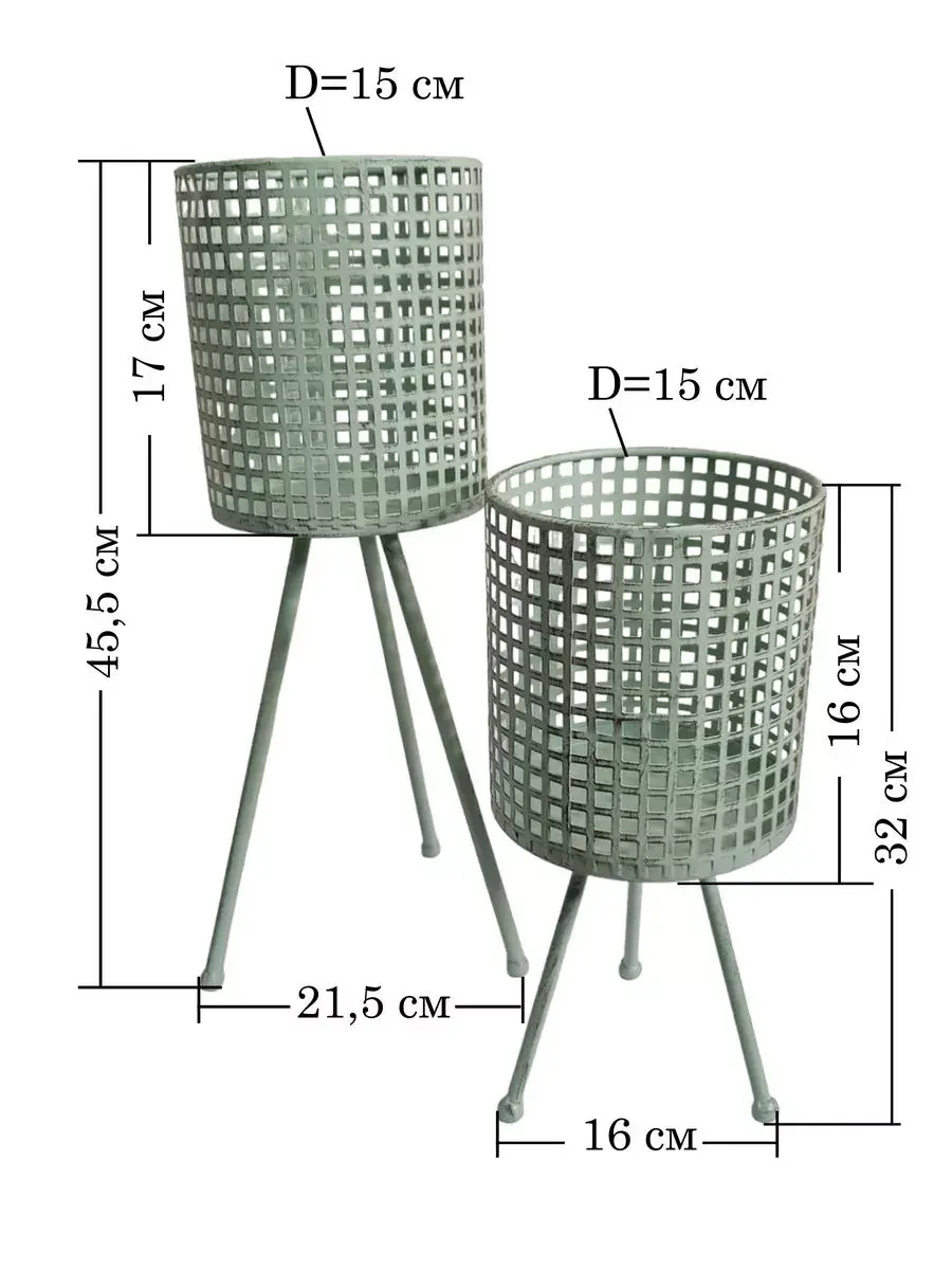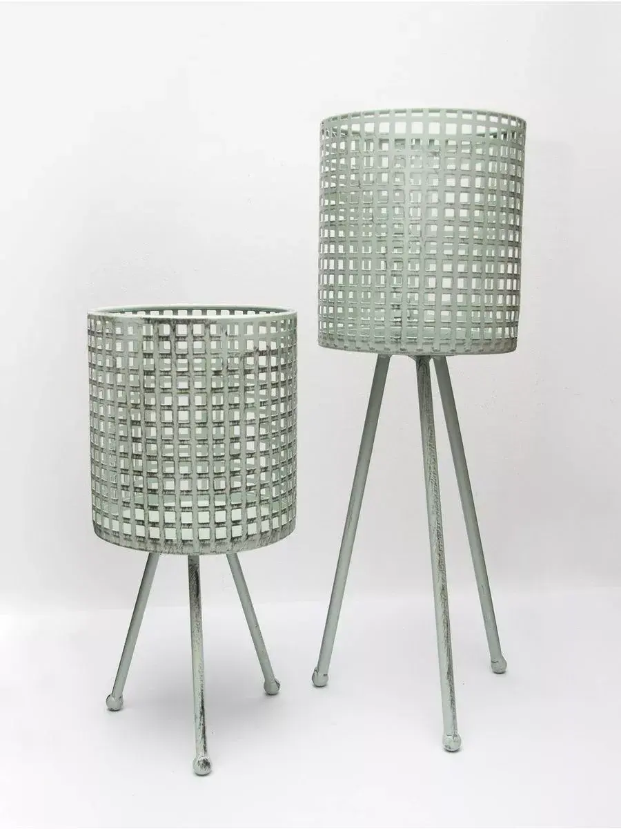 Кашпо напольное металлическое на ножках от бренда HOME GALLERY - идеальное решение для оформления интерьера в современном стиле. Эта красивая декоративная подставка обязательно подчеркнет ваш уникальный дизайн и добавит шарма в ваш дом. Кашпо представлено в двух размерах, разной высоты для создания композиции из растений. Высокая подставка с ножками имеет высоту 45,5 см и диаметр 15 см. Подставки идеально подходит для орхидей и других растений и цветов. Металлические ножки надежно держат кашпо. Кашпо приятного мятного цвета легко впишется в Ваш интерьер. Этот продукт отличается высоким качеством материалов и стильным цветовым решением. Подарите своему интерьеру оригинальный акцент с помощью этого кашпо на металлических ножках.