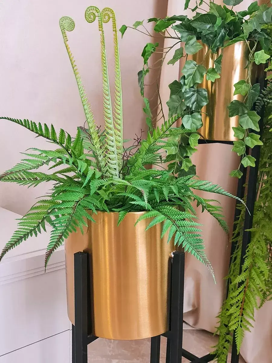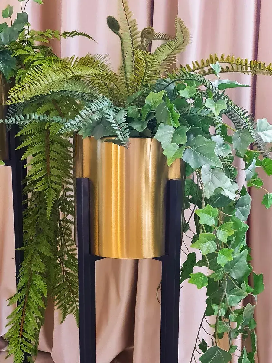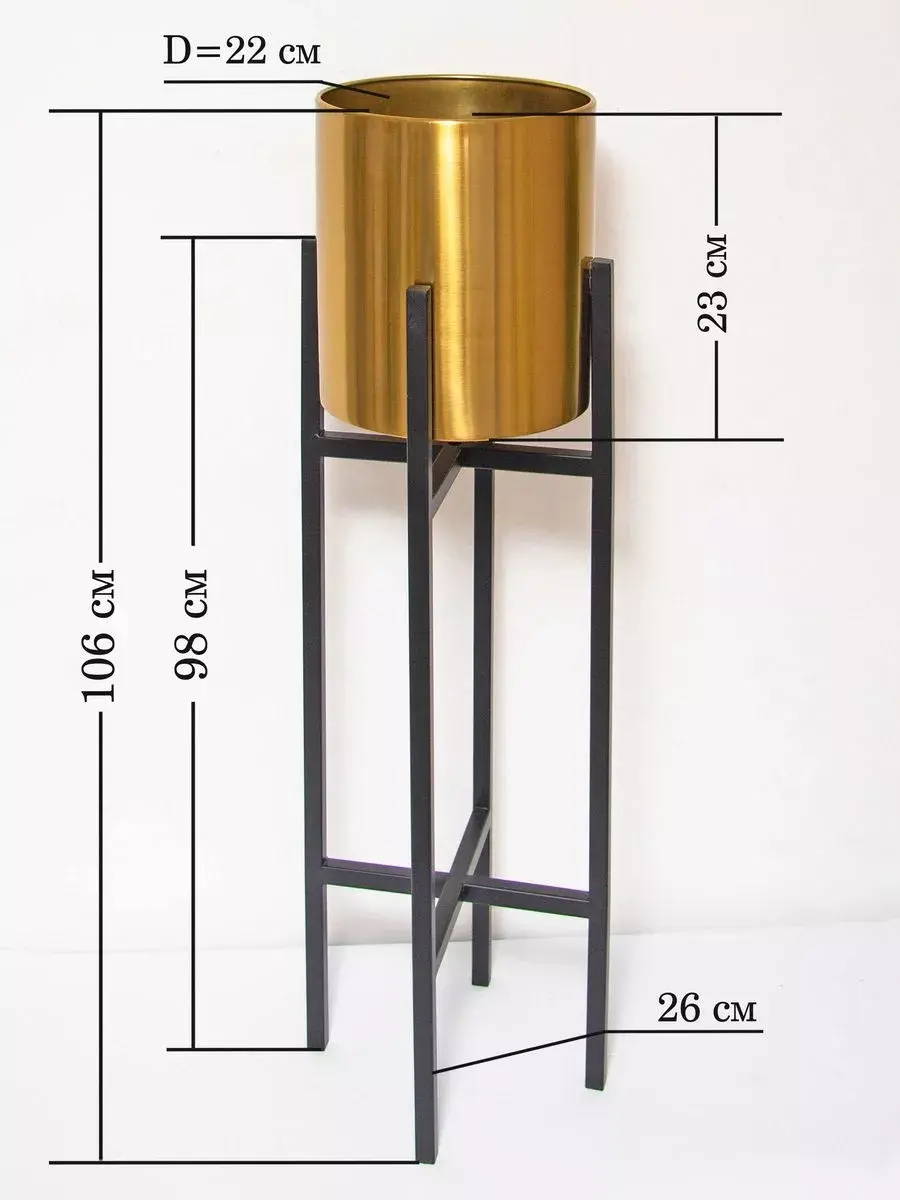 Кашпо металлическое на ножках от бренда Elenadecor - идеальное решение для оформления интерьера в современном стиле. Эта напольная подставка для цветов, красивое декоративное изделие обязательно подчеркнет ваш уникальный дизайн и добавит шарма в ваш дом. Золотой блеск добавит изысканности. Кашпо имеет диаметр 22 см и высоту 23 см, высота с подставкой 106 см, идеально подходит для различных растений и цветов. Металлические ножки надежно держат кашпо. Кашпо легко впишется в любой интерьер. Этот продукт отличается высоким качеством материалов и стильным цветовым решением. Подарите своему интерьеру оригинальный акцент с помощью этого кашпо на металлических ножках.
