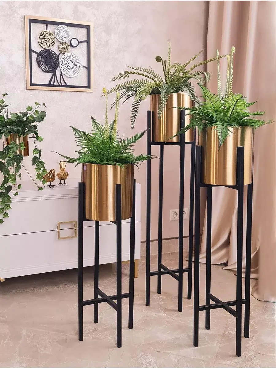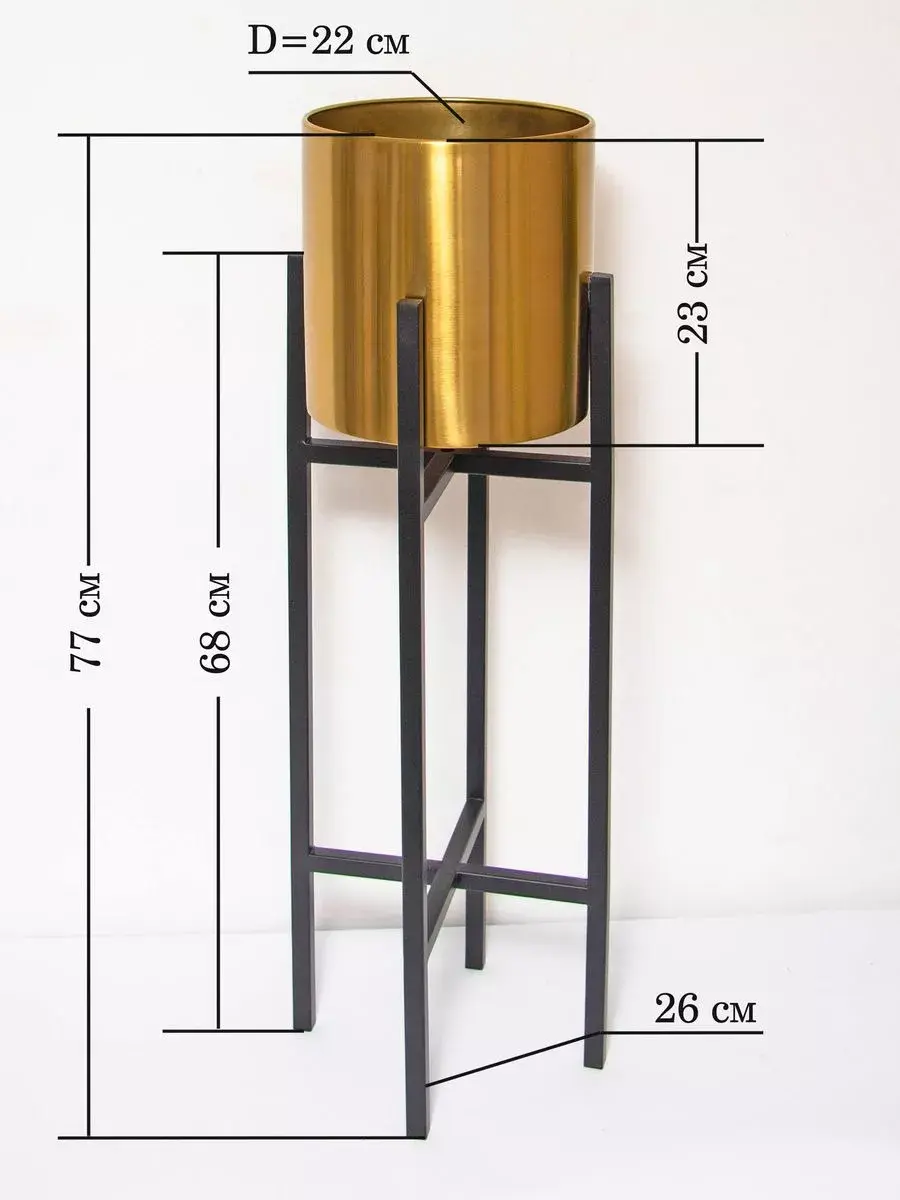 Кашпо металлическое на ножках от бренда Elenadecor - идеальное решение для оформления интерьера в современном стиле. Это красивое декоративное изделие обязательно подчеркнет ваш уникальный дизайн и добавит шарма в ваш дом. Золотой блеск добавит изысканности. Кашпо имеет диаметр 22 см и высоту 23 см, высота с подставкой 77 см, идеально подходит для различных растений и цветов. Металлические ножки надежно держат кашпо. Кашпо легко впишется в любой интерьер. Этот продукт отличается высоким качеством материалов и стильным цветовым решением. Подарите своему интерьеру оригинальный акцент с помощью этого кашпо на металлических ножках.
