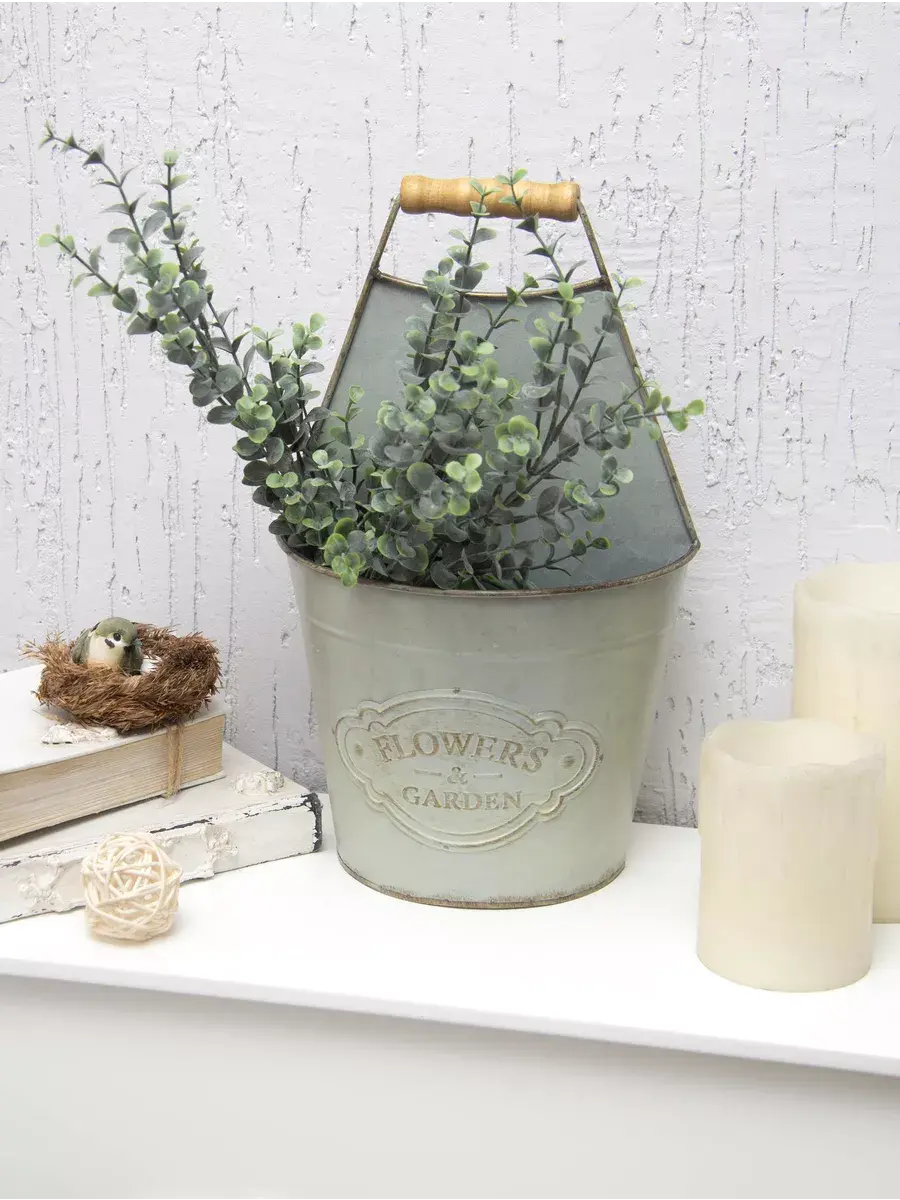 Винтажное кашпо из металла со спинкой и ручкой для цветов и растений. Прекрасный дизайн для украшения интерьера в стиле прованс. Можно установить на полку или подвесить на стену. Идеально подойдет для ампельных растений, таких как плющ или крестовник. Красивый элемент декора, который можно использовать как подставку для других кашпо или для сухоцветов. Размеры: 33*19,5 см. Сочетайте разные размеры для создания композиции. Подарите кашпо своим близким на 8 марта, день рождения или новоселье. Материал: металл. Форма: полукруглая. Подходит для дома и улицы. Гладкая матовая поверхность. Приобретите этот красивый элемент декора для создания уютного интерьера и ухаживайте за растениями с радостью! Можно создать композицию, сочетая кашпо разных размеров.