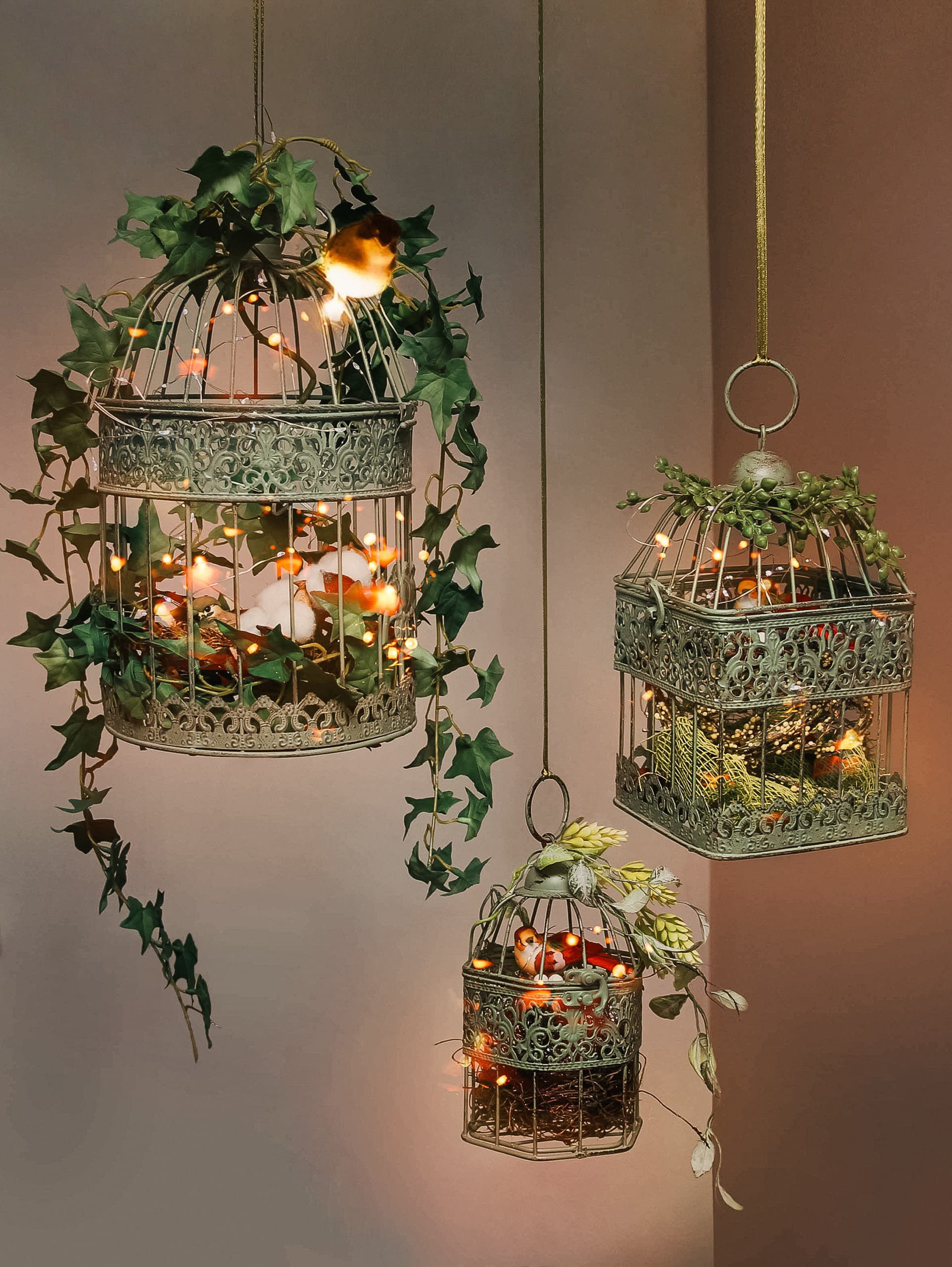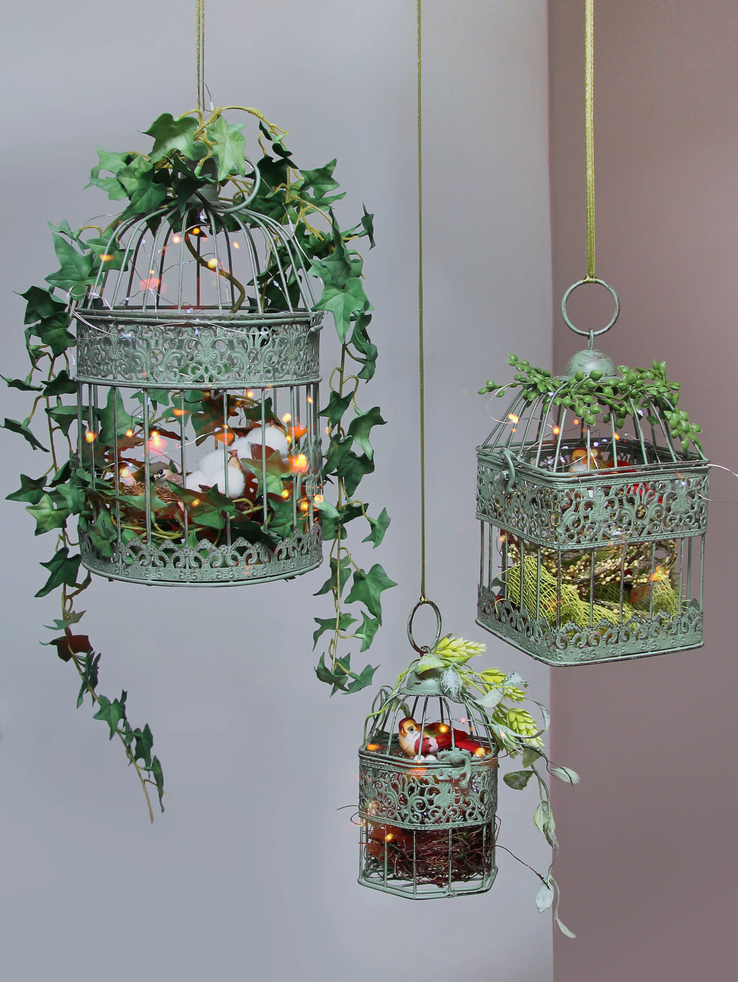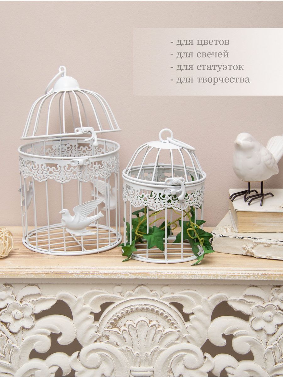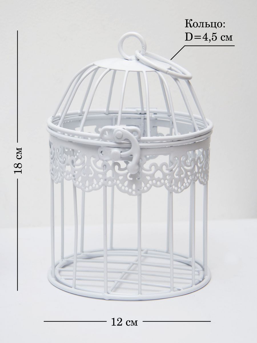Декоративная металлическая клетка для украшения интерьера. Размер клетки 18*12 см. Клетка может стоять на столике, полке, подоконнике или подвешиваться за кольцо на крышке. Подойдет для миниатюрного горшочка с живыми цветами, статуэтки, искусственного растения, свечей.