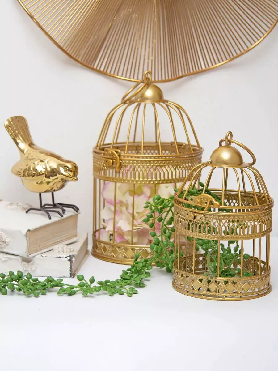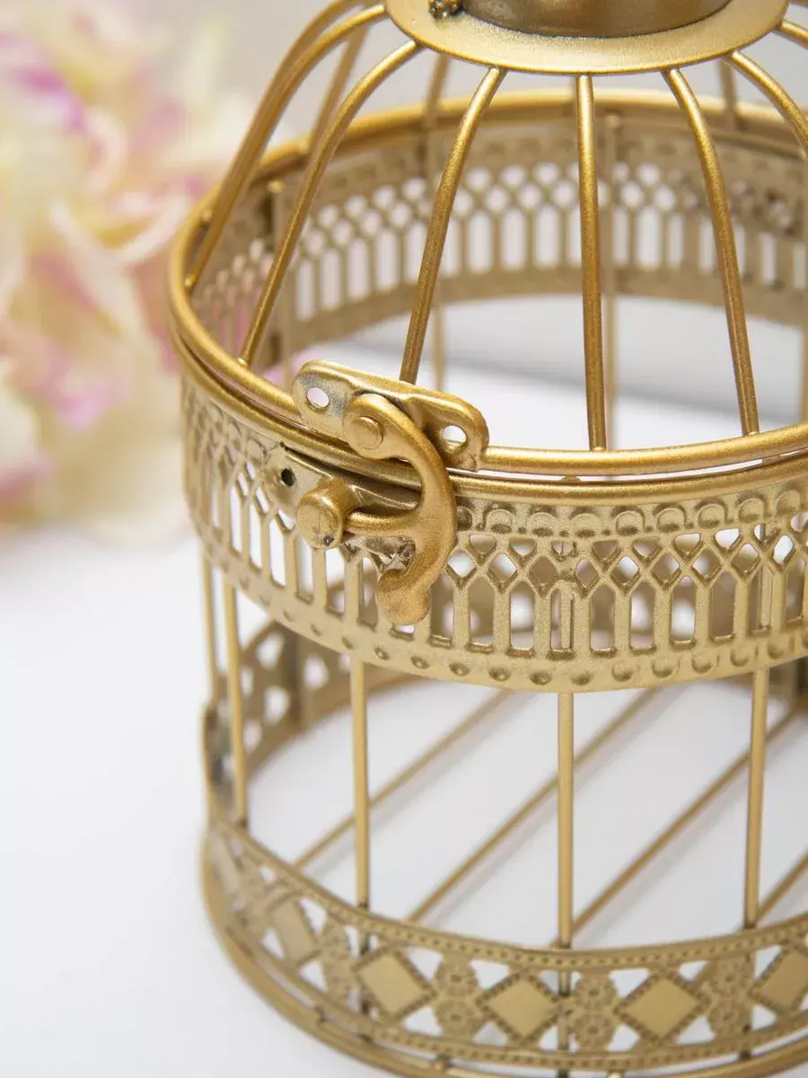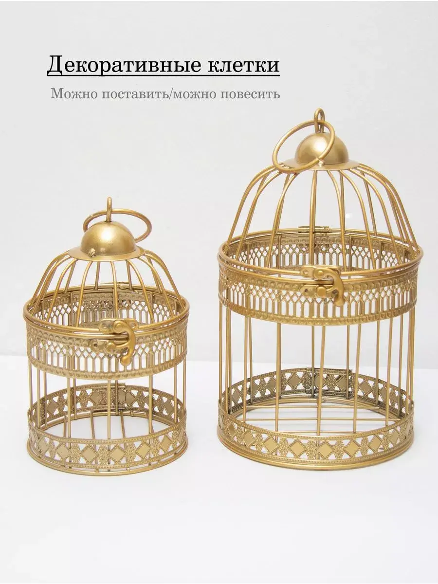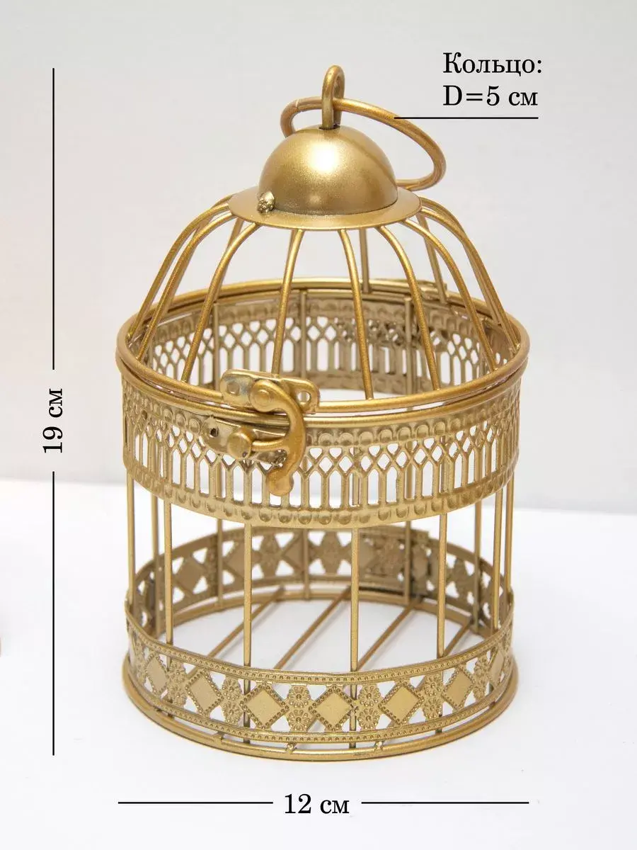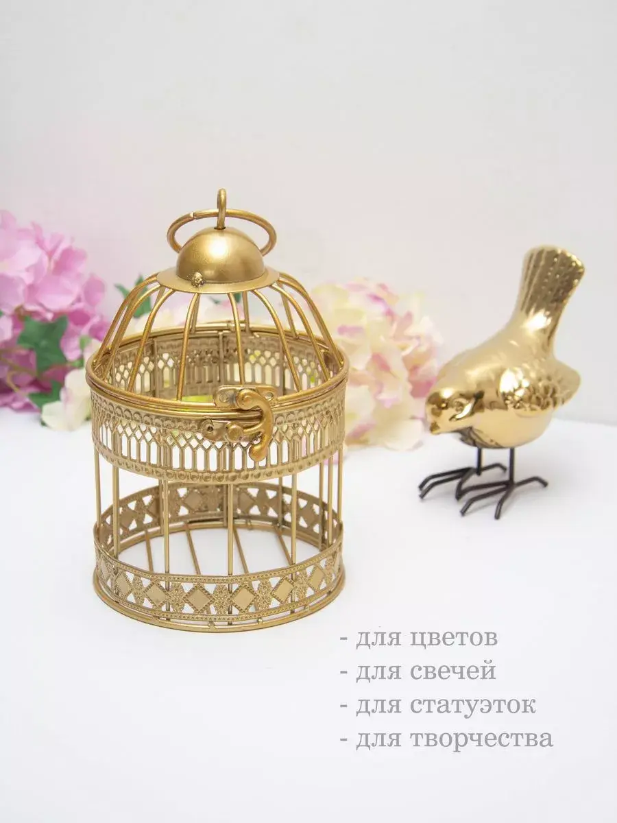 Декоративная металлическая клетка настольная - настенная для украшения интерьера в классическом стиле. Размер клетки 19*12 см. Клетка может стоять на столике, полке, подоконнике или подвешиваться за кольцо на крышке. Подойдет для миниатюрного горшочка с живыми цветами, статуэтки, искусственного растения, свечей и светодиодных лент.