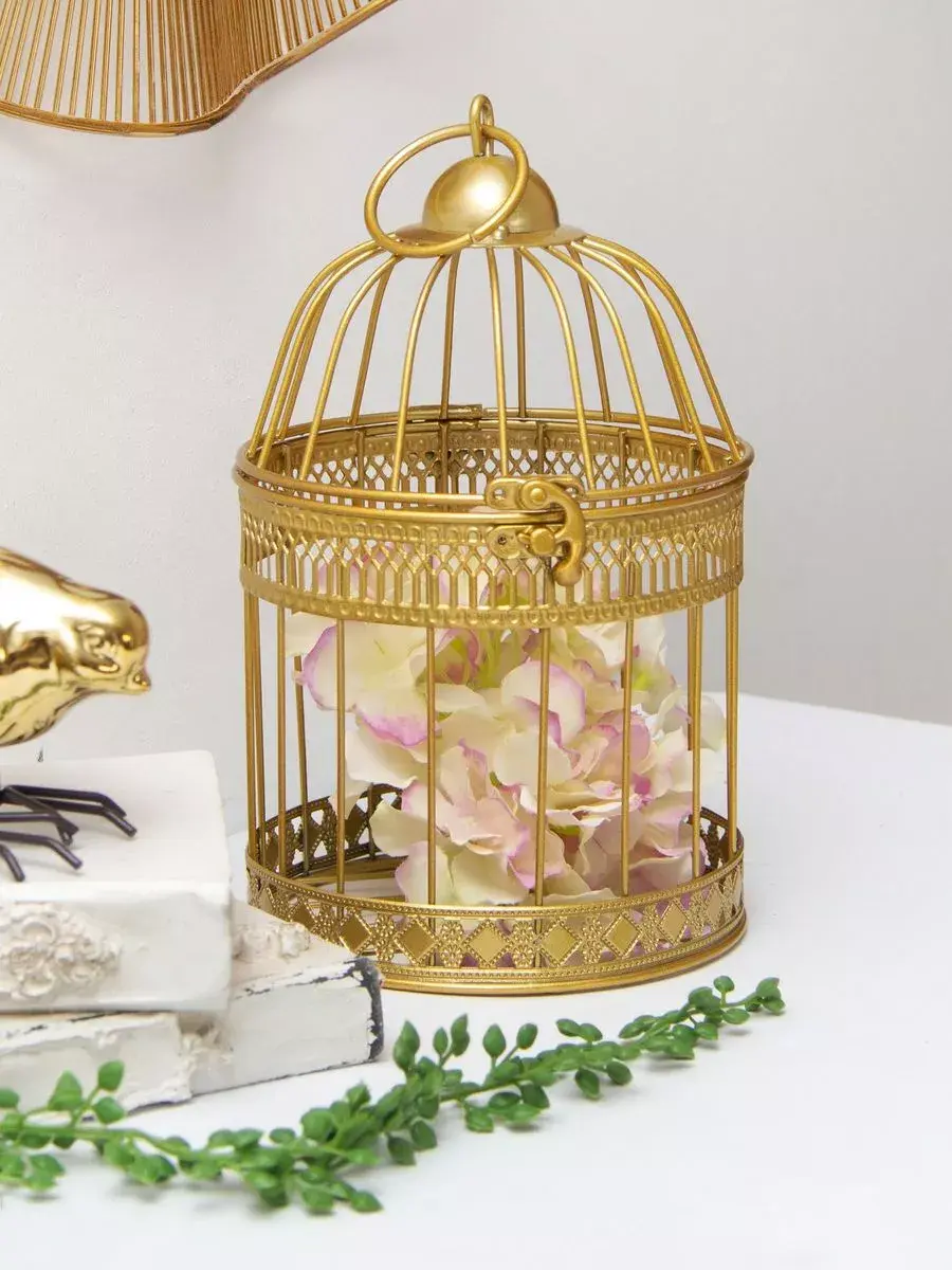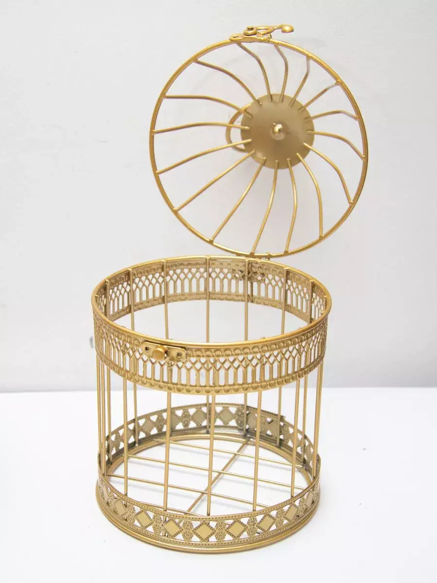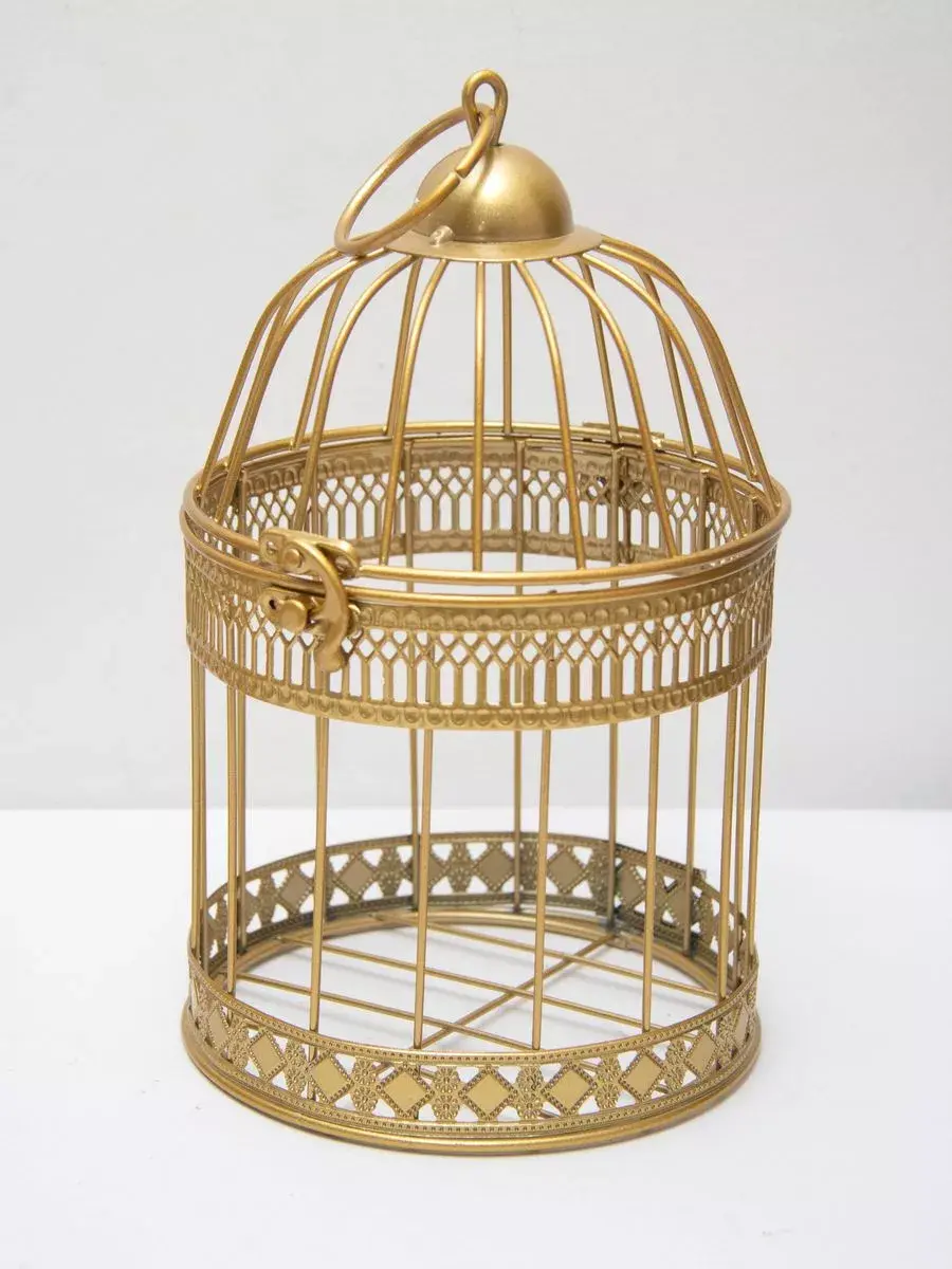 Декоративная металлическая клетка для украшения интерьера. Размер клетки 25,5*15 см. Клетка может стоять на столике, полке, подоконнике или подвешиваться за кольцо на крышке. Подойдет для миниатюрного горшочка с живыми цветами, статуэтки, искусственного растения, свечей.