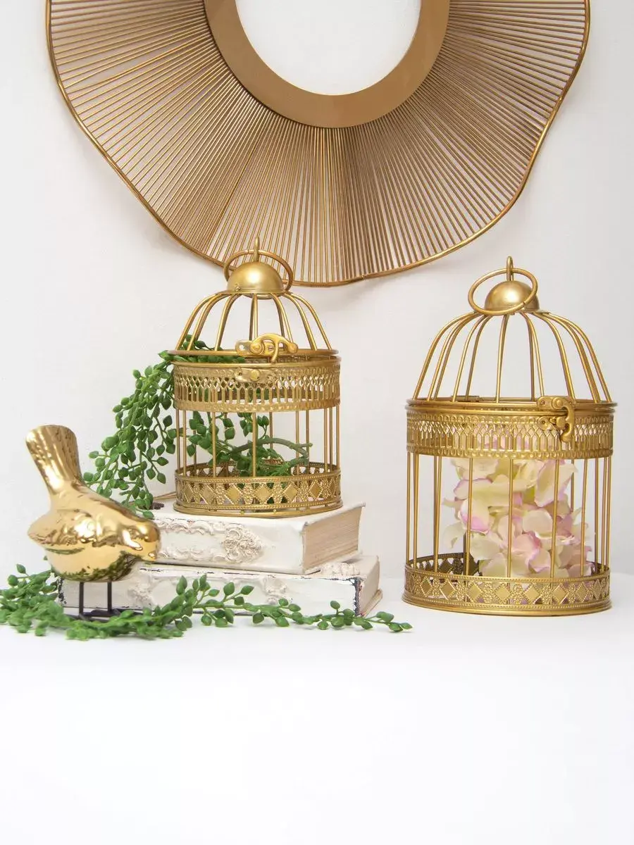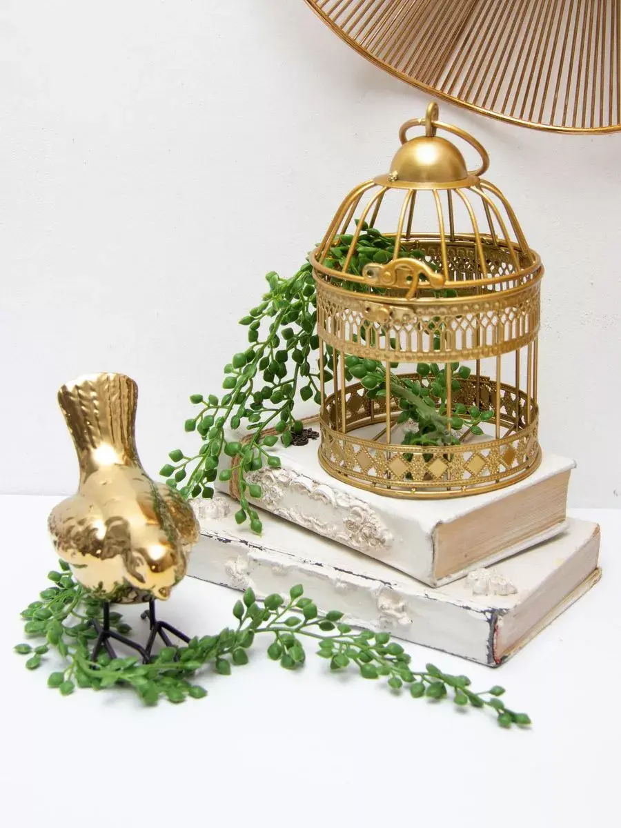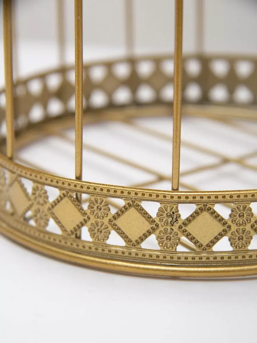 Декоративная металлическая клетка для украшения интерьера. Размер клетки 25,5*15 см. Клетка может стоять на столике, полке, подоконнике или подвешиваться за кольцо на крышке. Подойдет для миниатюрного горшочка с живыми цветами, статуэтки, искусственного растения, свечей.