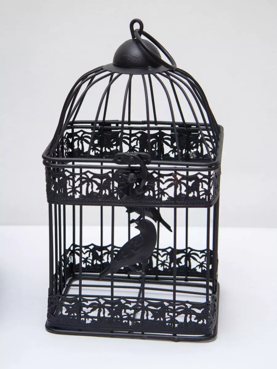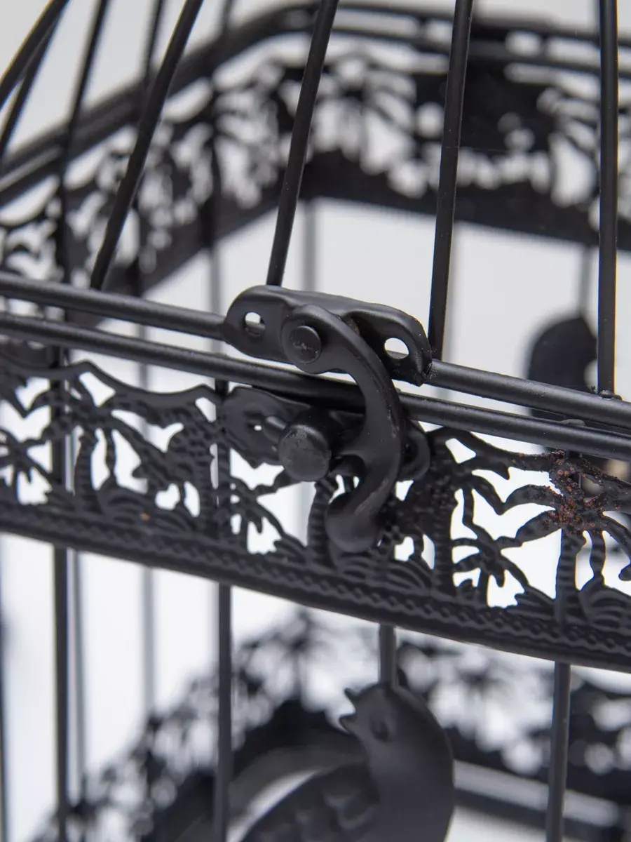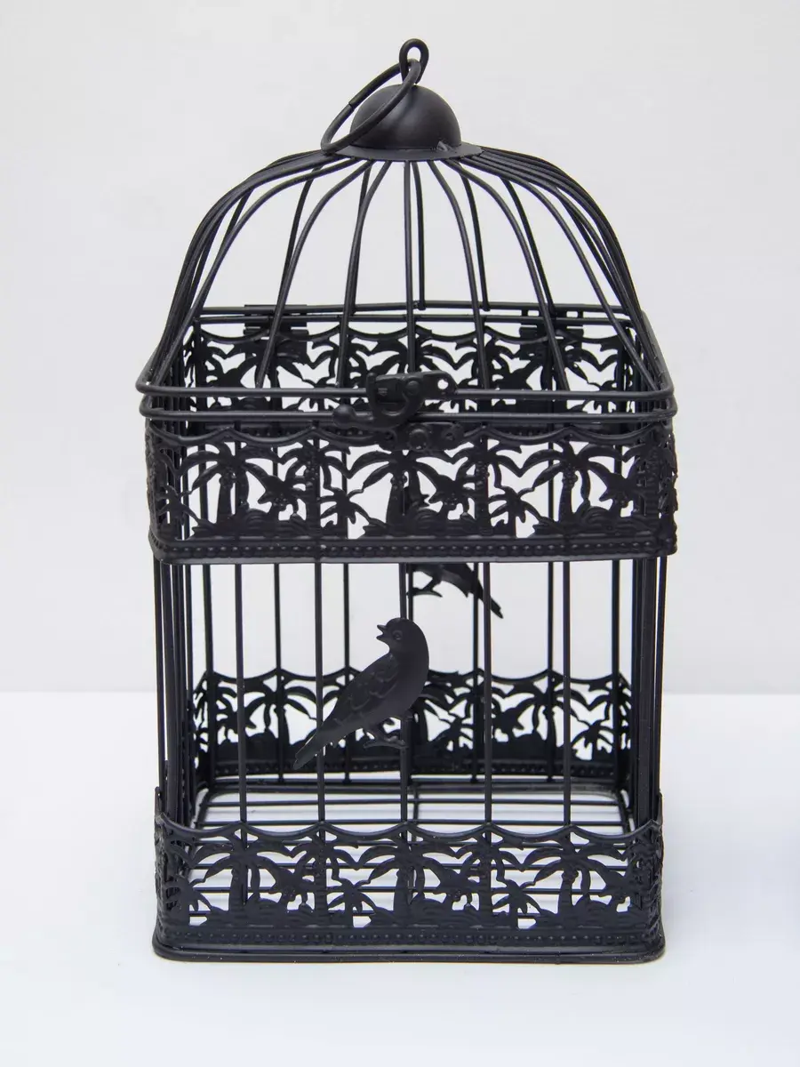 Декоративная металлическая клетка для украшения интерьера. Размер клетки 31*18 см. Клетка может стоять на столике, полке, подоконнике или подвешиваться за кольцо на крышке. Подойдет для миниатюрного горшочка с живыми цветами, статуэтки, искусственного растения.