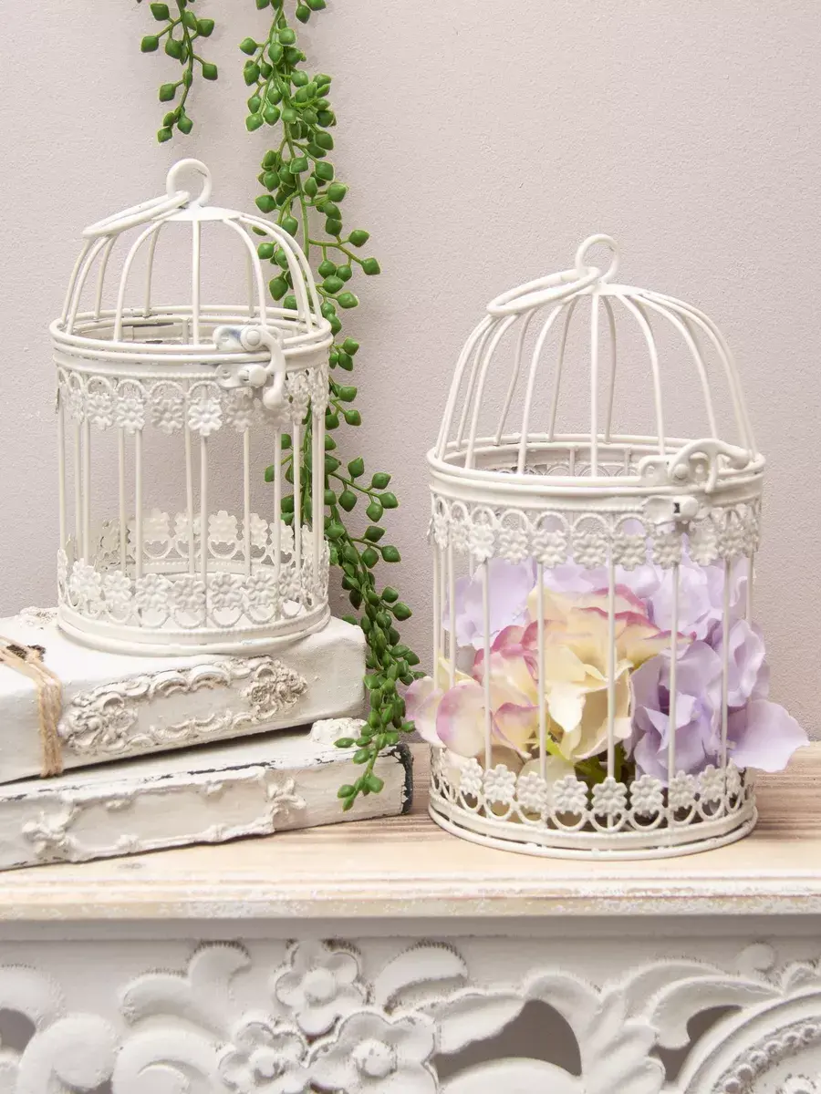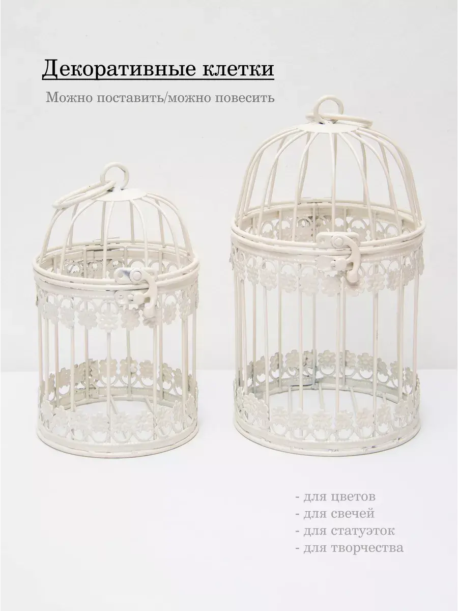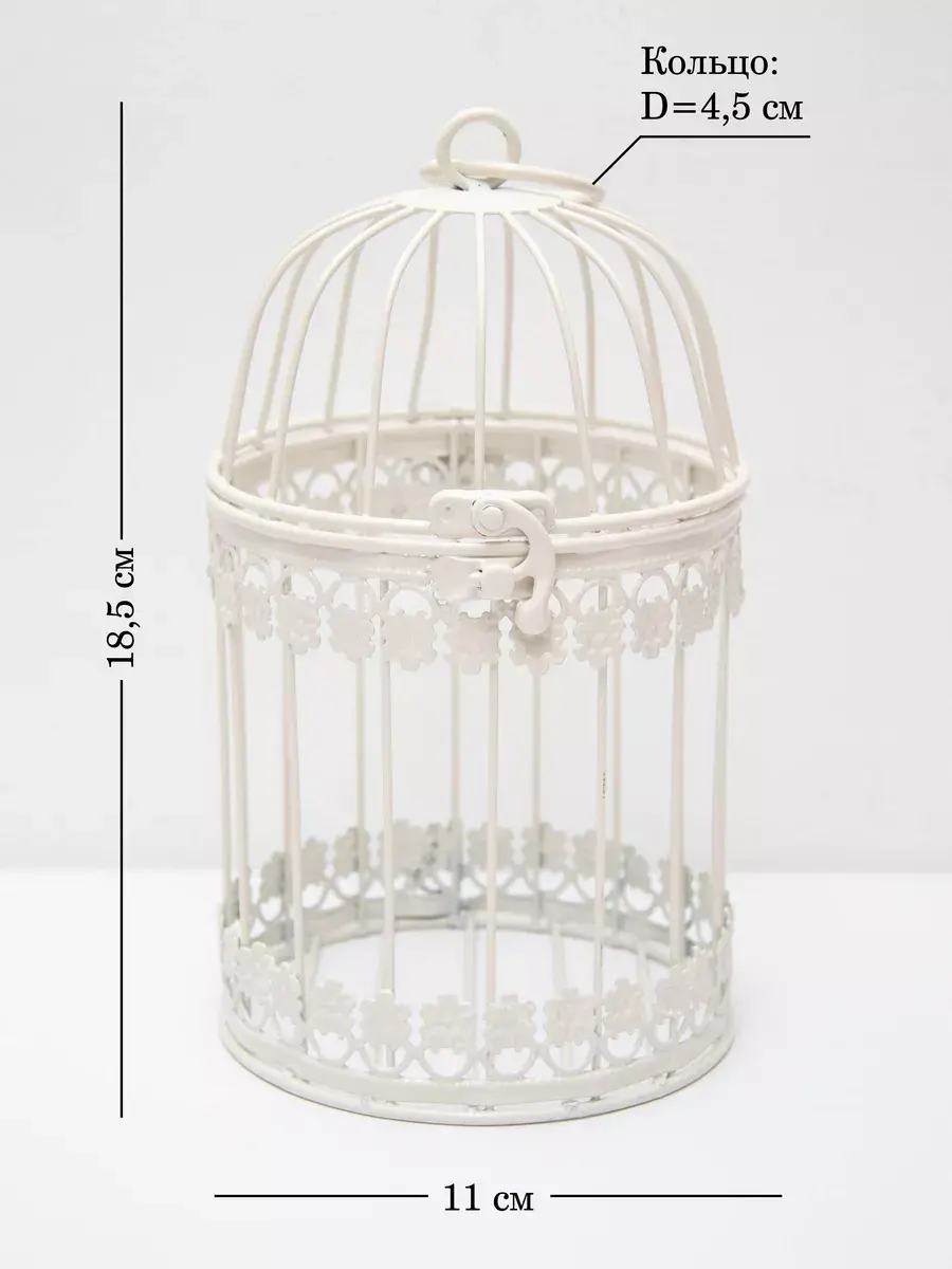 Клетка декоративная для подвешивания растений 18,5*11 см. В клетку можно поставить кашпо для растений или искусственные цветы. Интерьерную клетку можно использовать как держатель для кашпо, как подсвечник или декор на полке. Для декора интерьера используйте декоративные клетки, их можно дополнить светодидодами, свечами на батарейках и цветами. Декоративные подвесы на летней террасе, в кафе или на кухне создадут романтический интерьер. Используйте подвесной декор для украшения окон и балконов. Декоративная металлическая клетка как декор на полку для украшения интерьера в стиле прованс. Размер клетки 18,5*10 см. Клетка может стоять на столике, подоконнике или подвешиваться за кольцо на крышке. Подойдет для миниатюрного горшочка с живыми цветами, статуэтки, искусственного растения, свечей.