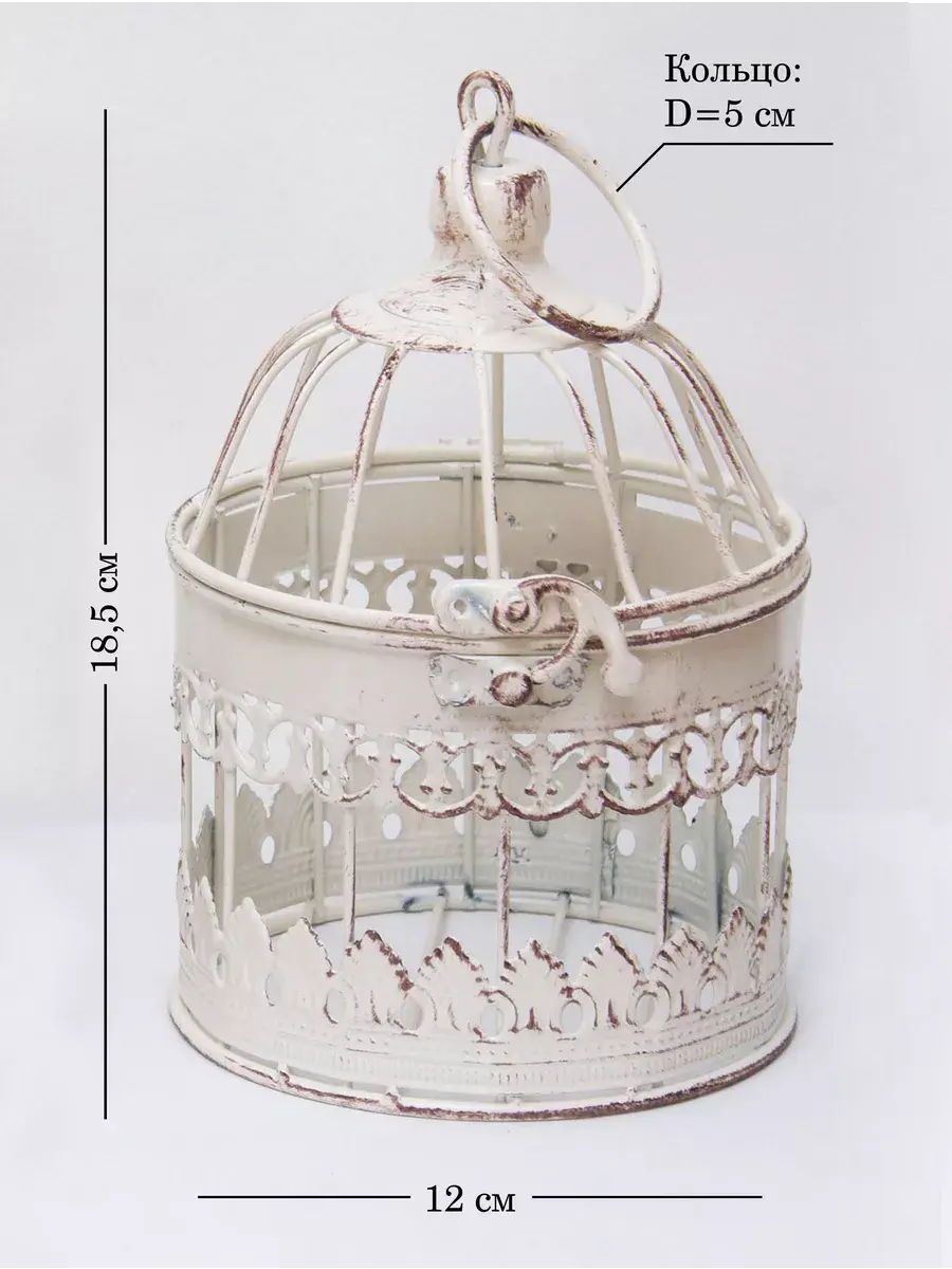 Клетка декоративная для подвешивания растений 18,5*12 см. В клетку можно поставить кашпо для растений или искусственные цветы. Интерьерную клетку можно использовать как держатель для кашпо, как подсвечник или декор на полке. Для декора интерьера используйте декоративные клетки, их можно дополнить светодидодами, свечами на батарейках и цветами. Декоративные подвесы на летней террасе, в кафе или на кухне создадут романтический интерьер. Используйте подвесной декор для украшения окон и балконов. Декоративная металлическая клетка как декор на полку для украшения интерьера в стиле прованс. Клетка может стоять на столике, подоконнике или подвешиваться за кольцо на крышке. Подойдет для миниатюрного горшочка с живыми цветами, статуэтки, искусственного растения, свечей.