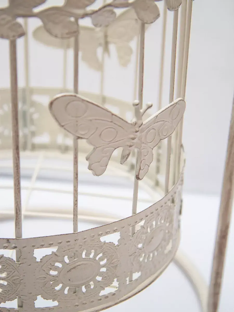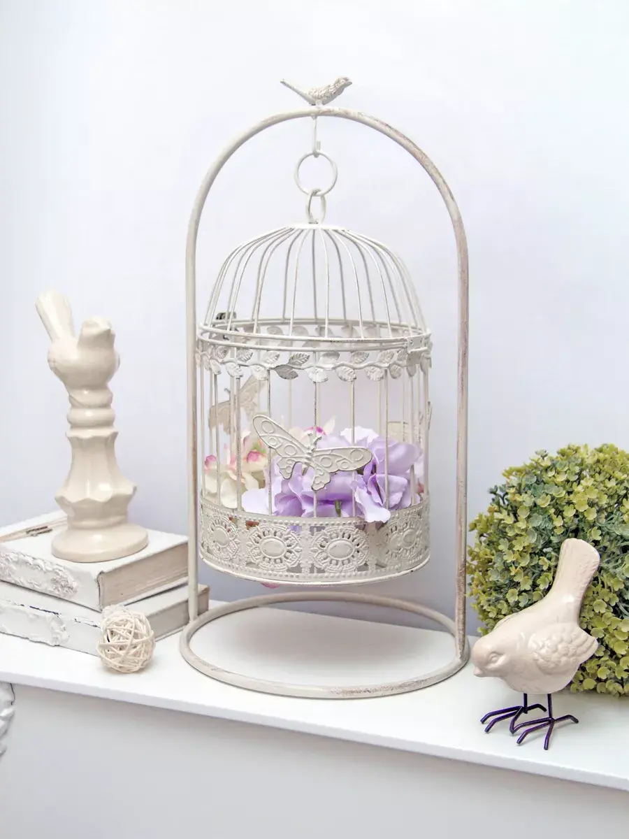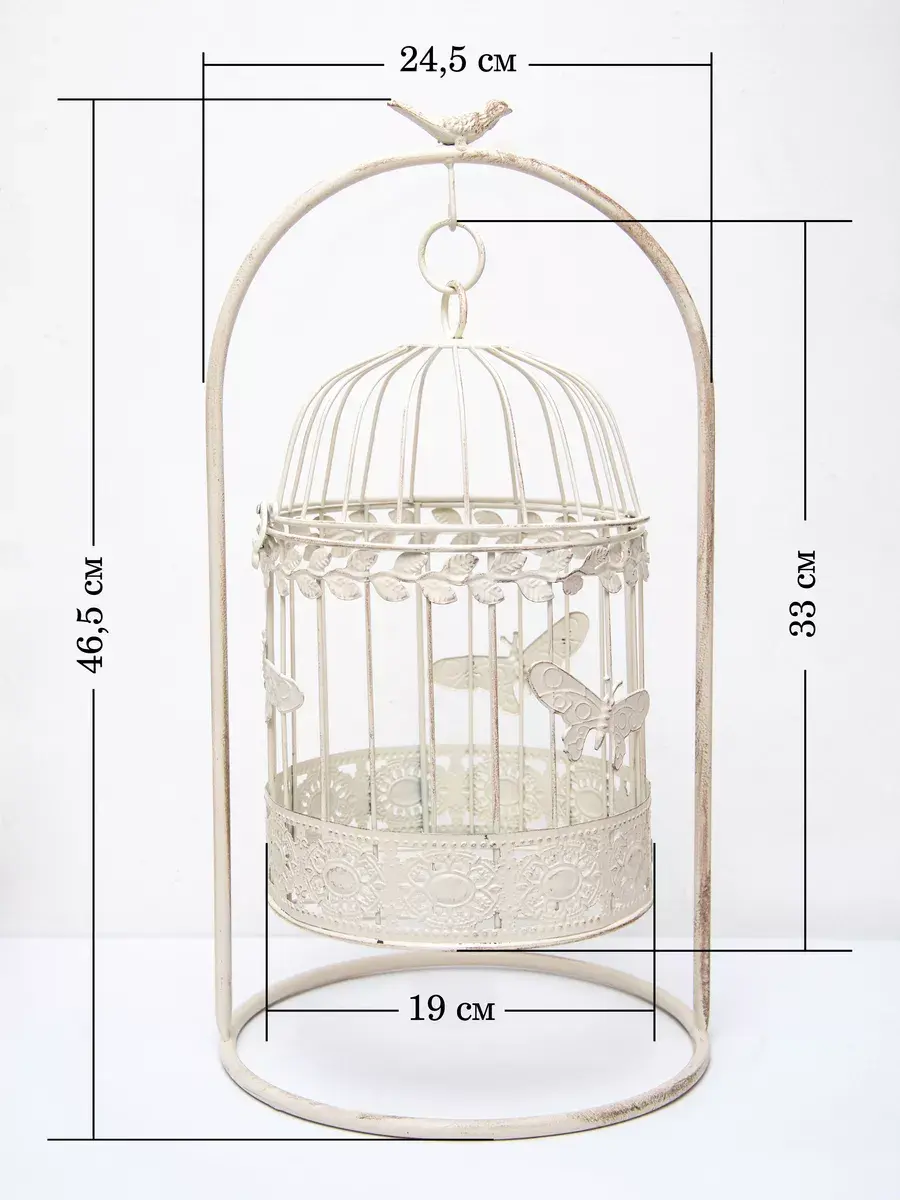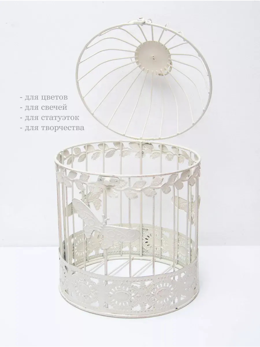 Клетка декоративная для подвешивания растений 19*30 см. В клетку можно поставить кашпо для растений или искусственные цветы. Интерьерную клетку можно использовать как держатель для кашпо, как подсвечник или декор на полке. Для декора интерьера используйте декоративные клетки, их можно дополнить светодидодами, свечами на батарейках и цветами. Декоративные подвесы на летней террасе, в кафе или на кухне создадут романтический интерьер. Используйте подвесной декор для украшения окон и балконов. Декоративная металлическая клетка как декор на полку для украшения интерьера в стиле прованс. Размер клетки 18,5*10 см. Клетка может стоять на столике, подоконнике или подвешиваться за кольцо на крышке. Подойдет для миниатюрного горшочка с живыми цветами, статуэтки, искусственного растения, свечей.
