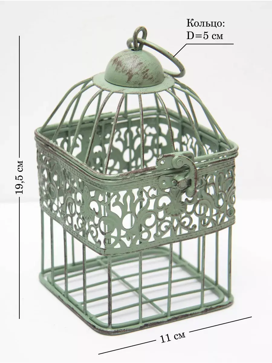 Клетка декоративная для подвешивания растений 19,5*11 см. В клетку можно поставить кашпо для растений или искусственные цветы. Интерьерную клетку можно использовать как держатель для кашпо, как подсвечник или декор на полке. Для декора интерьера используйте декоративные клетки, их можно дополнить светодидодами, свечами на батарейках и цветами. Декоративные подвесы на летней террасе, в кафе или на кухне создадут романтический интерьер. Используйте подвесной декор для украшения окон и балконов. Декоративная металлическая клетка как декор на полку для украшения интерьера в стиле прованс. Клетка может стоять на столике, подоконнике или подвешиваться за кольцо на крышке. Подойдет для миниатюрного горшочка с живыми цветами, статуэтки, искусственного растения, свечей.