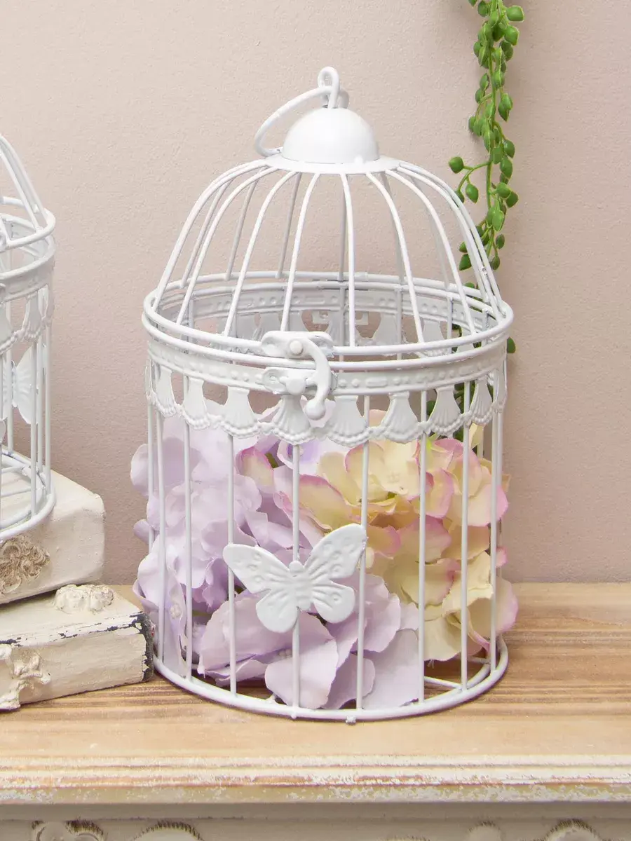 Клетка декоративная для подвешивания растений 25*15 см. В клетку можно поставить кашпо для растений или искусственные цветы. Интерьерную клетку можно использовать как держатель для кашпо, как подсвечник или декор на полке. Для декора интерьера используйте декоративные клетки, их можно дополнить светодидодами, свечами на батарейках и цветами. Декоративные подвесы на летней террасе, в кафе или на кухне создадут романтический интерьер. Используйте подвесной декор для украшения окон и балконов. Декоративная металлическая клетка как декор на полку для украшения интерьера в стиле прованс. Клетка может стоять на столике, подоконнике или подвешиваться за кольцо на крышке. Подойдет для миниатюрного горшочка с живыми цветами, статуэтки, искусственного растения, свечей.