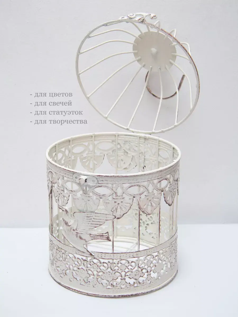 Клетка декоративная для подвешивания растений 26*15 см. В клетку можно поставить кашпо для растений или искусственные цветы. Интерьерную клетку можно использовать как держатель для кашпо, как подсвечник или декор на полке. Для декора интерьера используйте декоративные клетки, их можно дополнить светодидодами, свечами на батарейках и цветами. Декоративные подвесы на летней террасе, в кафе или на кухне создадут романтический интерьер. Используйте подвесной декор для украшения окон и балконов. Декоративная металлическая клетка как декор на полку для украшения интерьера в стиле прованс. Клетка может стоять на столике, подоконнике или подвешиваться за кольцо на крышке. Подойдет для миниатюрного горшочка с живыми цветами, статуэтки, искусственного растения, свечей.