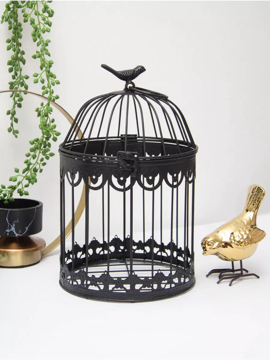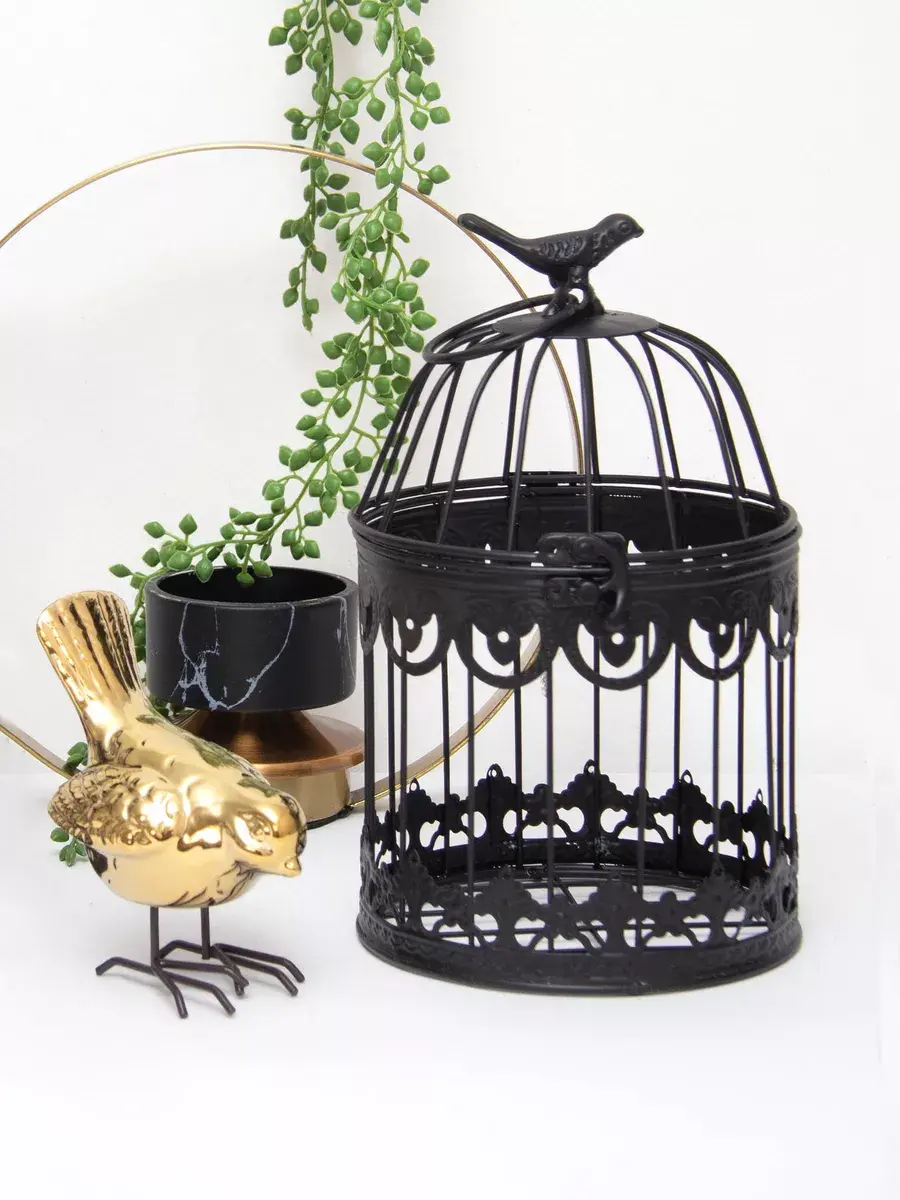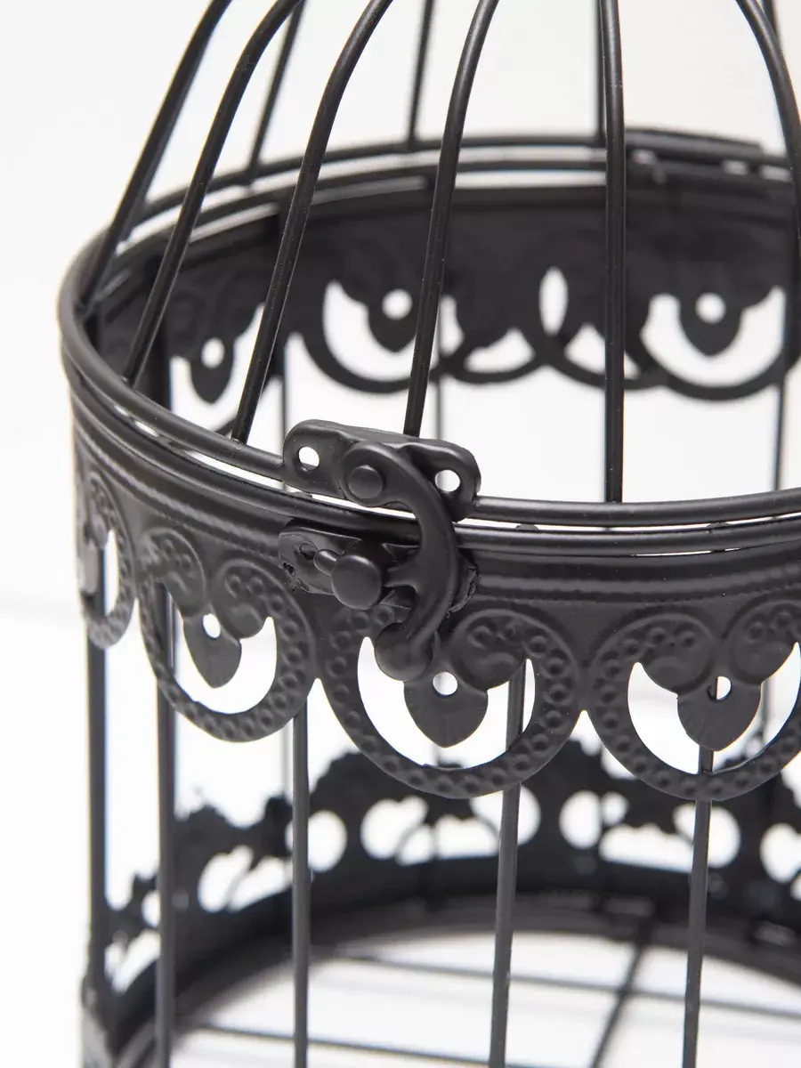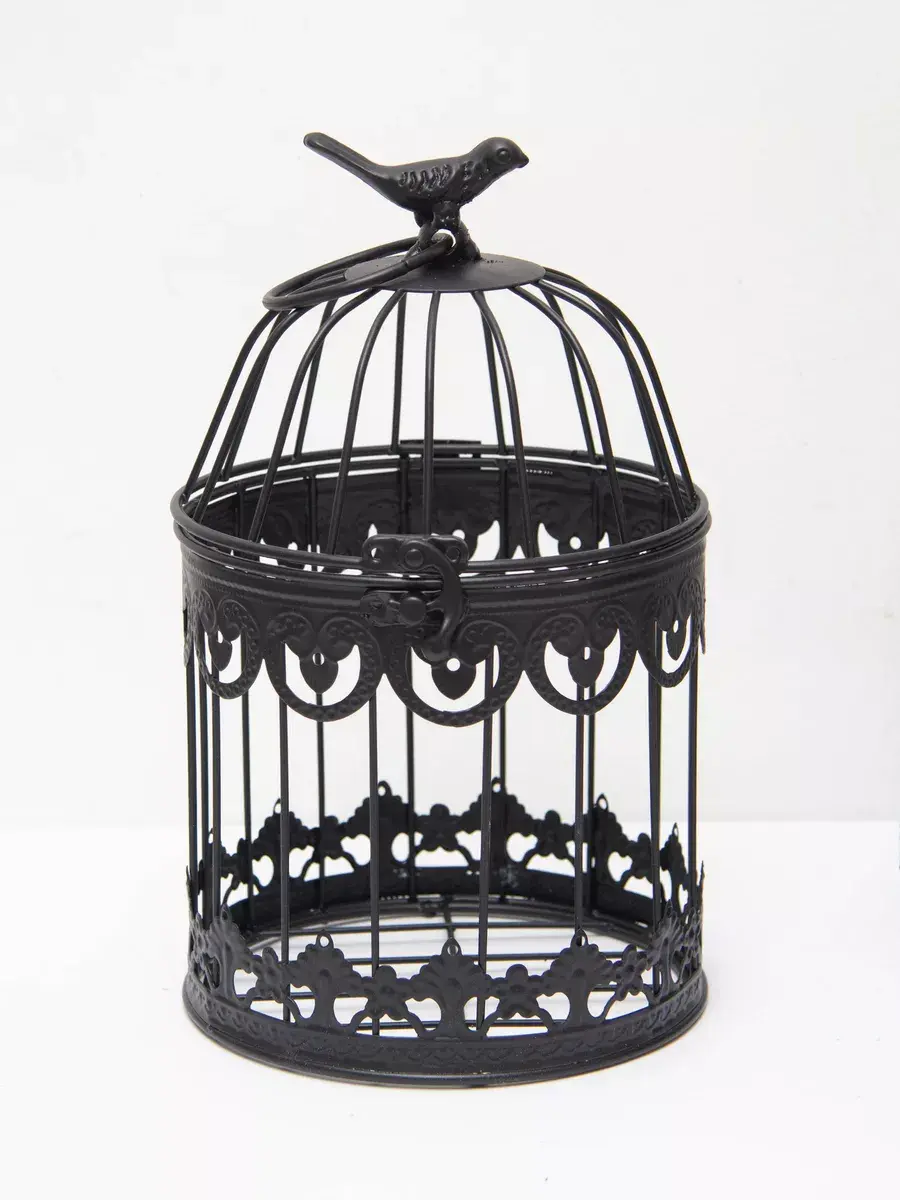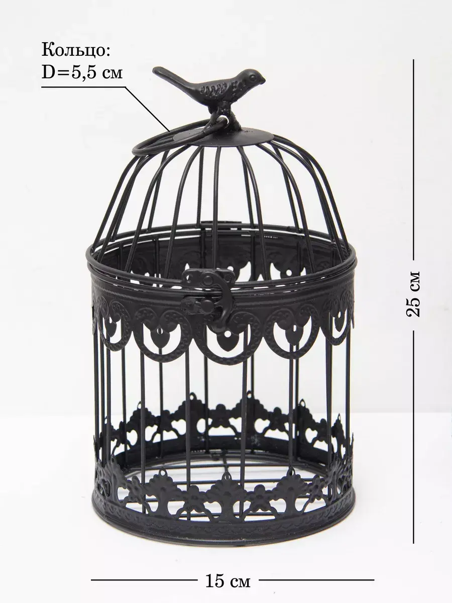 Декоративная металлическая клетка для украшения интерьера. Размер клетки 25*15 см. Клетка может стоять на столике, полке, подоконнике или подвешиваться за кольцо на крышке. Подойдет для миниатюрного горшочка с живыми цветами, статуэтки, искусственного растения.