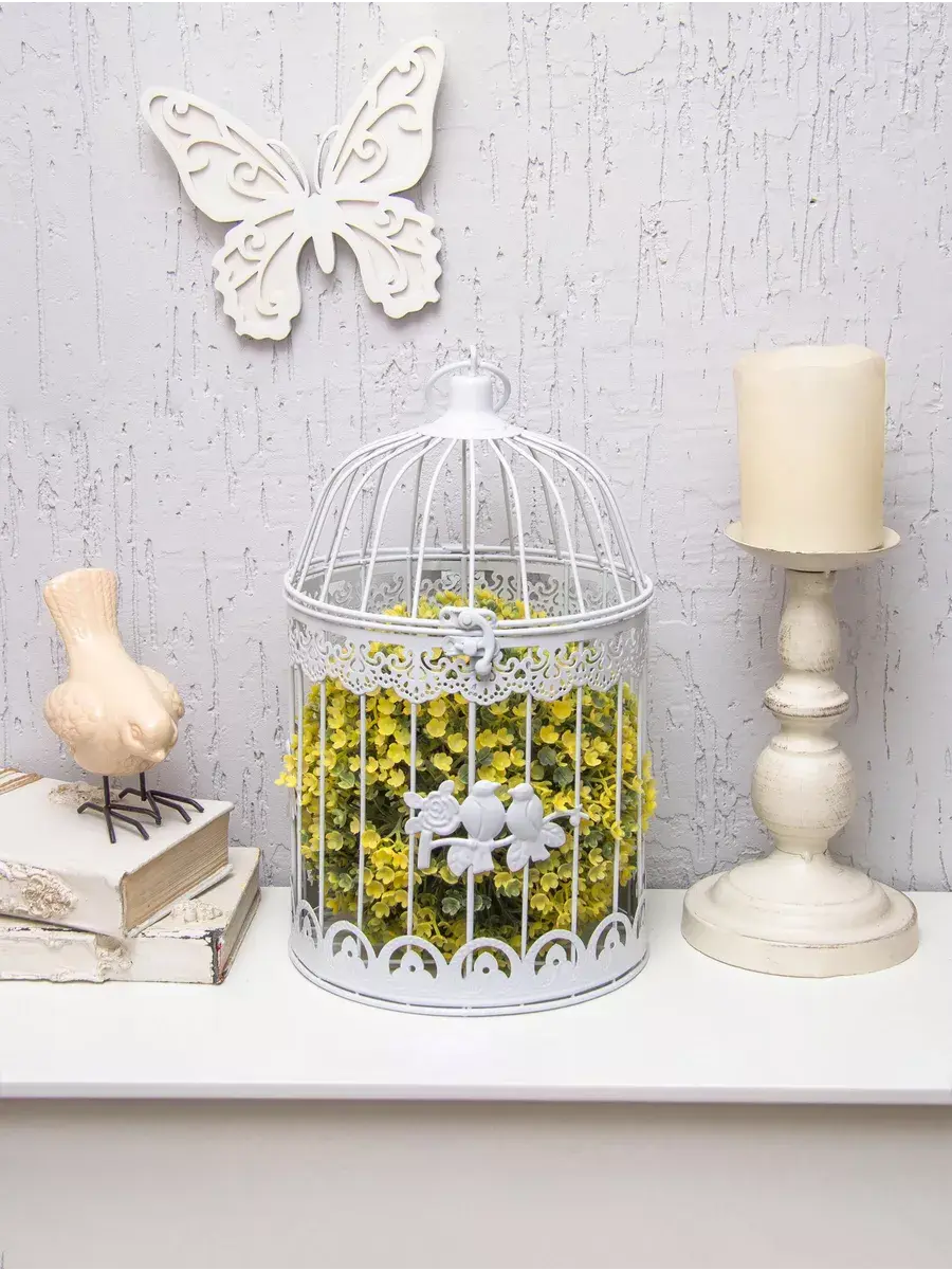 Декоративная металлическая клетка для украшения интерьера. Размер клетки 32,5*19 см. Клетка может стоять на столике, полке, подоконнике или подвешиваться за кольцо на крышке. Подойдет для миниатюрного горшочка с живыми цветами, статуэтки, искусственного растения, свечей. Для подвешивания цветов и растений подойдет кронштейн с птичкой арт. 207413206