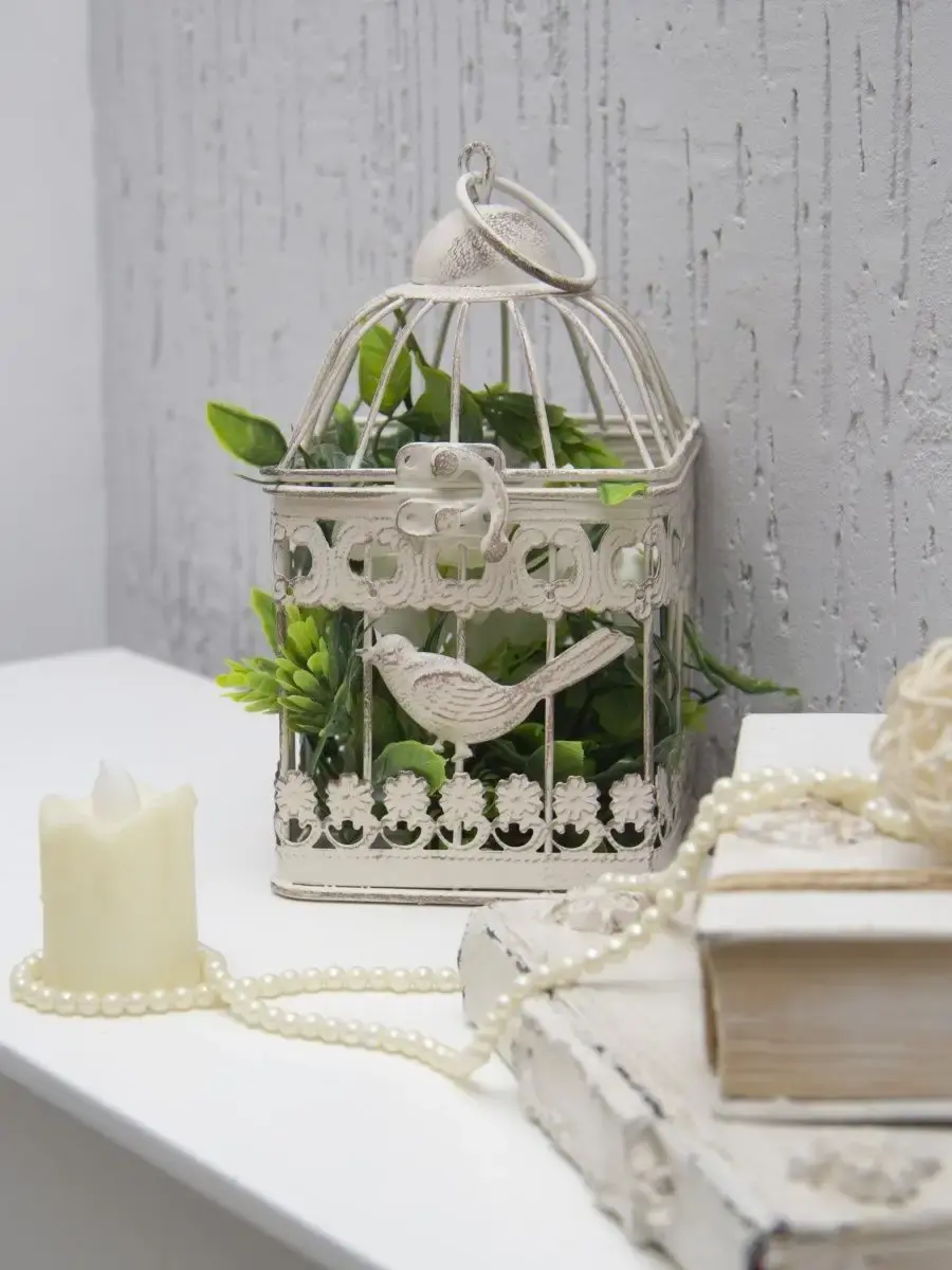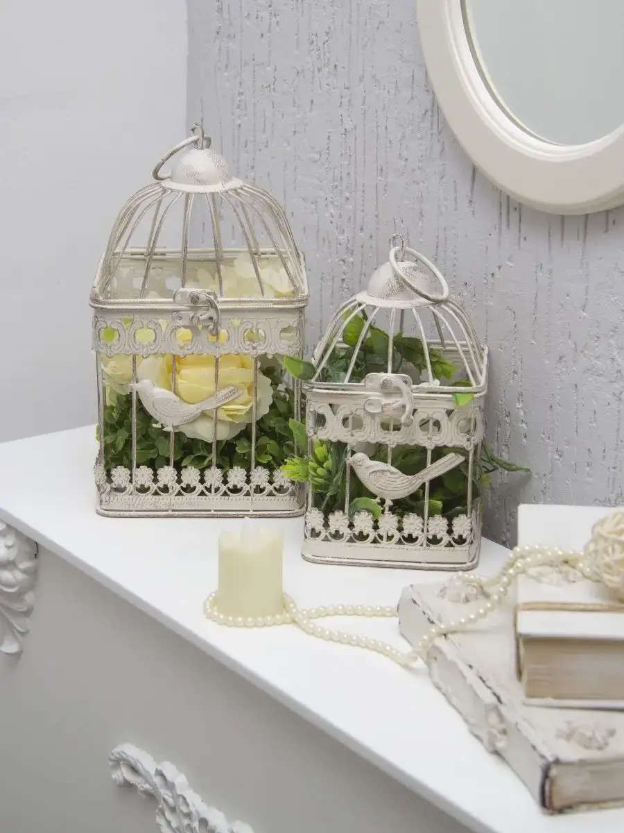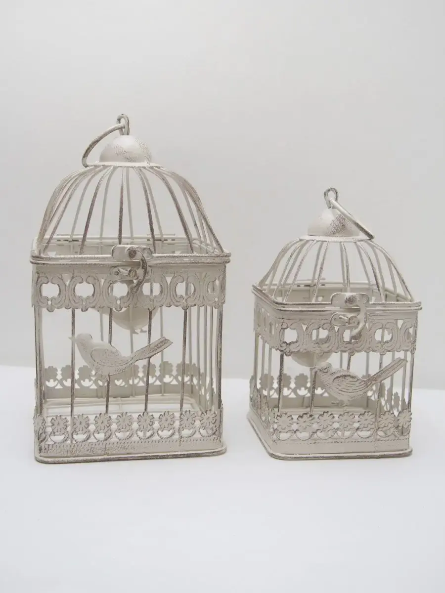 Декоративная металлическая клетка. Молочная с коричневой патиной. Идеально подойдет для небольшого горшечного растения, искусственного цветка, свечей, арома, фотографий, небольших домашних мелочей. Клетки представлены в трех вариантах: большая (14х14х25 см), маленькая (11х11х20 см) и комплект из двух клеток.