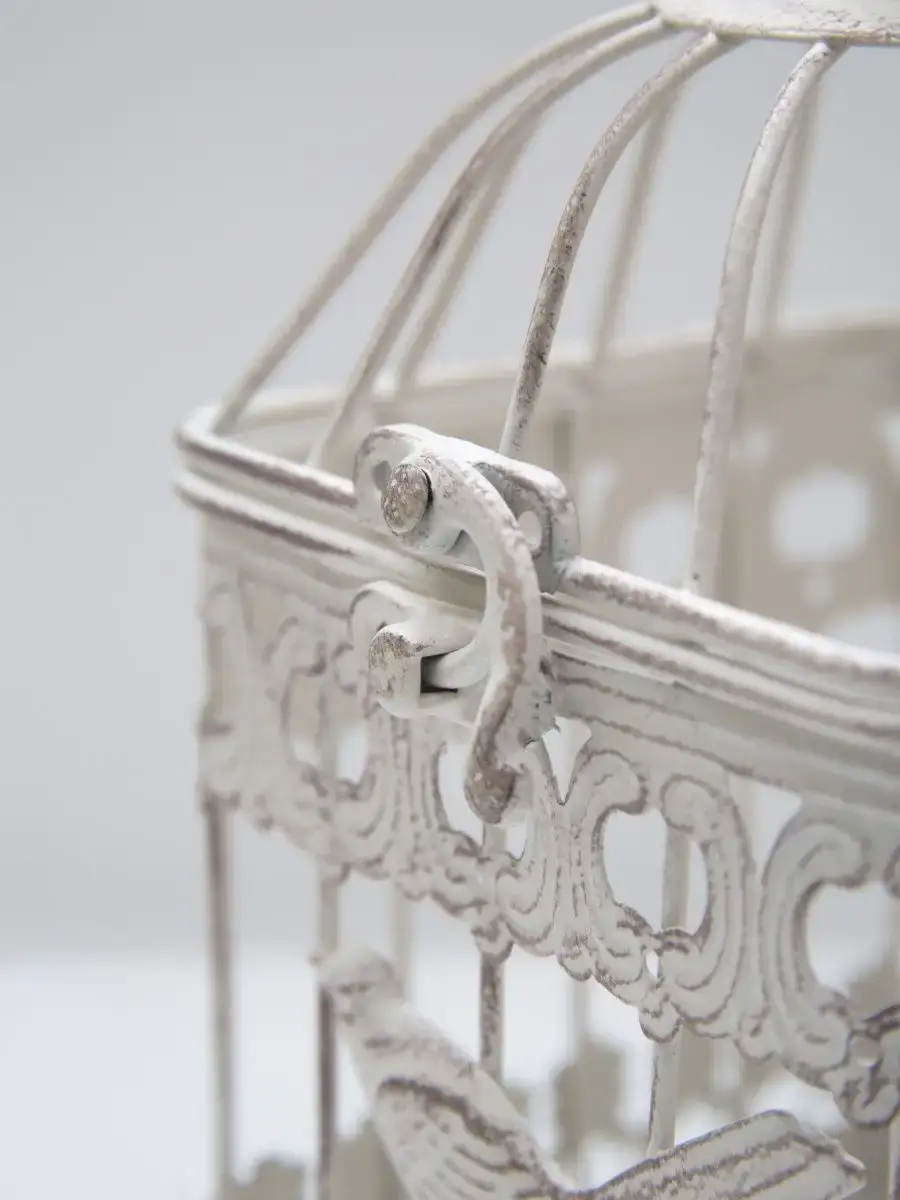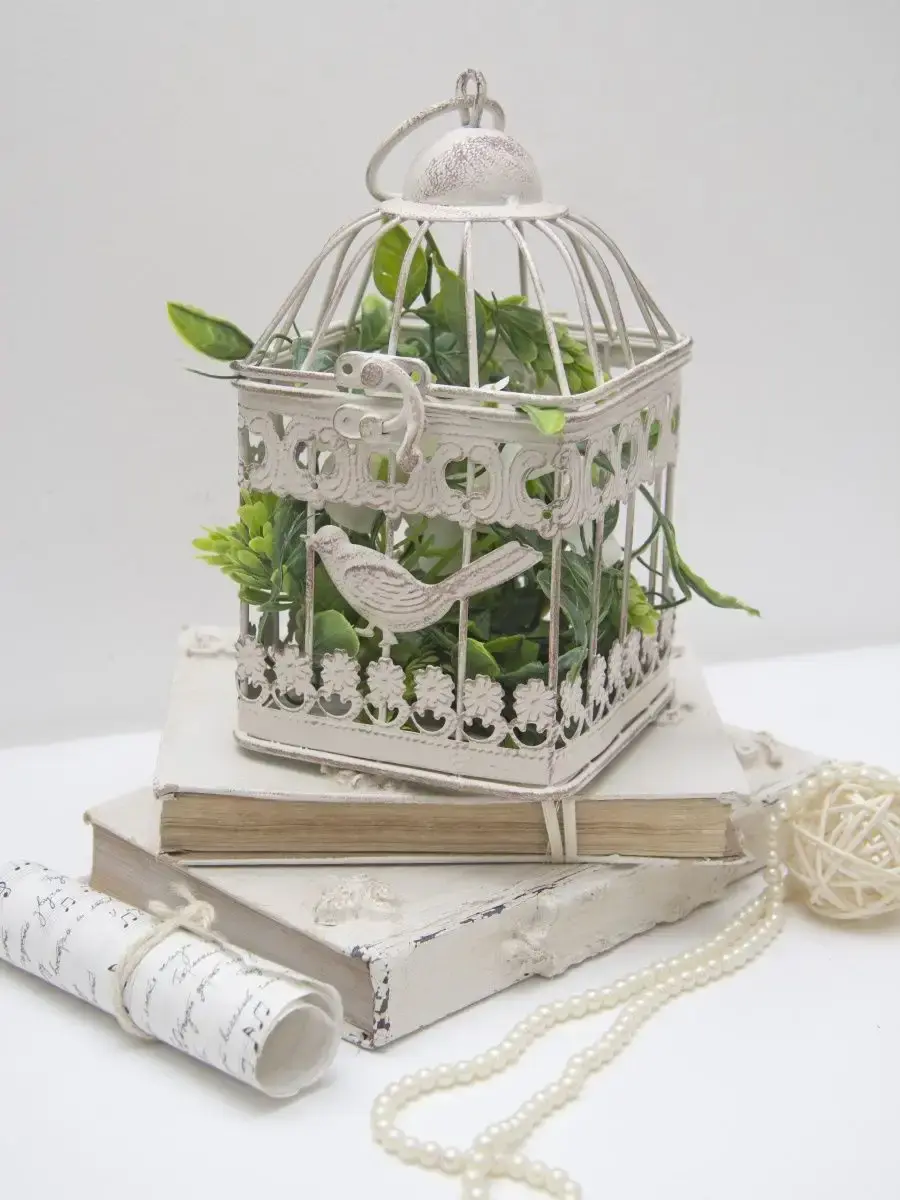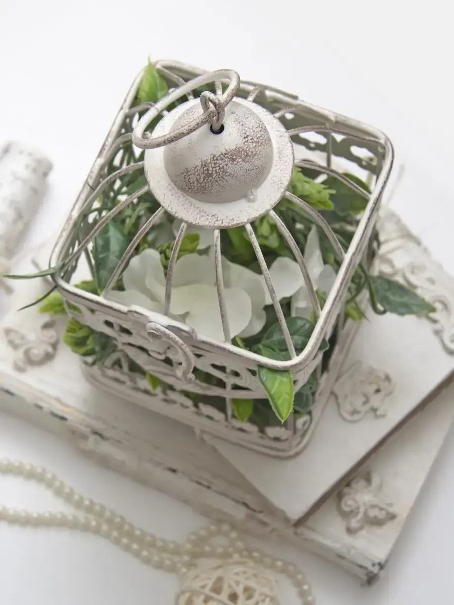Декоративная металлическая клетка. Молочная с коричневой патиной. Идеально подойдет для небольшого горшечного растения, искусственного цветка, свечей, арома, фотографий, небольших домашних мелочей. Клетки представлены в трех вариантах: большая (14х14х25 см), маленькая (11х11х20 см) и комплект из двух клеток.