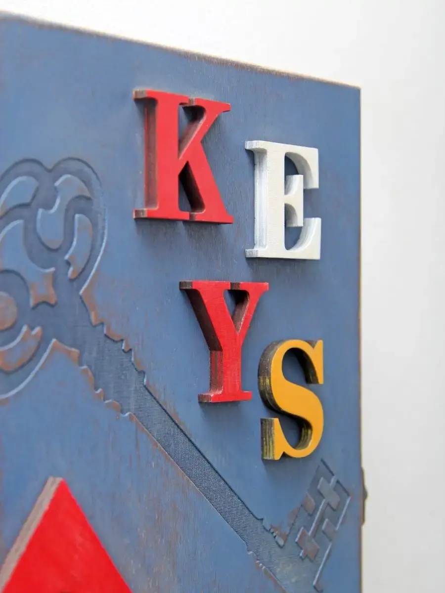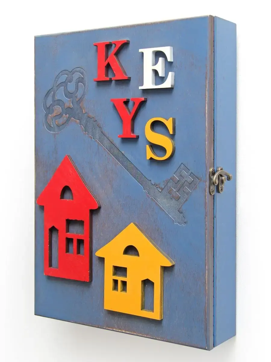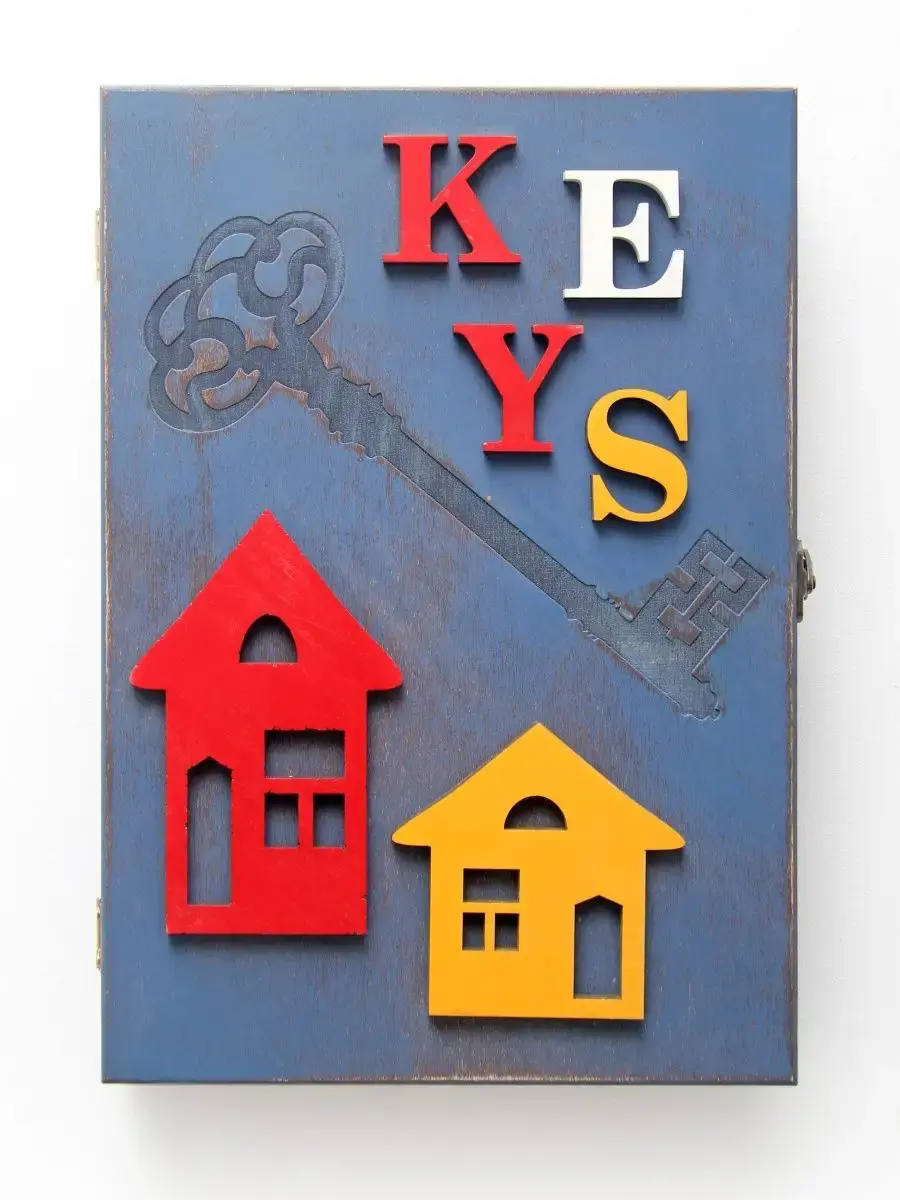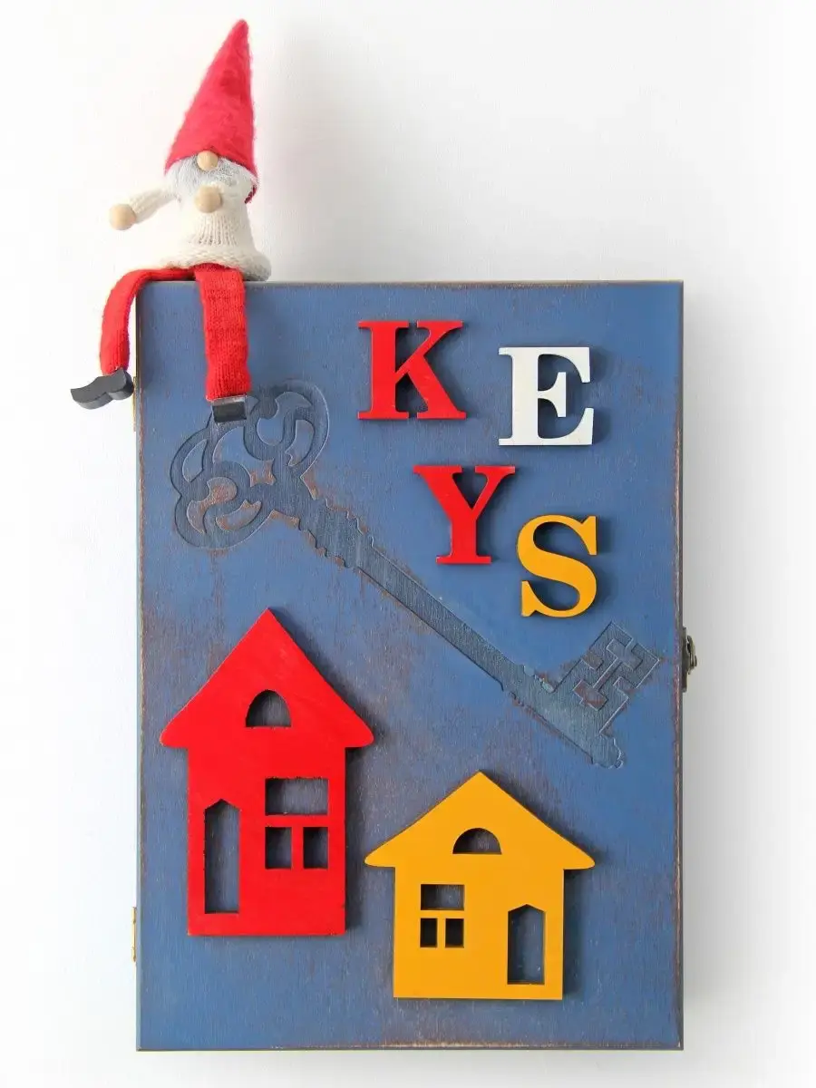 Ключница настенная, деревянная с объемными элементами. Ключница настенная закрытая - это не только незаменимый предмет интерьера,помогающий организовать порядок в прихожей, а так же декоративный элемент,подчеркивающий стиль и создающий уют в доме. Шкафчик с 9 крючками предполагает хранение ключей, украшений или мелких предметов. Размеры настенного ящика 34 х 24 см., глубина 7см. Ключница -короб покрыта акриловой эмалью на водной основе. В комплекте идут саморезы для крепления к стене. Яркая ключница станет прекрасным дополнением интерьера, будет приковывать к себе взгляды гостей.