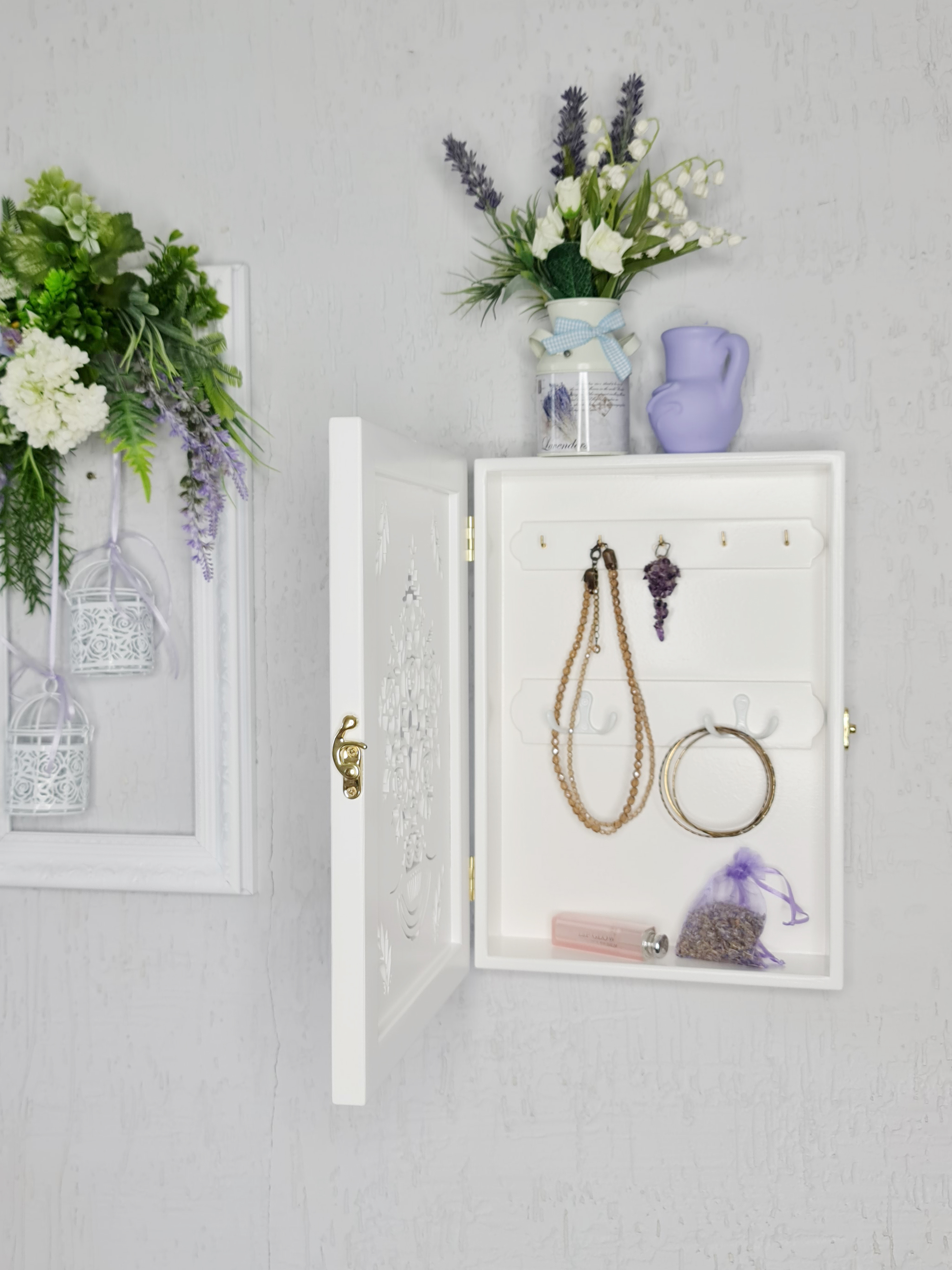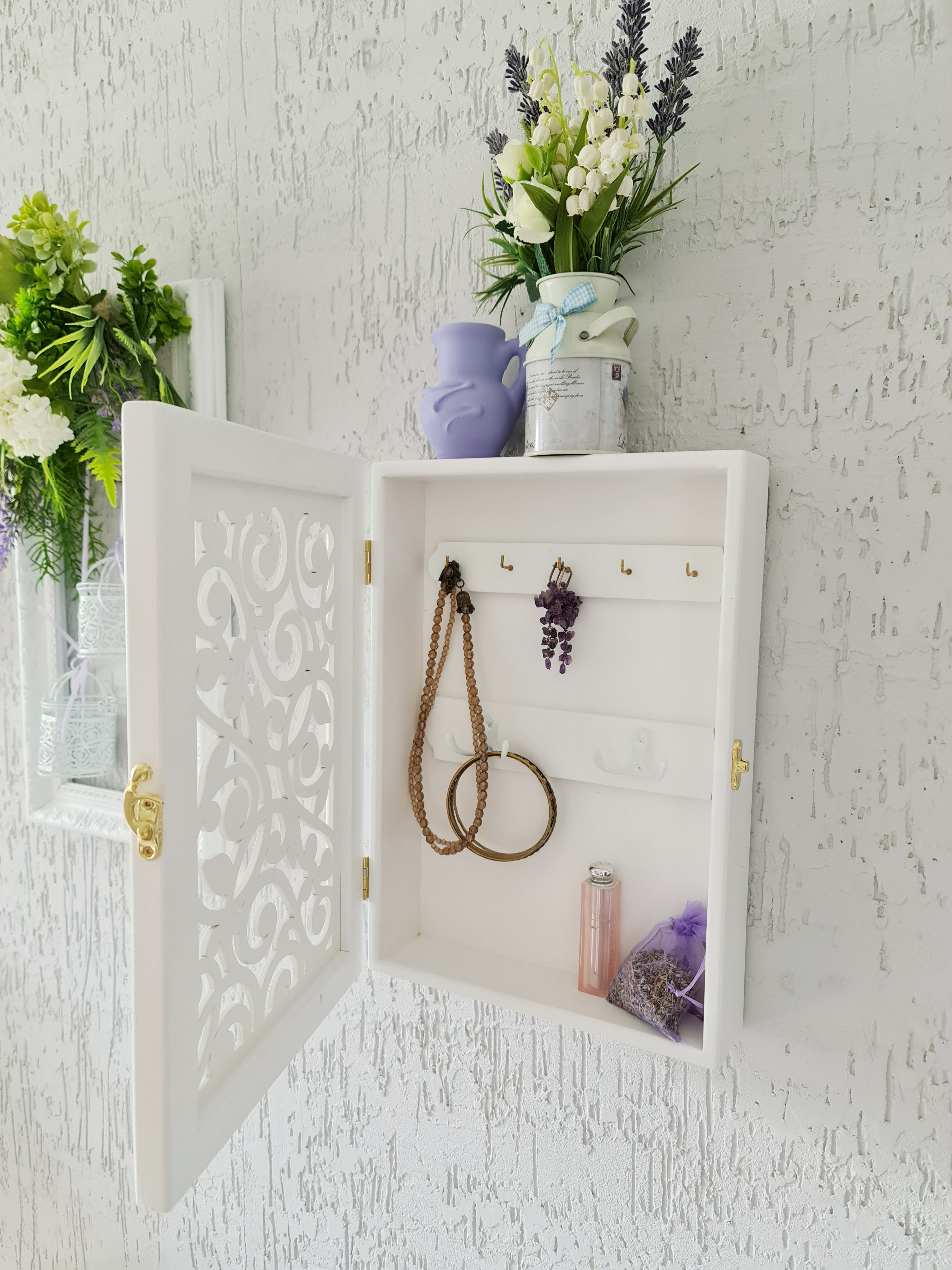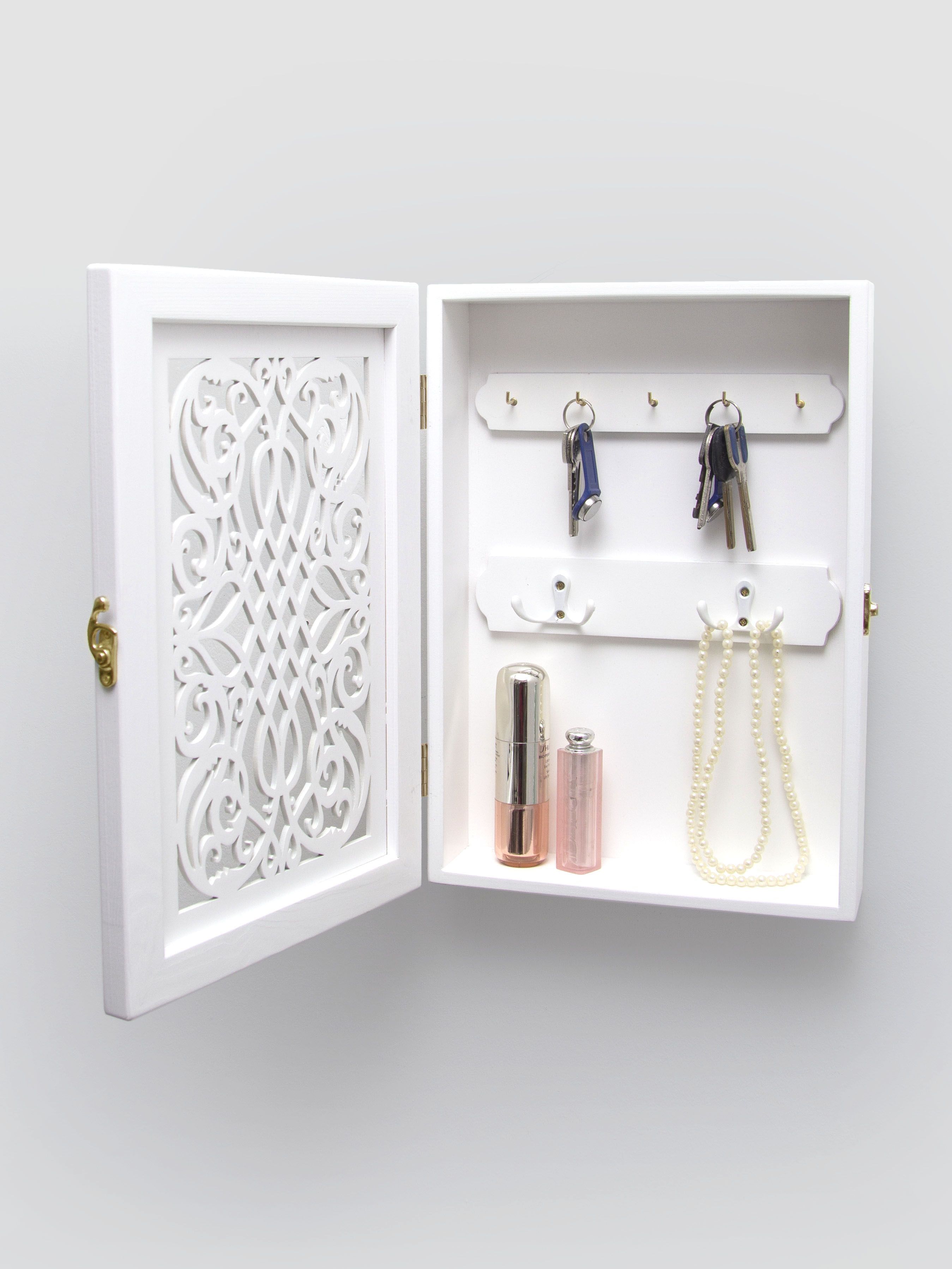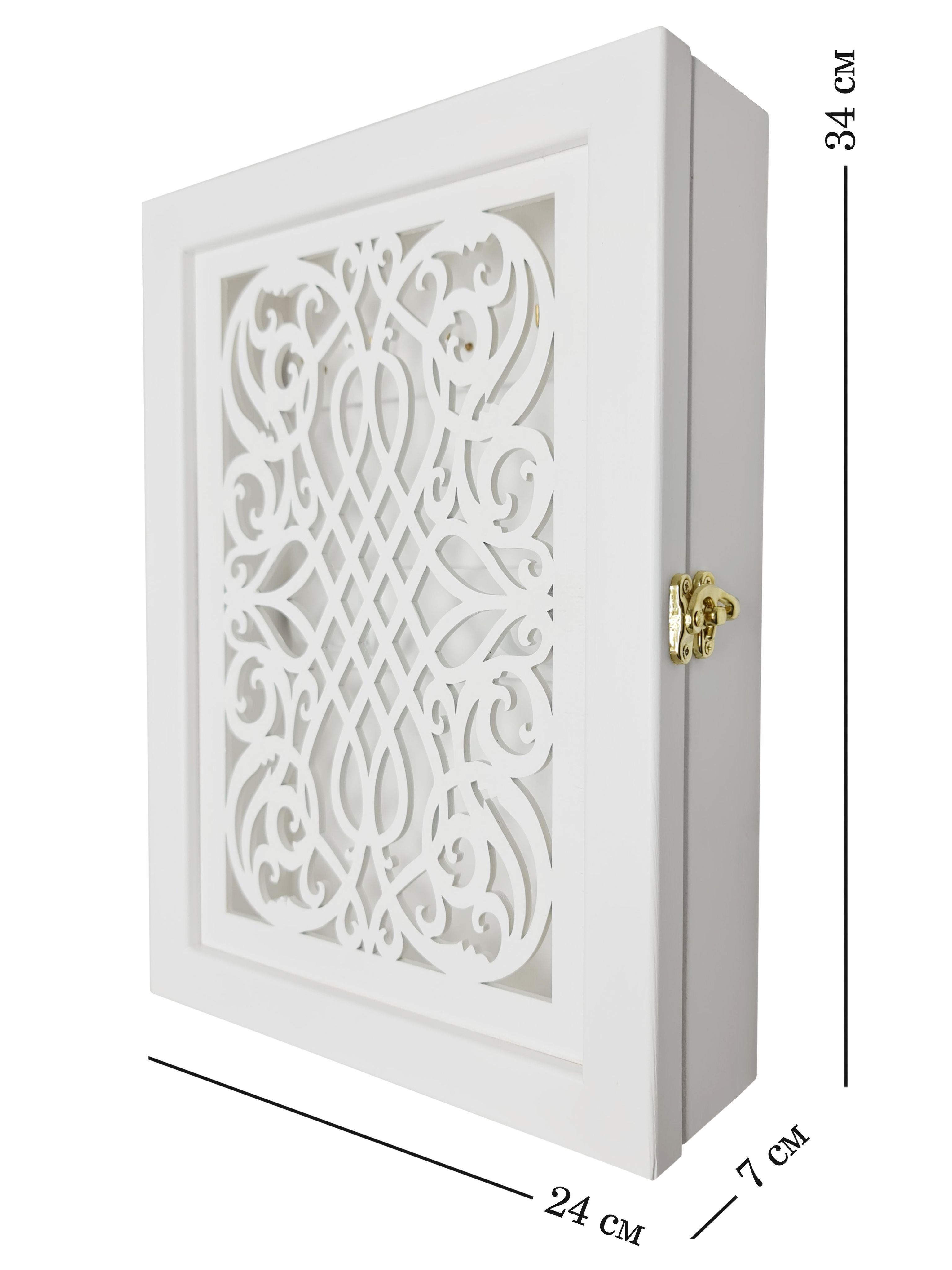 Идеальное решение для организации хранения и добавления декора в интерьер - настенная деревянная ключница с резной дверкой от бренда Elenadecor . Уникальный дизайн и функциональность этого органайзера позволят вам эстетично организовать хранение ключей и других мелочей. Красивая дверка с резным орнаментом станет украшением Вашего интерьера. Деревянные настенные ключницы с красивыми крючками обеспечат надежное и удобное хранение. Ключница имеет оптимальный, удобных размеров 34*24 см ,глубина 7см на 9 крючков. Приобретите этот настенный органайзер и добавьте яркие акценты в свой дом! Крепление для стены в комплекте. Настенная ключница ручной работы - прекрасный подарок на 8 марта, день рождение, новоселье, новый год или просто без повода.