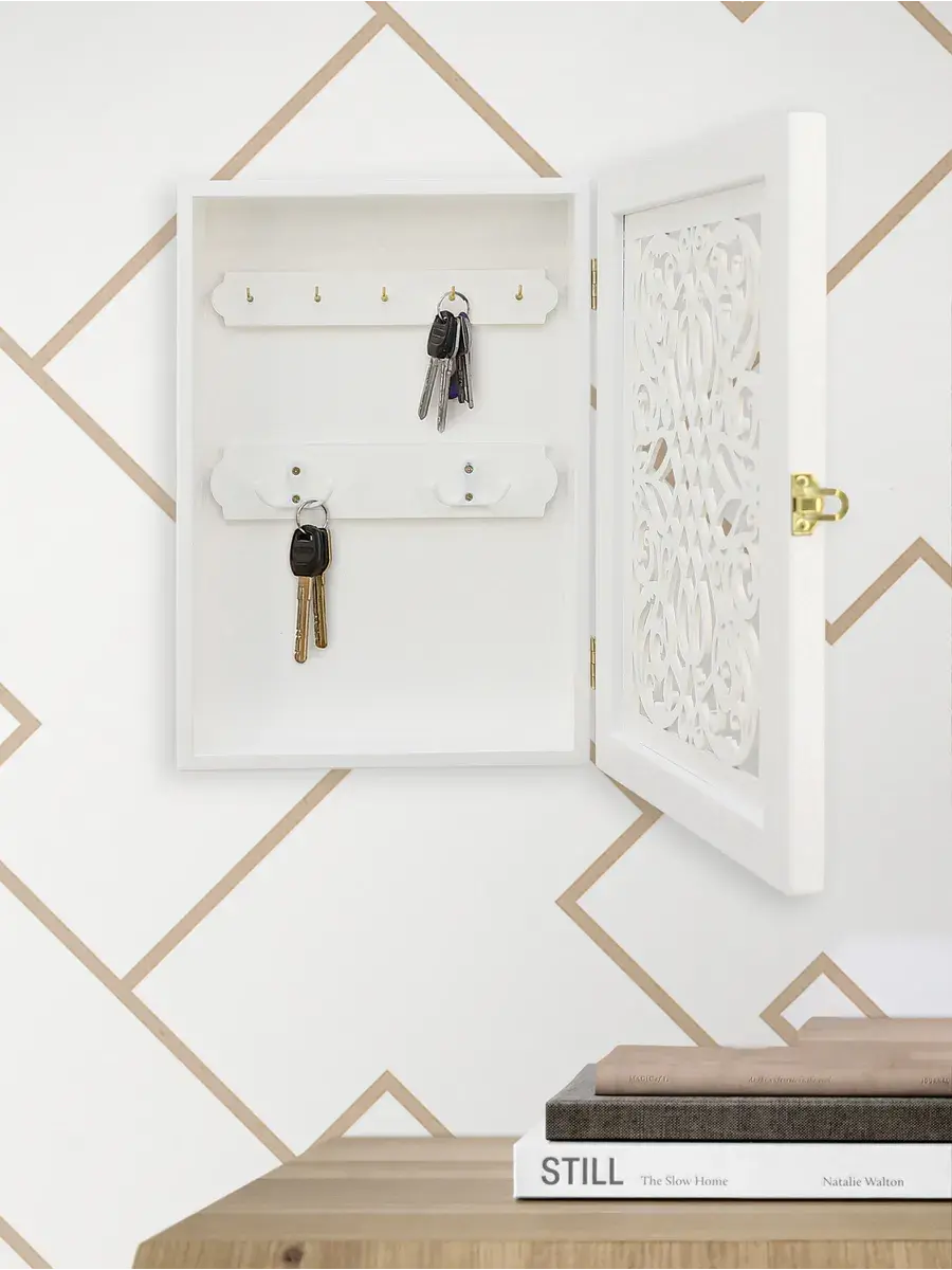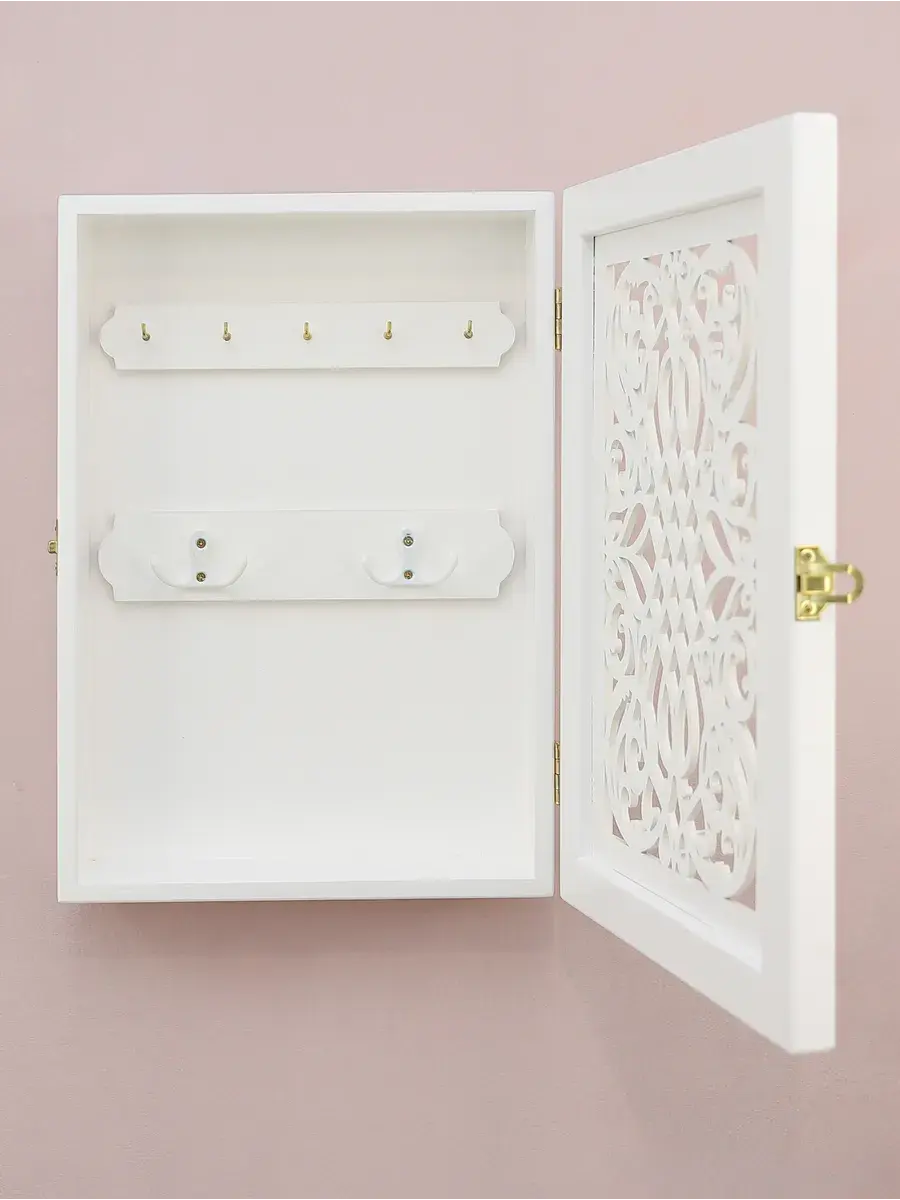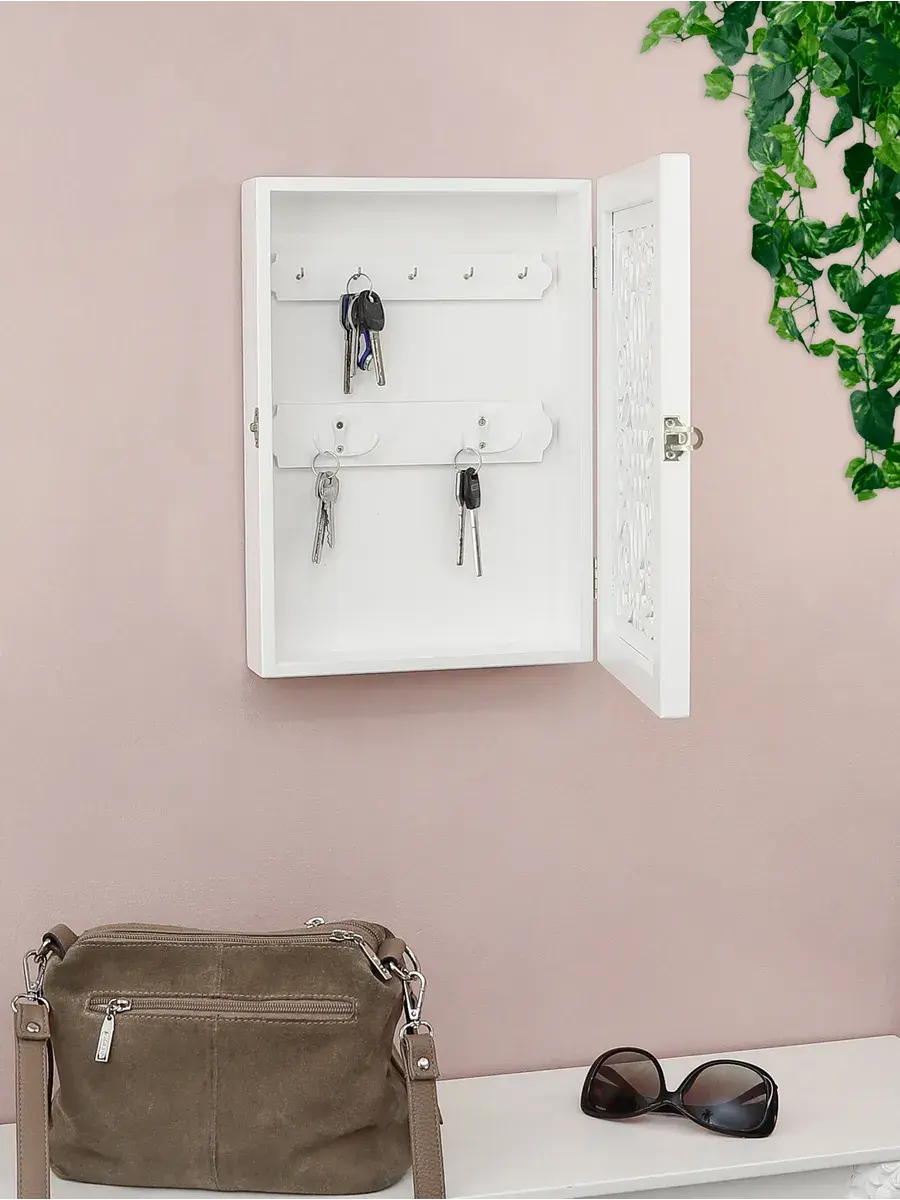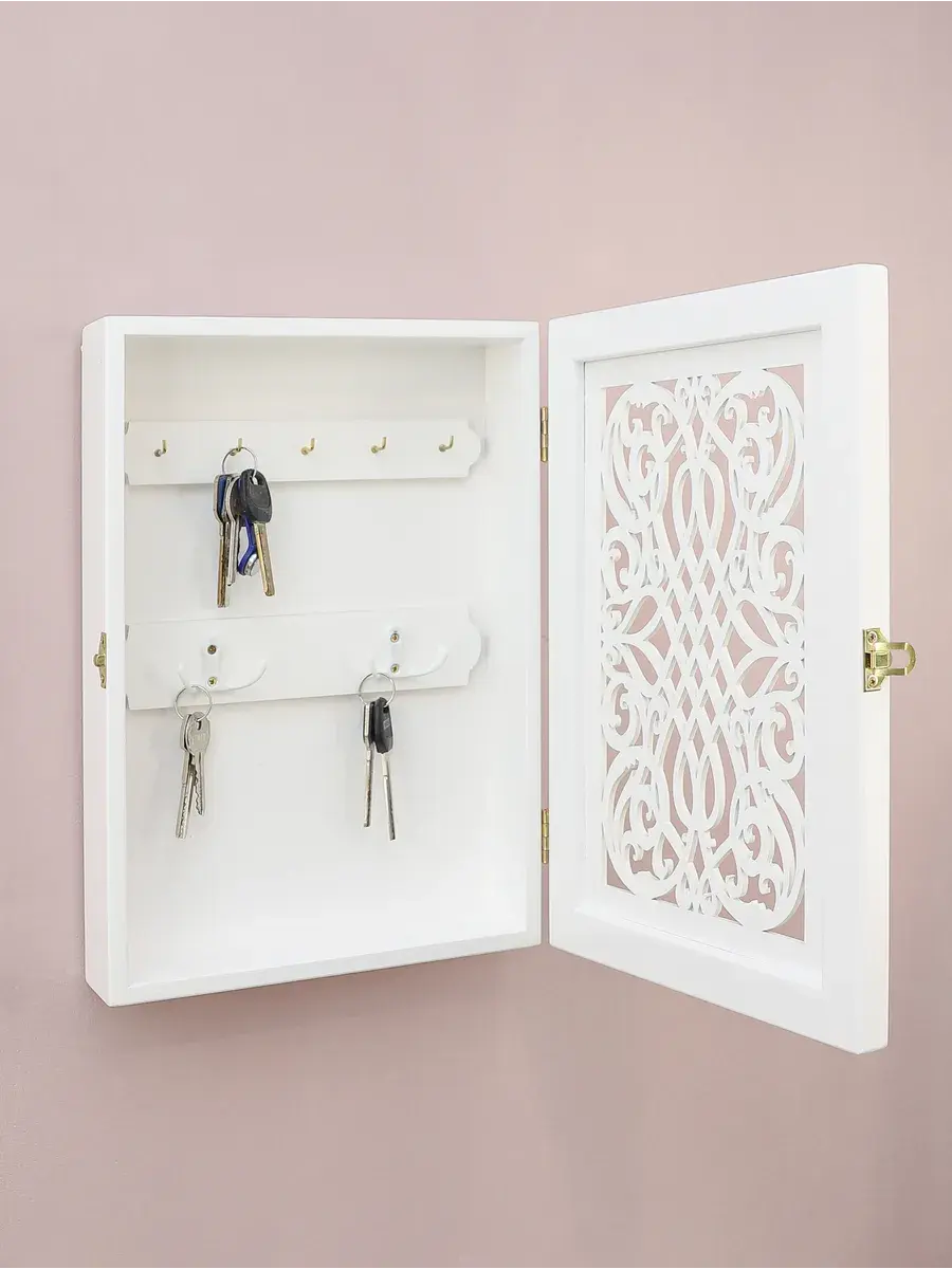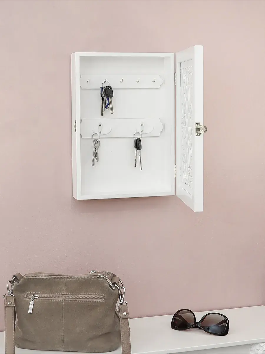 Эта настенная ключница из дерева станет не только функциональным элементом вашего интерьера, но и стильным украшением прихожей. Изготовленная в изысканном стиле Прованс, она привнесет в ваш дом атмосферу уюта и гармонии. Ключница настенная закрытая оснащена ажурной дверцей, которая не только защищает содержимое, но и служит декоративным акцентом. Внутри шкафа предусмотрено 9 крючков, что позволяет удобно организовать хранение ключей, украшений и других мелких вещей. Размеры ящика составляют 34 на 24 см, а глубина 7 см, что делает его компактным и вместительным одновременно. Ключница покрыта акриловой эмалью на водной основе, что обеспечивает долговечность и устойчивость к внешним воздействиям. В комплекте предусмотрены саморезы для надежного крепления к стене. Декоративная дверца обрамлена багетом из полиуретана, что придает изделию завершенный вид. Эта ключница станет отличным подарком для тех, кто ценит порядок и стиль в интерьере. Она идеально впишется в любую квартиру, добавив ей изысканности и функциональности. Превратите вашу прихожую в организованное и стильное пространство с помощью этой настенной ключницы. Ключница -короб покрыта акриловой эмалью на водной основе. В комплекте идут саморезы для крепления к стене.