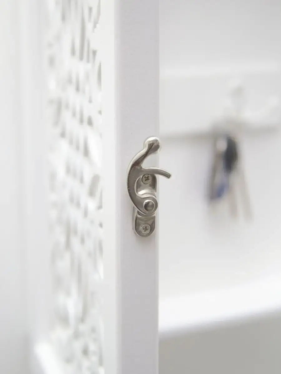 Эта настенная ключница из дерева станет не только функциональным элементом вашего интерьера, но и стильным украшением прихожей. Изготовленная в изысканном стиле Прованс, она привнесет в ваш дом атмосферу уюта и гармонии. Ключница настенная закрытая оснащена ажурной дверцей, которая не только защищает содержимое, но и служит декоративным акцентом. Внутри шкафа предусмотрено 9 крючков, что позволяет удобно организовать хранение ключей, украшений и других мелких вещей. Размеры ящика составляют 34 на 24 см, а глубина 7 см, что делает его компактным и вместительным одновременно. Ключница покрыта акриловой эмалью на водной основе, что обеспечивает долговечность и устойчивость к внешним воздействиям. В комплекте предусмотрены саморезы для надежного крепления к стене. Декоративная дверца обрамлена багетом из полиуретана, что придает изделию завершенный вид. Эта ключница станет отличным подарком для тех, кто ценит порядок и стиль в интерьере. Она идеально впишется в любую квартиру, добавив ей изысканности и функциональности. Превратите вашу прихожую в организованное и стильное пространство с помощью этой настенной ключницы. Ключница -короб покрыта акриловой эмалью на водной основе. В комплекте идут саморезы для крепления к стене.