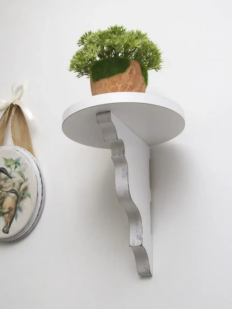 Вам знакома эта ситуация - купили небольшой цветочный горшок, фото-рамку, картинку, а поставить некуда. Или в прихожей скопилось много мелочей, ключей и т.д., которым нужно отдельное место. У нас есть готовое, продуманное для этой ситуации решение! Уникальный кронштейн - полка в стиле прованс в уникальном эксклюзивном дизайне ручной работы. Полка изготавливается из МДФ 16 мм, окрашивается акриловой эмалью и состаривается вручную. Краска абсолютно экологична, безопасна и не имеет запаха. Полочка поставляется в собранном виде, а подробная инструкция в фото в карточке товара поможет легко установить ее на стену. В комплекте 2 полочки, что позволяет создать композицию, разместив полки по обеим сторонам зеркала, картины, окна. Этот кронштейн-полку мы создали специально для Вас!