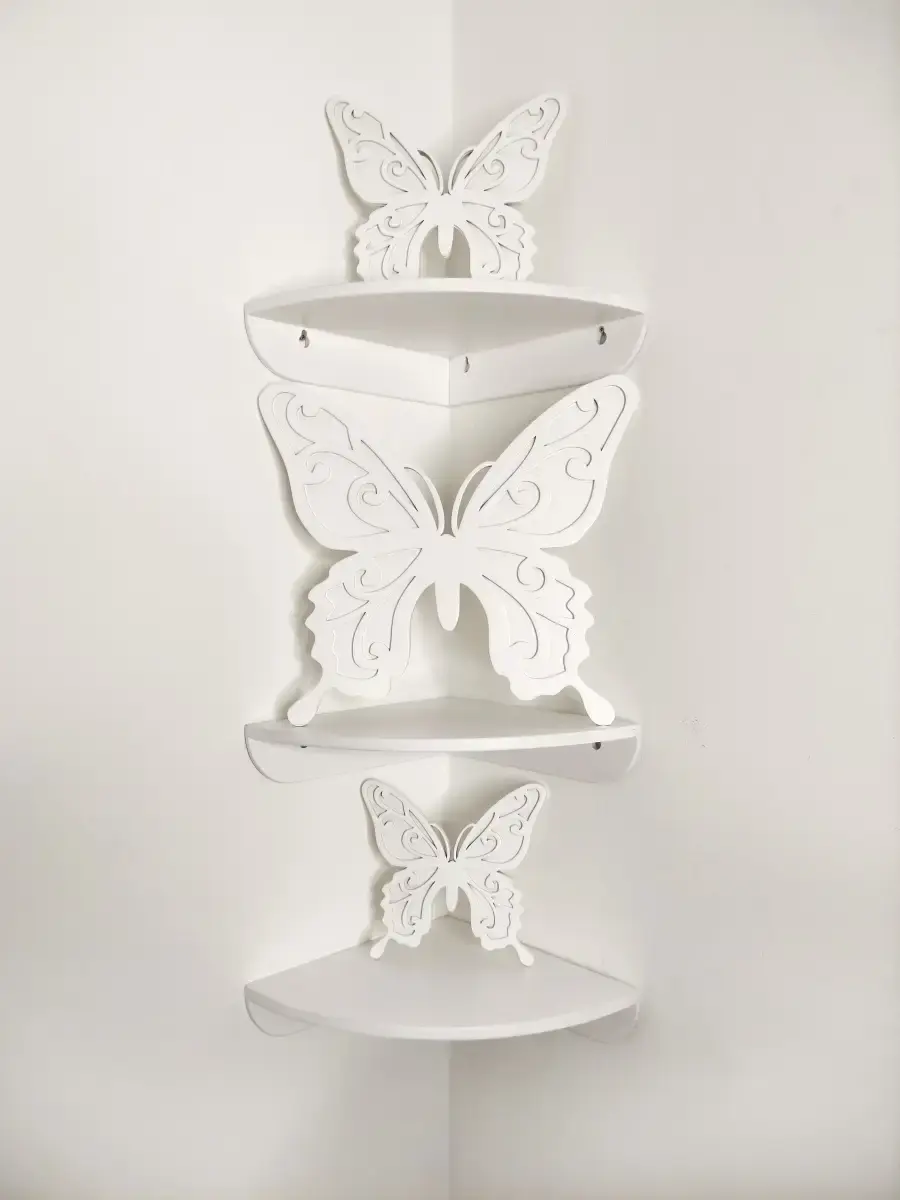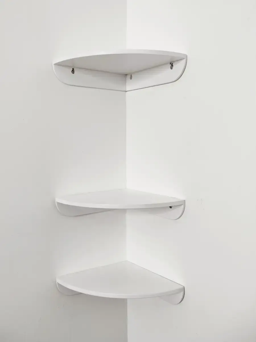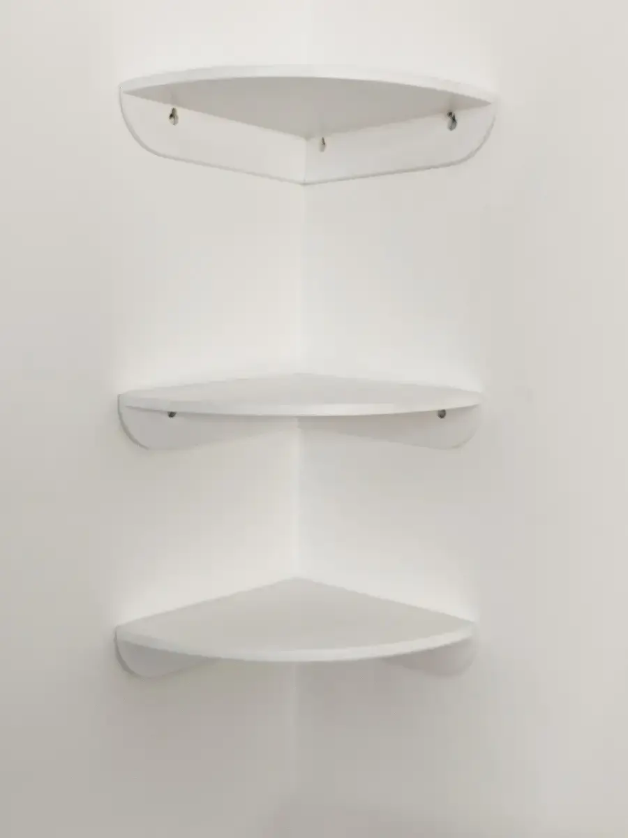 Комплект из 2х деревянных угловых полок. Полки настенные, крепятся к стене на 3 шурупа. Разместить можно на любом расстоянии друг от друга. Полки покрыты акриловой эмалью без запаха. Размер полок 25х25 см. Крепление для стены в комплекте.