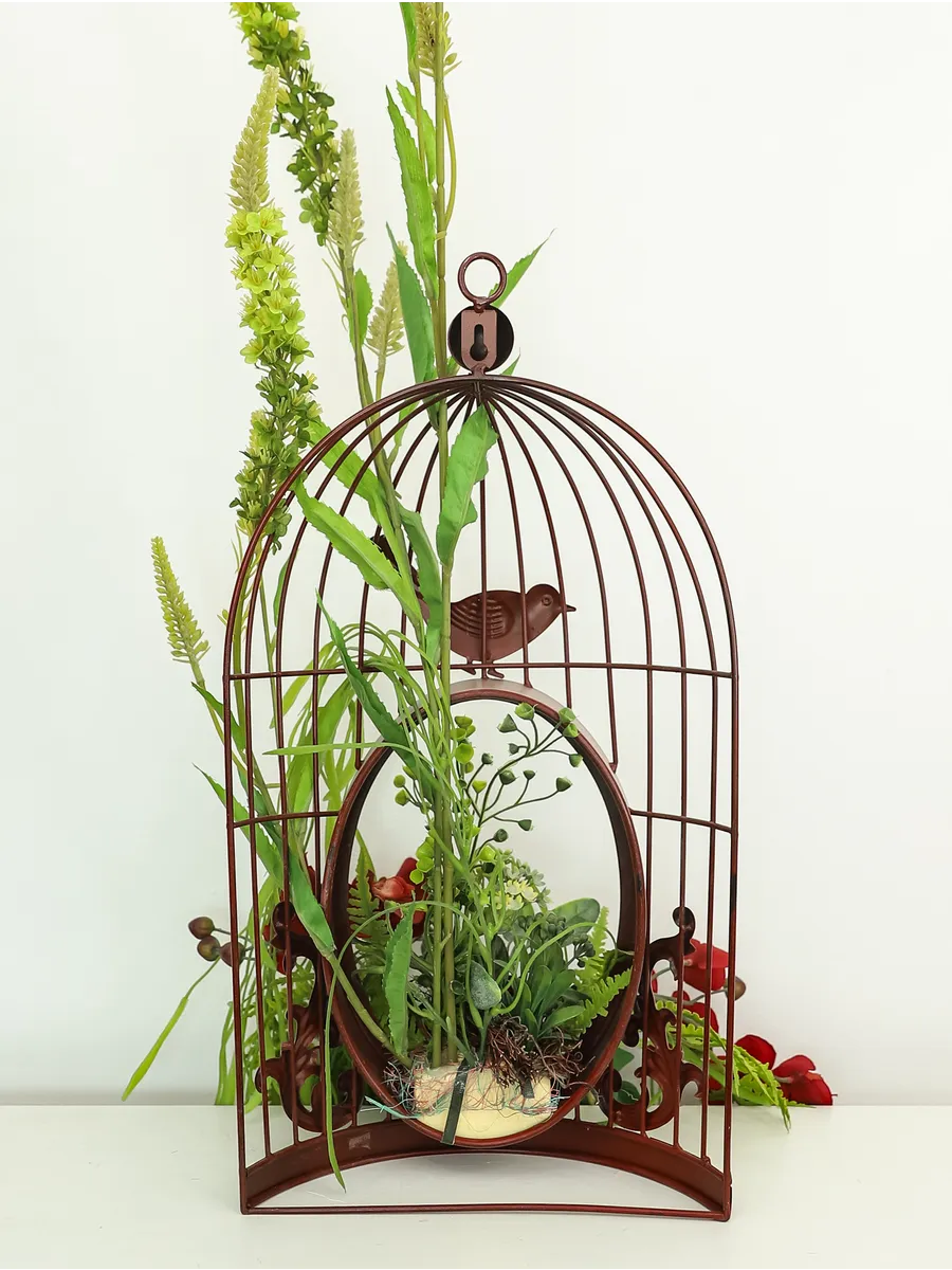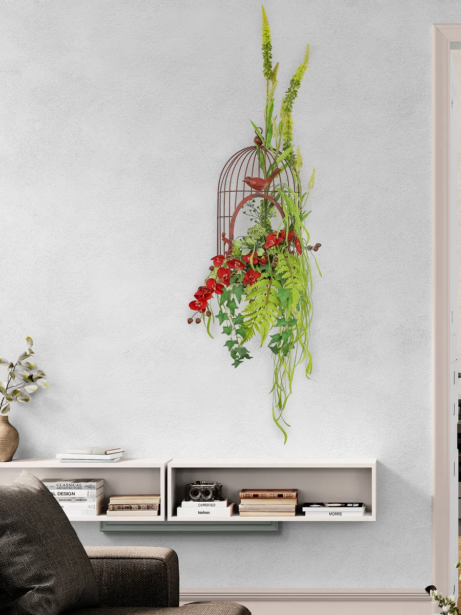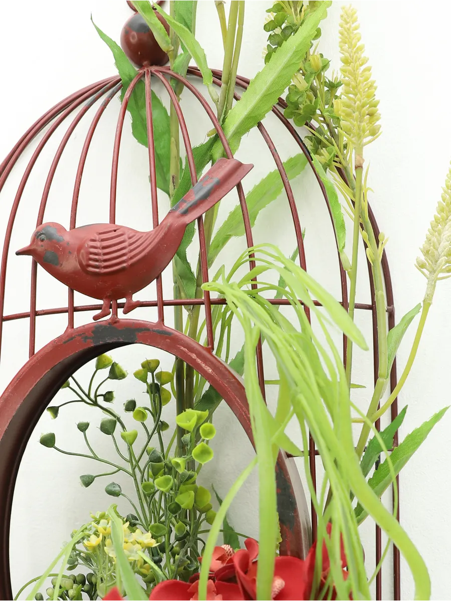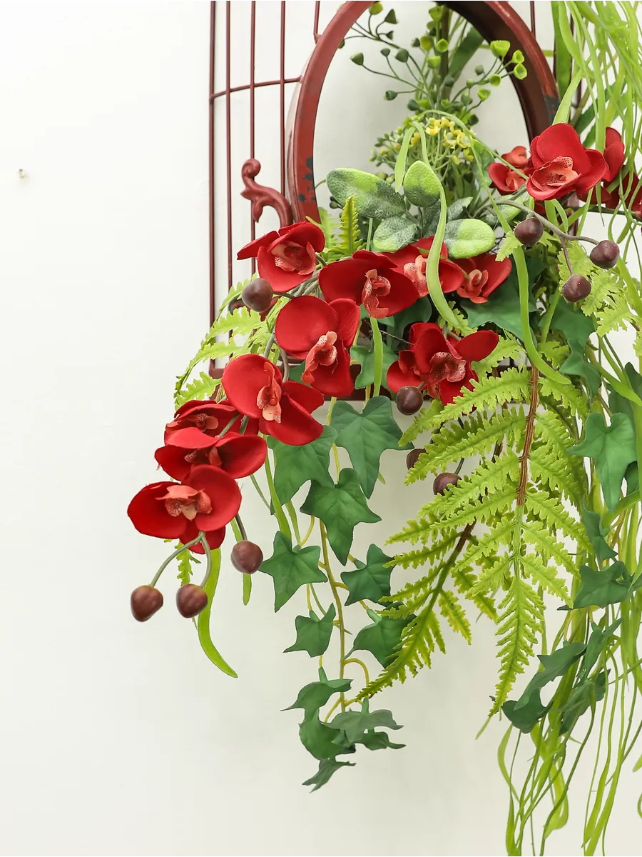 Авторская композиция из интерьерных цветов в металлической клетке. Настенная цветочная композиция с искусственными интерьерными цветами. Выполнена из высококачественных искусственных цветов и растений: папоротник, орхидея, хмель. В комплекте шуруп с дюбелем, а на клетке есть колечко для подвешивания. Отличное украшение к зеркалу или коллекции картин с цветами, в прихожей или там, где живым цветам недостаточно света. Панно долго будет радовать и добавлять уюта в дом.