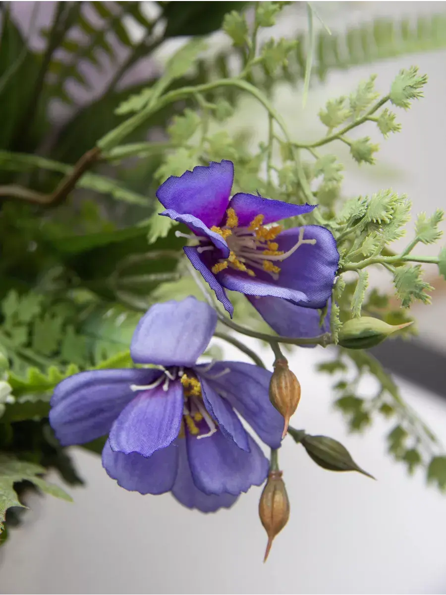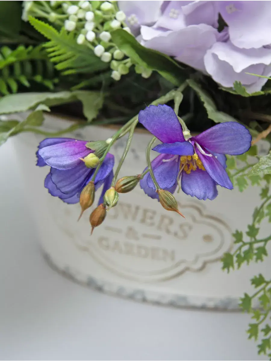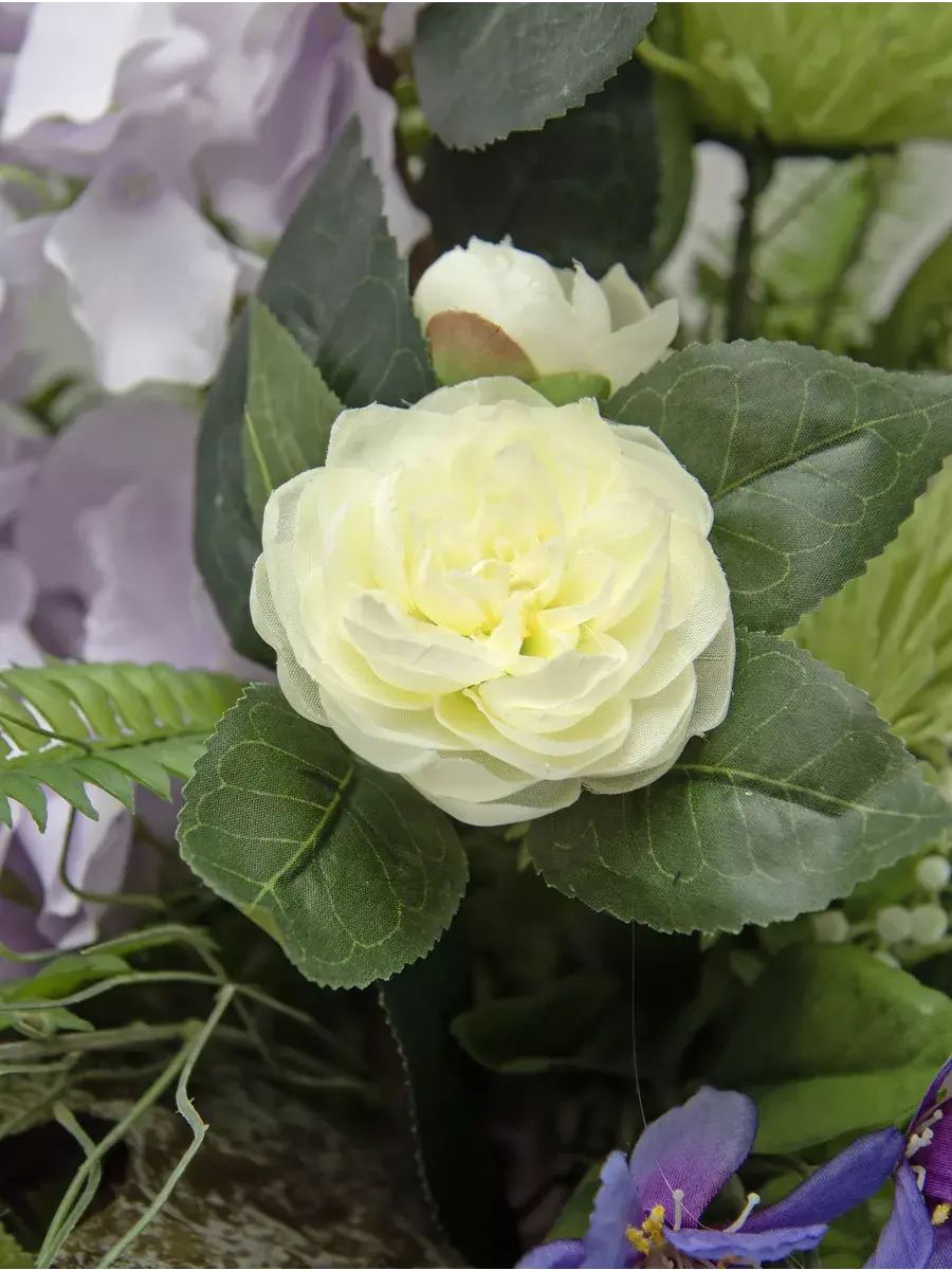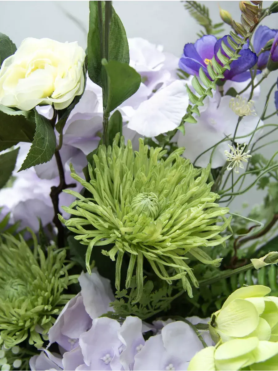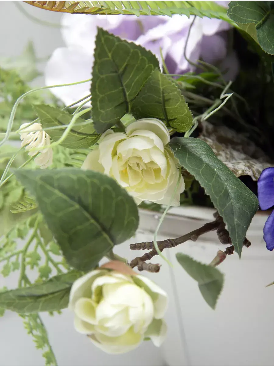 Цветочная композиция "Весенний сад" в металлическом кашпо. Искусственные растения надежно закреплены в кашпо. Большая интерьерная композиция для украшения полок, консолей, зимнего сада. Декор прекрасно дополнит декоративное окно или зеркало. Может устанавливаться на стол. Размер композиции целиком 57*60*54 см.