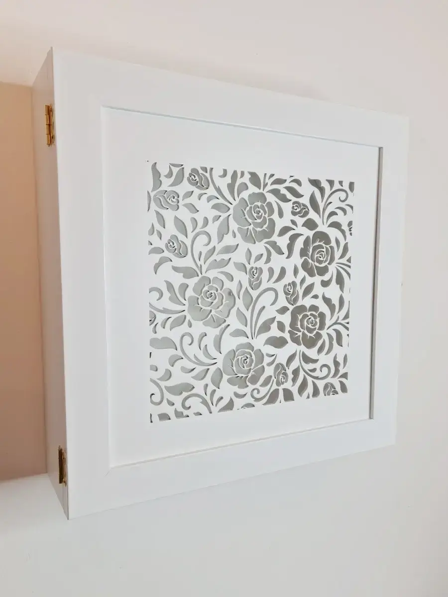 Декоративная полка в багетной раме с дверкой. Идеально подойдет для того, чтобы закрыть электрический щиток или какие-либо изъяны на стене. Может служить ключницей или просто украшать ваш дом. Дверца закрывается на замочек. Размер полки по внешнему краю 36х36см размер внутреннего пространвства 34,5х34,5*9 см. Максимальный размер щитка для размещения внутри полки 34,5*28,5*8,5 см.
