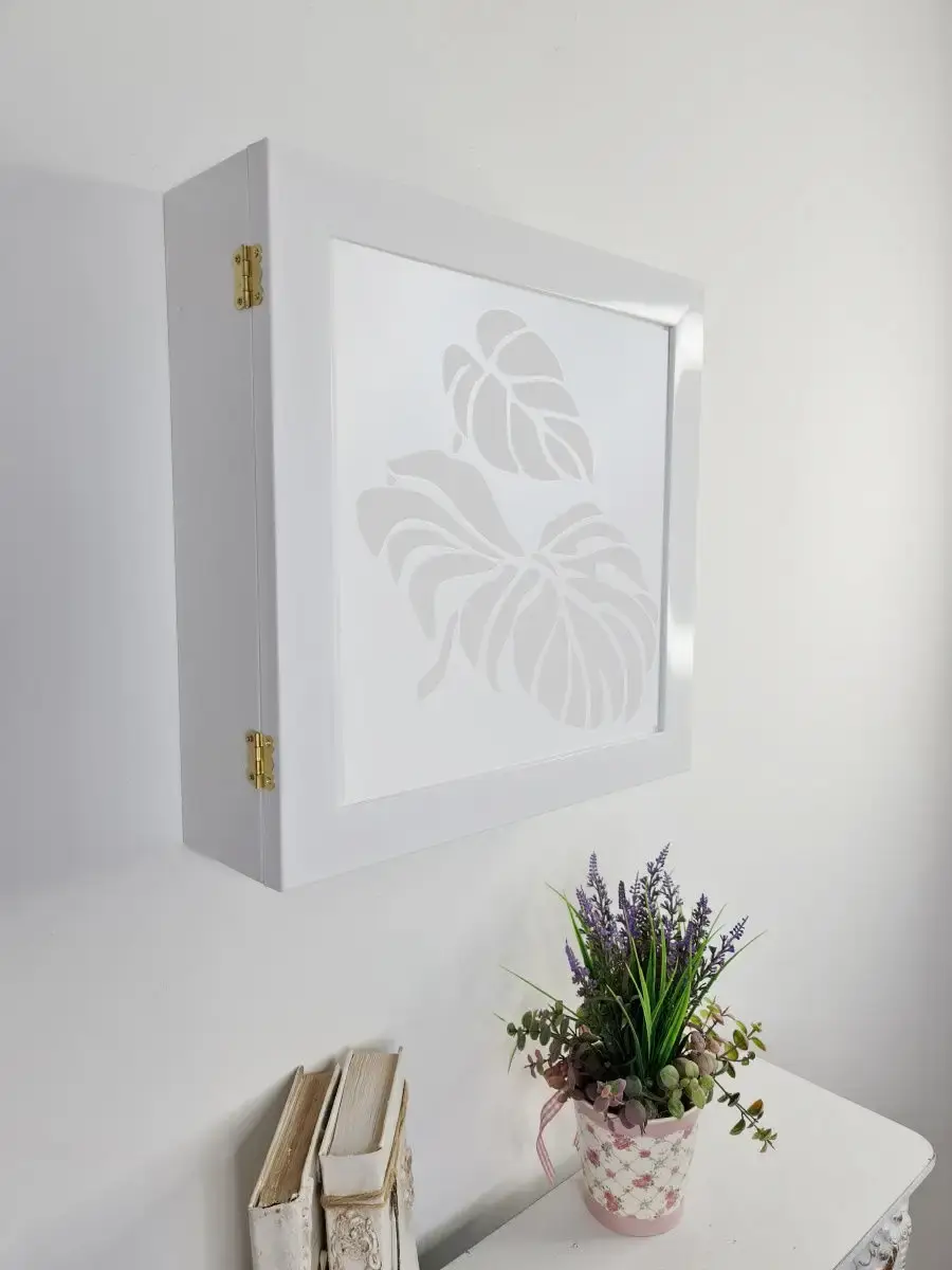 Декоративная полка в багетной раме с дверкой. Идеально подойдет для того, чтобы закрыть электрический щиток или какие-либо изъяны на стене. Может служить ключницей или просто украшать ваш дом. Дверца закрывается на замочек. Размер полки по внешнему краю 36х36см размер внутреннего пространвства 34,5х34,5*9 см. Максимальный размер щитка для размещения внутри полки 34,5*28,5*8,5 см.