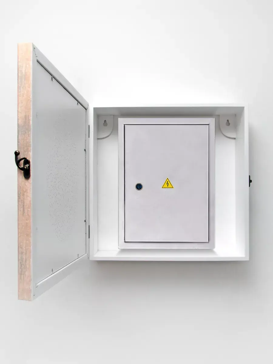 Декоративная полка в багетной раме с дверкой. Идеально подойдет для того, чтобы закрыть электрический щиток или какие-либо изъяны на стене. Может служить ключницей или просто украшать ваш дом. Дверца закрывается на замочек. Размер полки по внешнему краю 36х36см размер внутреннего пространвства 34,5х34,5*9 см. Максимальный размер щитка для размещения внутри полки 34,5*28,5*8,5 см.