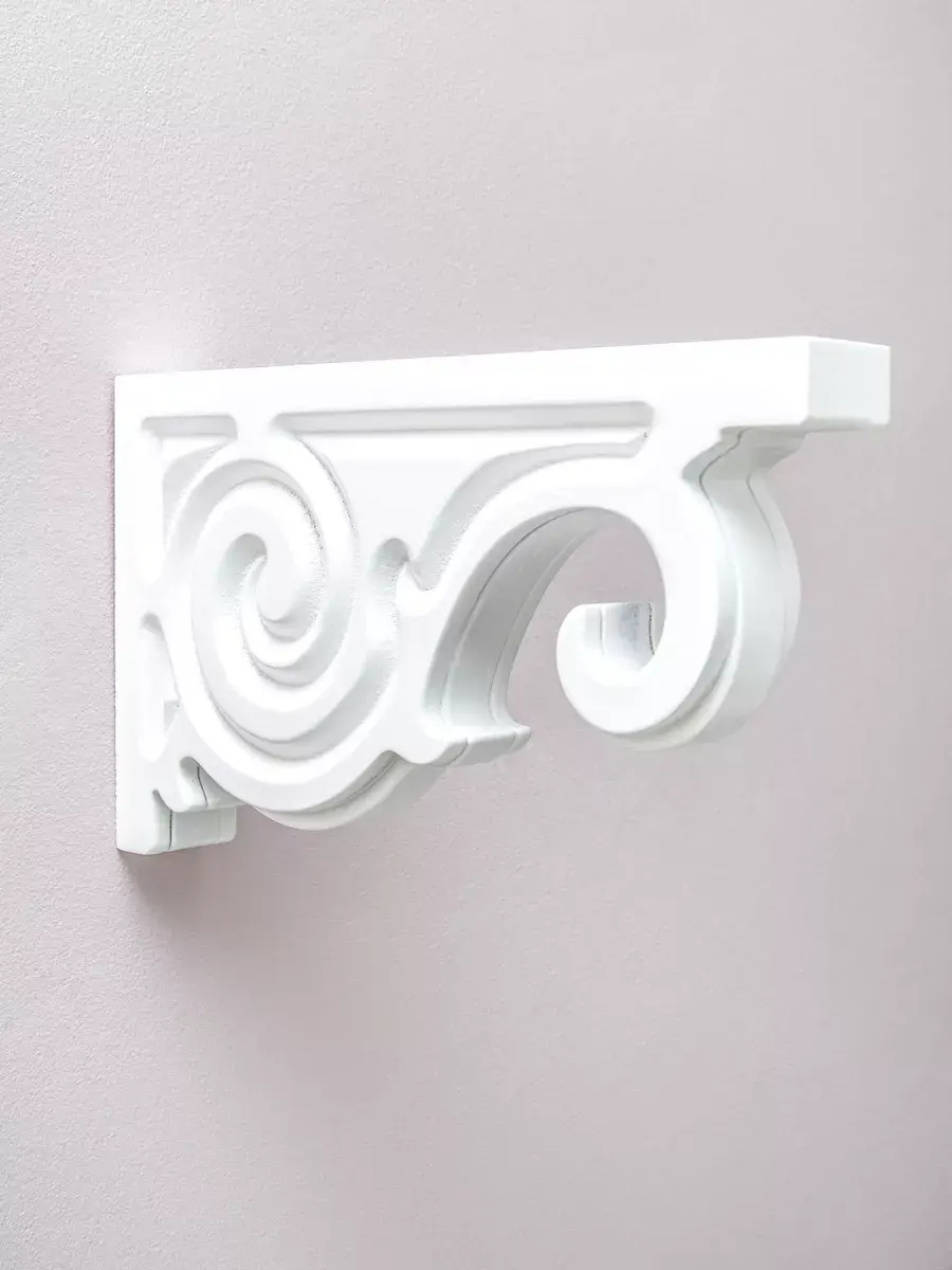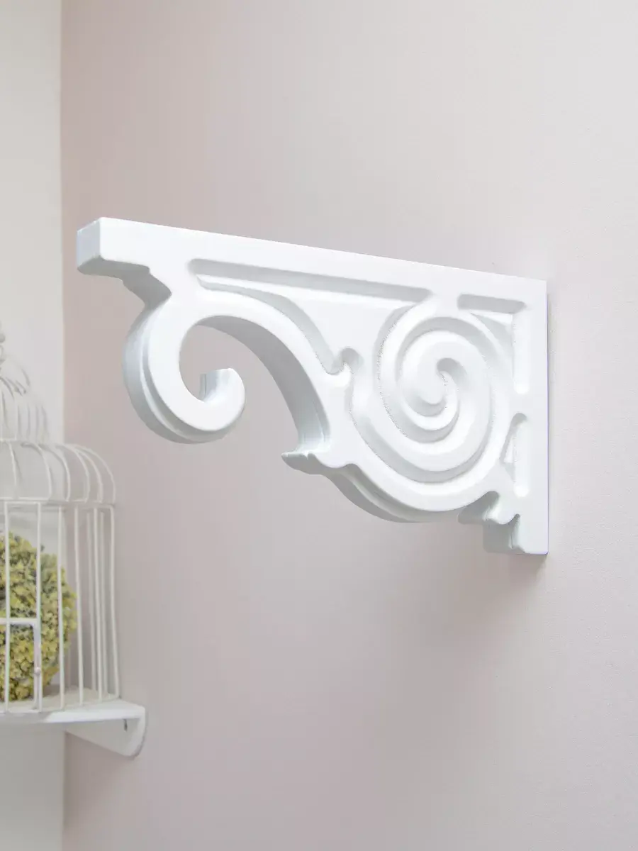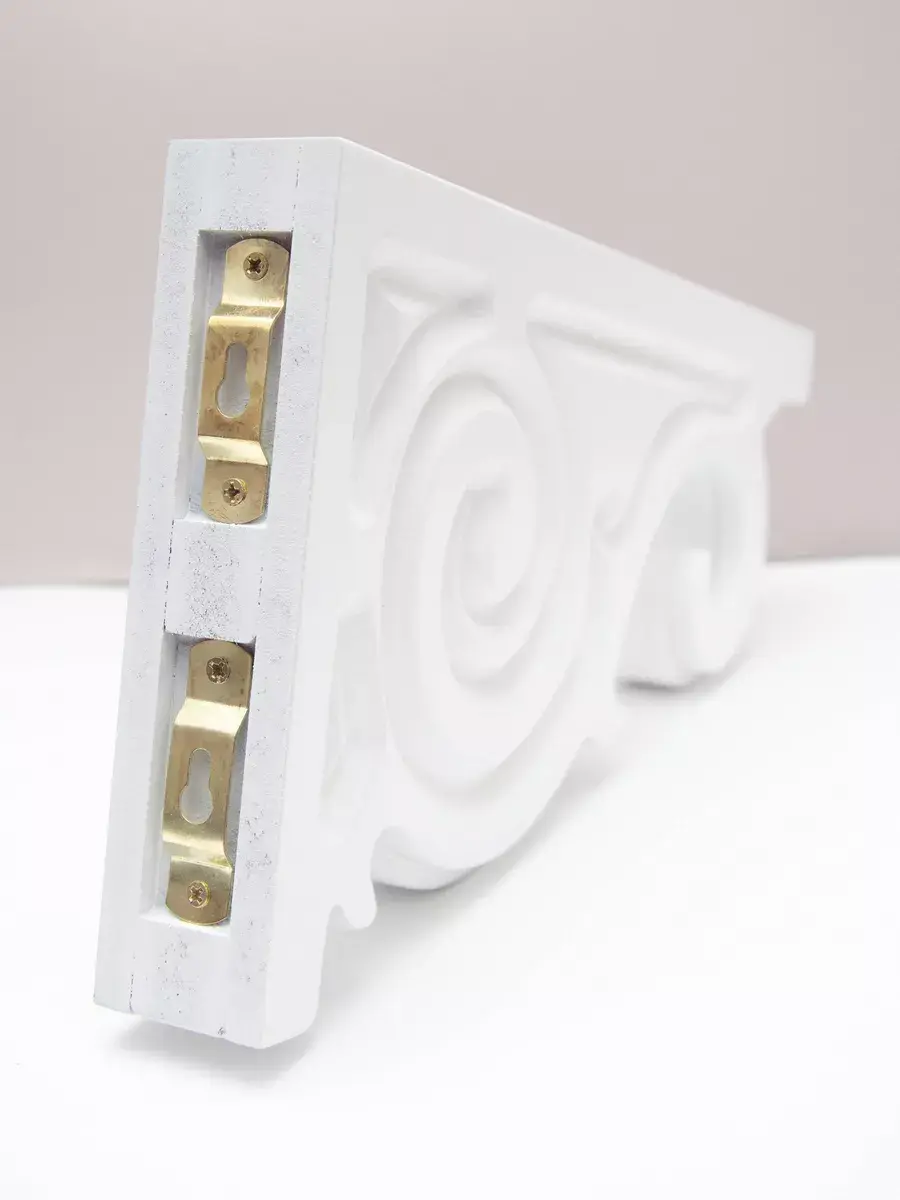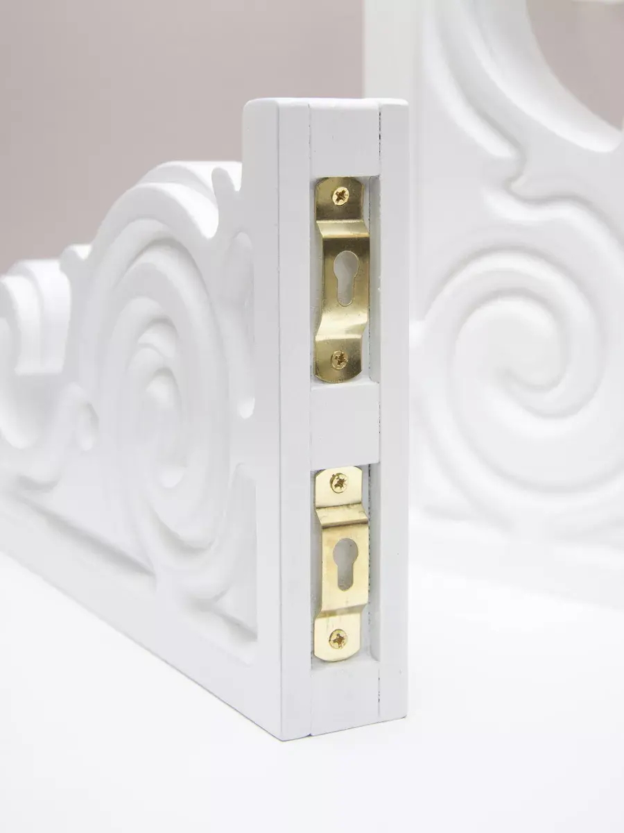Комплект из 2х кронштейнов для полки. Держатели для настенных полок массивные, тяжелые, крепкие. Кронштейн изготовлен из МДФ 36 мм с помощью фрезеровки. Покраска акриловыми эмалями, ручная шлифовка. Кронштейны можно использовать с различными полками из нашего ассортимента (арт. 83980580, 83981316, 83981695) или добавить как декор к Вашим полкам, можно комбинировать со стеклянными полками. Держатели возможно размещать на различном расстоянии друг от друга, что дает Вам максимум вариантов использования. Прекрасное дополнение к интерьеру в стиле Прованс. Размер кронштейна: в26,2 х г15,2 х ш3,6 см.