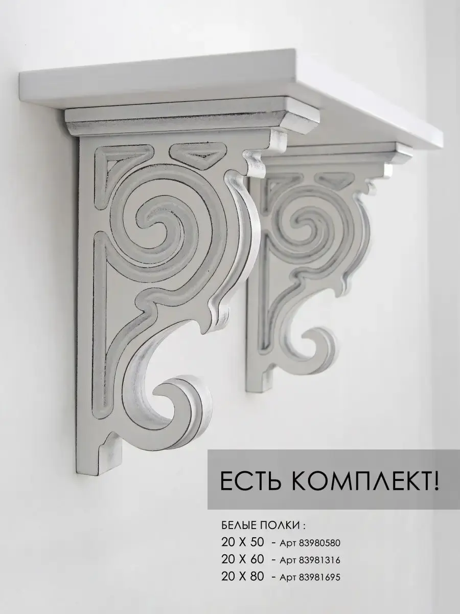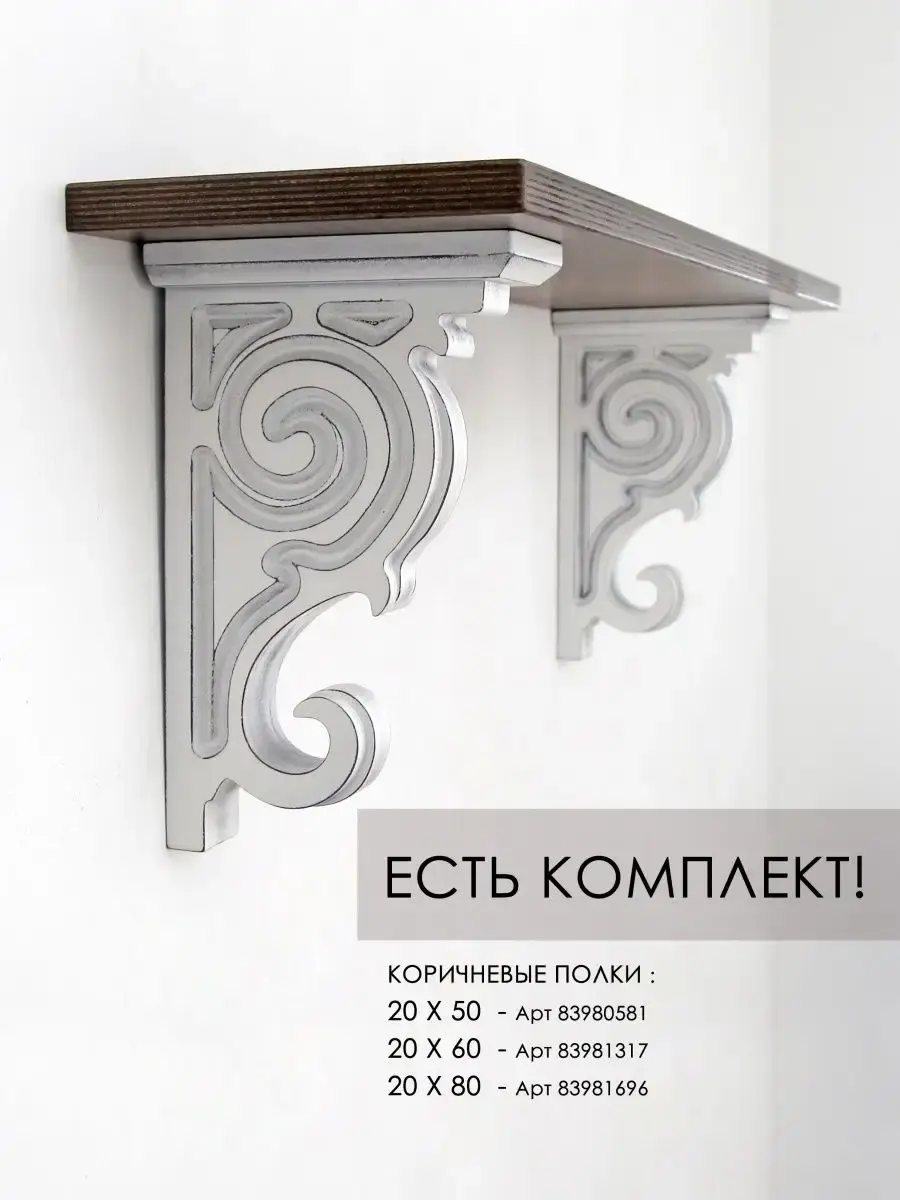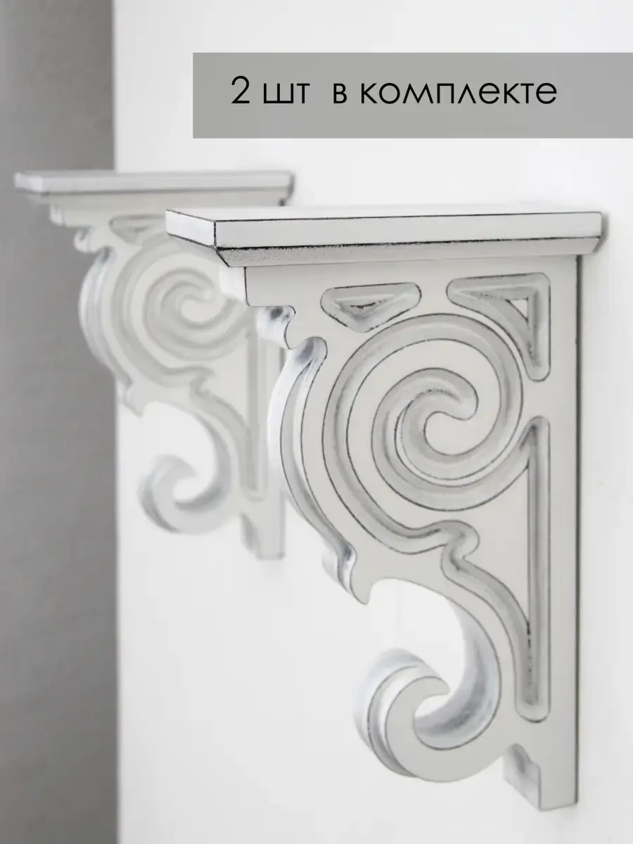 Внимание! Кронштейны переехали вот сюда - 251234105. Комплект из 2х кронштейнов для полки. Держатели для настенных полок массивные, тяжелые, крепкие. Кронштейн изготовлен из МДФ 36 мм с помощью фрезеровки. Покраска акриловыми эмалями, ручная шлифовка. Кронштейны можно использовать с различными полками из нашего ассортимента (арт. 83980580, 83981316, 83981695) или добавить как декор к Вашим полкам, можно комбинировать со стеклянными полками. Держатели возможно размещать на различном расстоянии друг от друга, что дает Вам максимум вариантов использования. Прекрасное дополнение к интерьеру в стиле Прованс. Размер кронштейна: в26,2 х г15,2 х ш3,6 см.