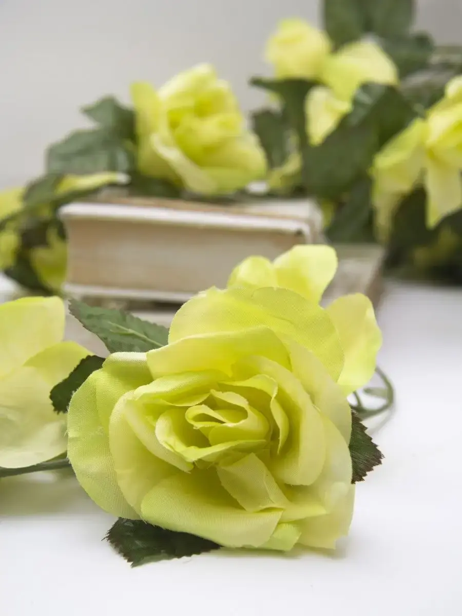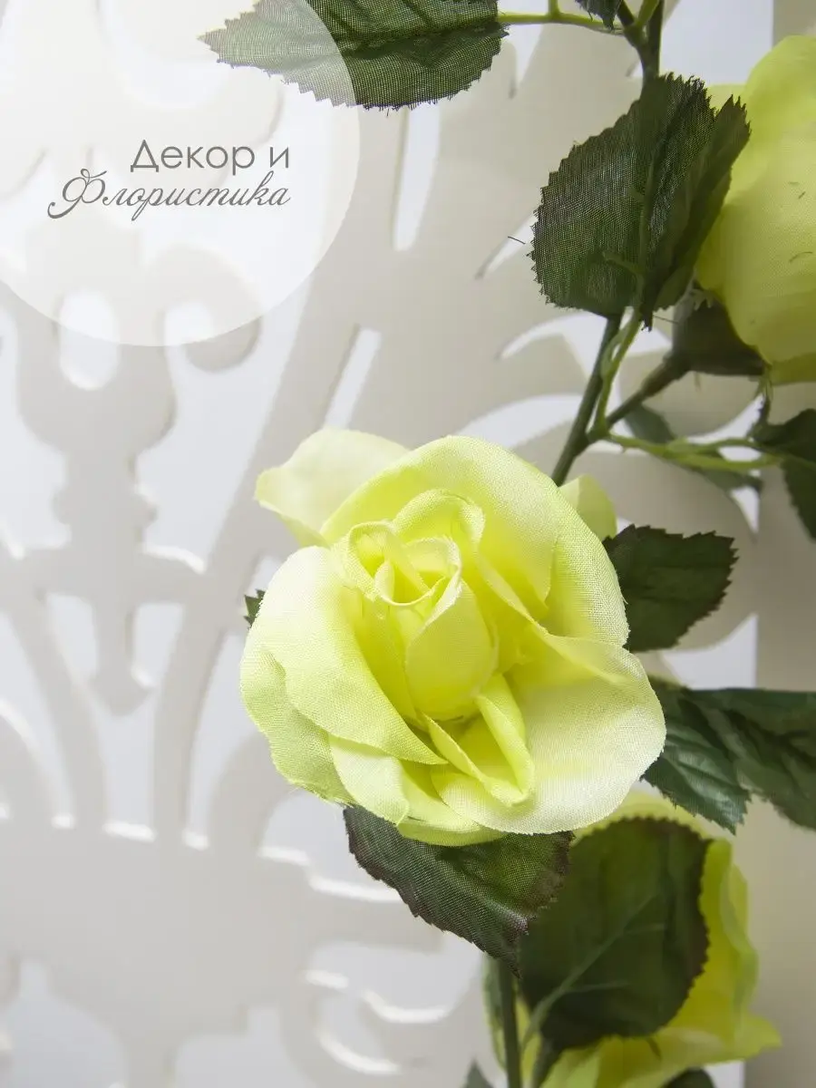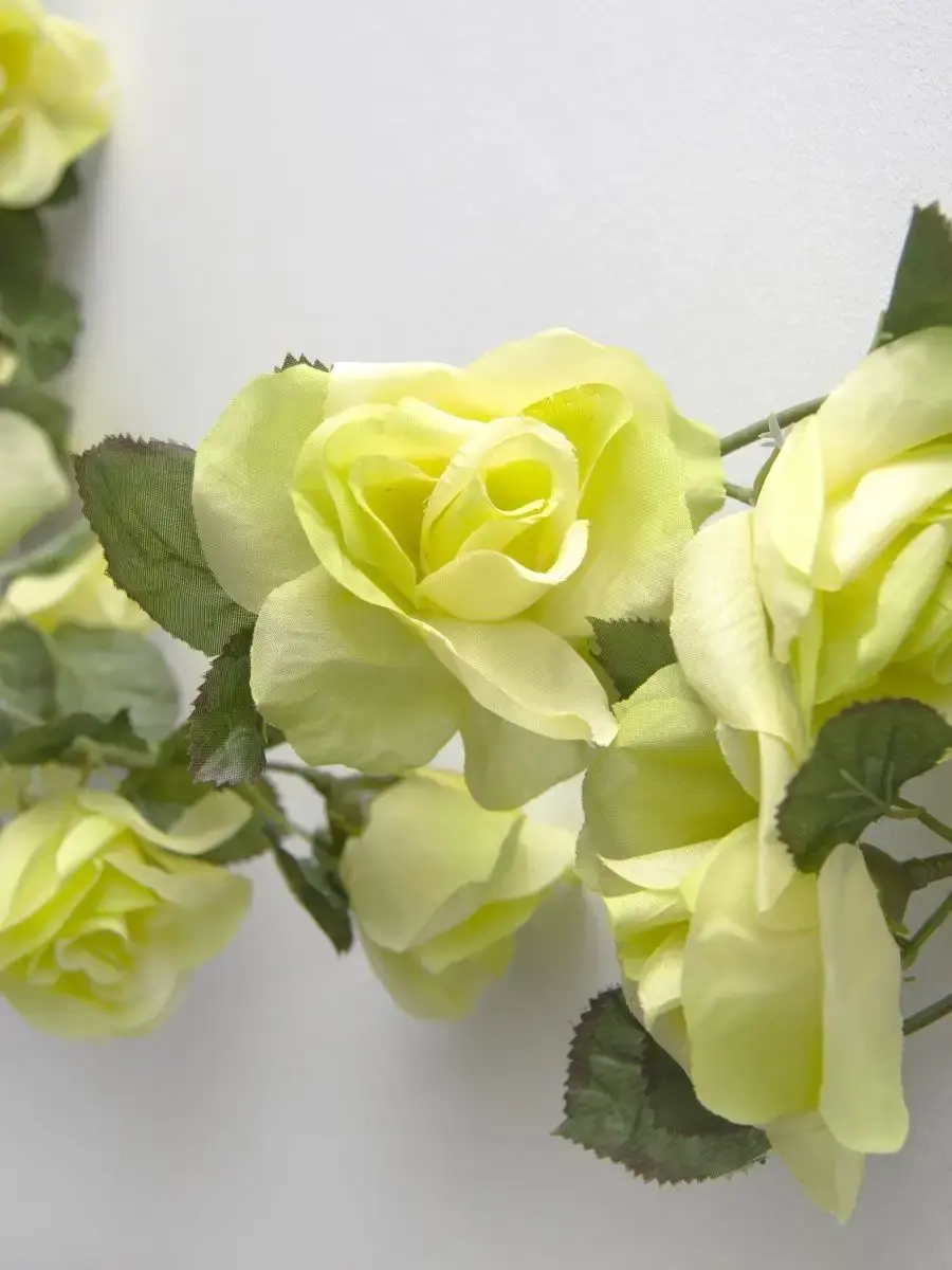 Лиана изготовлена из высококачественных искусственных роз, просто в уходе (протирать влажной тканью, обдуть феном).